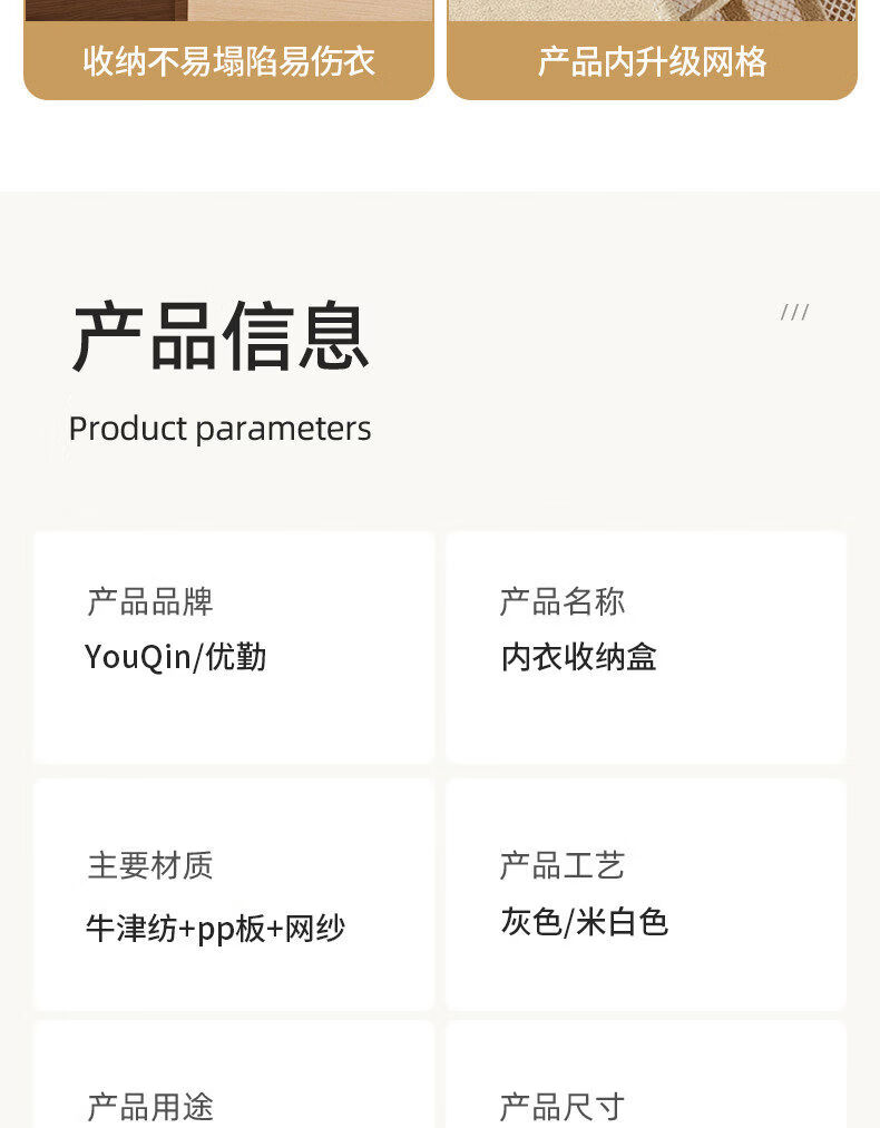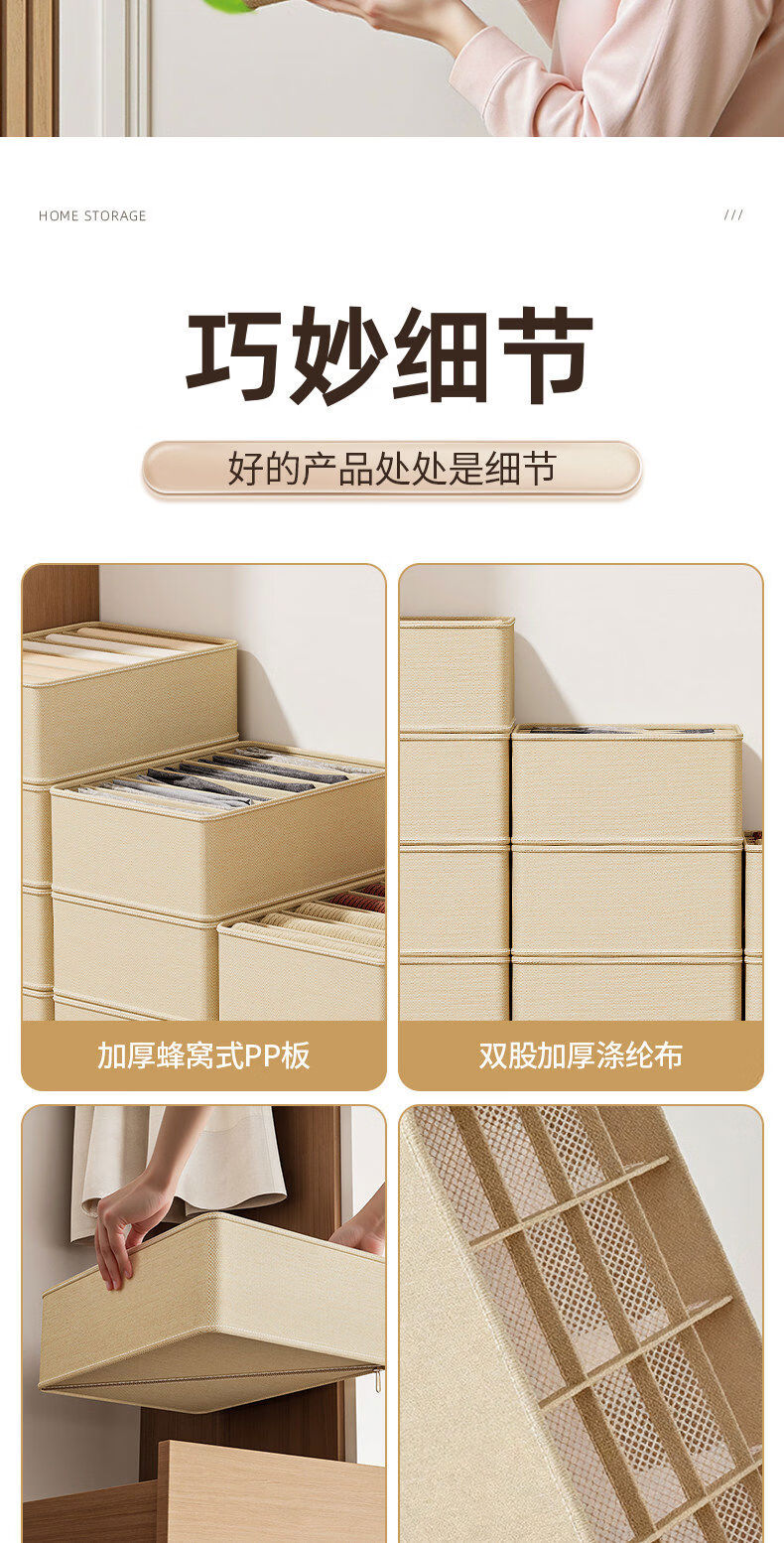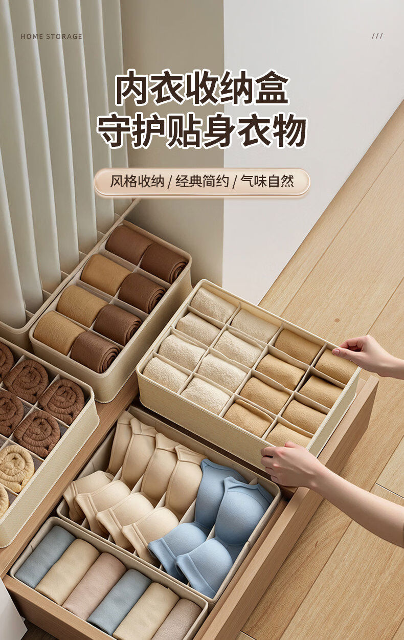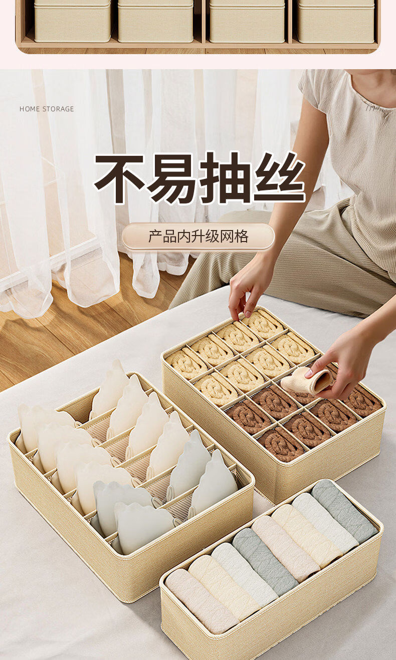 Pupan Underwear Storage Box Underwear Socks Drawer Divided Storage Organizing Box Underwear Wardrobe Division Beige Three-piece Set 16 Socks + 8 Underwear + 6 Underwear