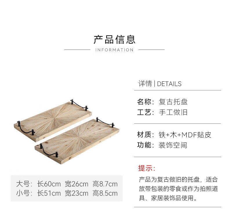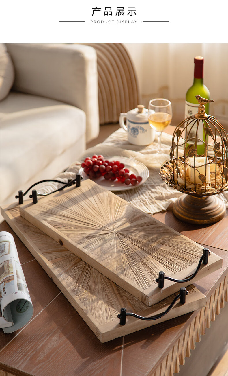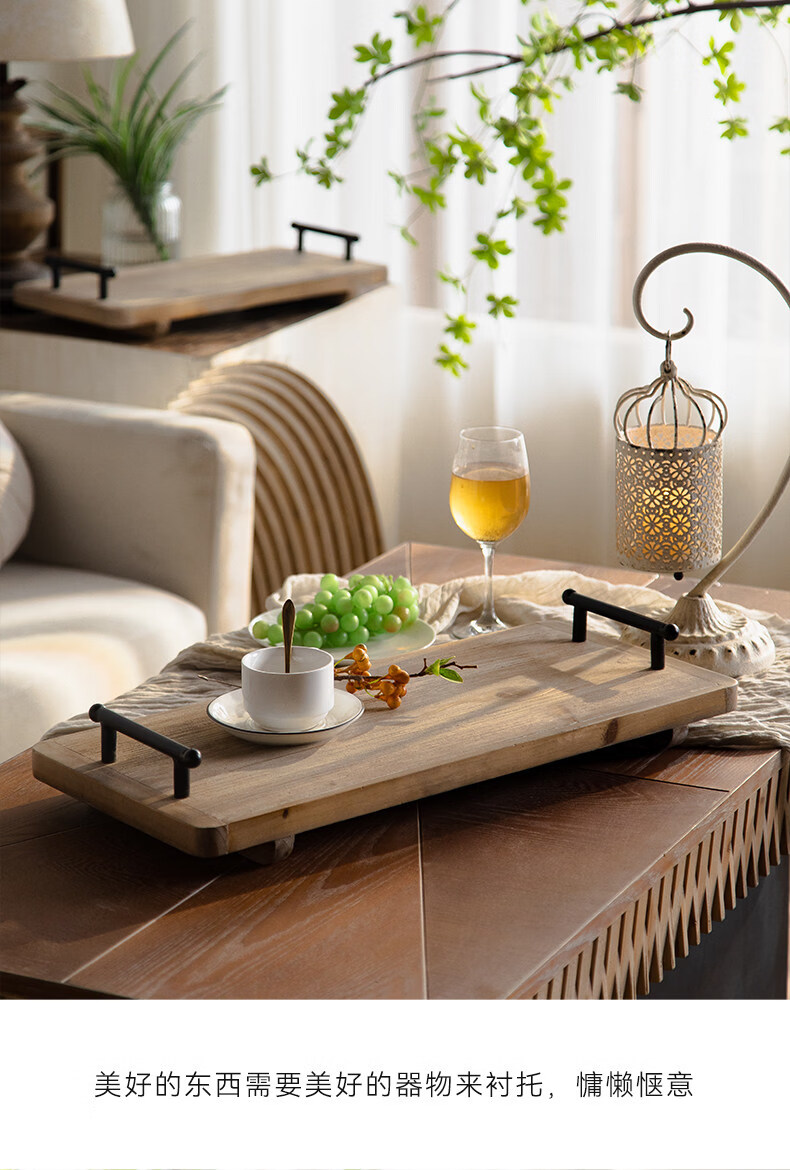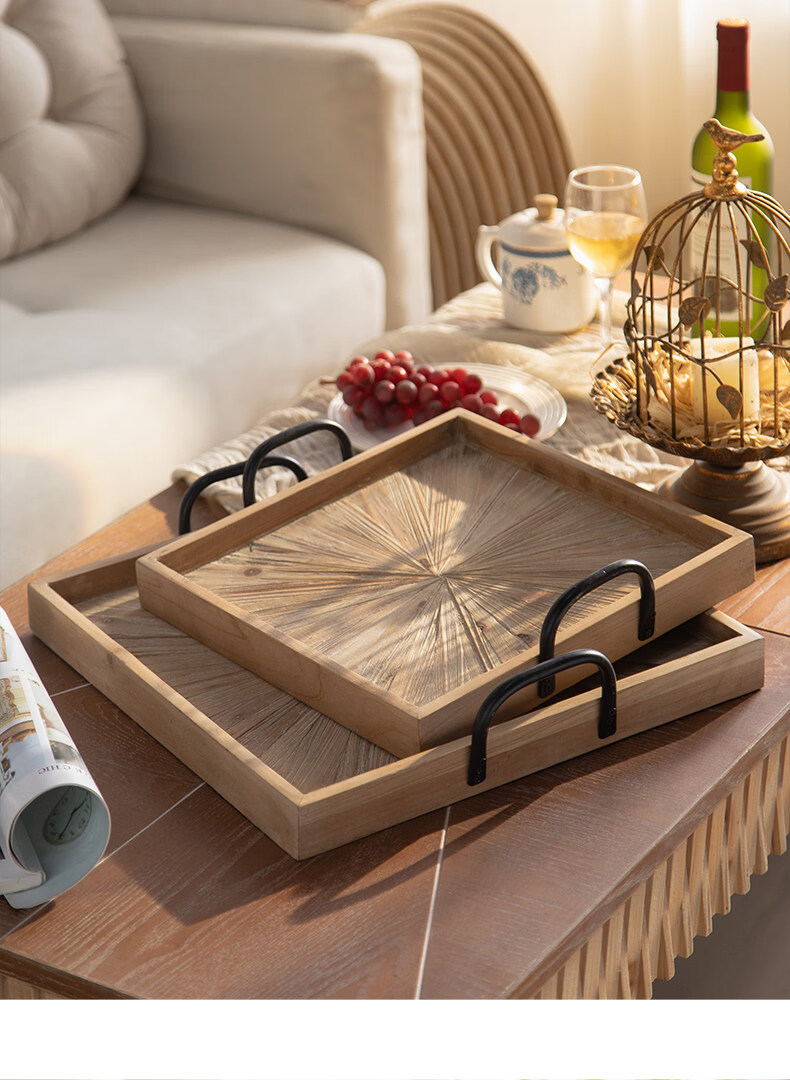 ZFEN German imported quality wabi-sabi style retro old wooden tray coffee flower shop B&B afternoon tea plate gourmet A2504_two set price