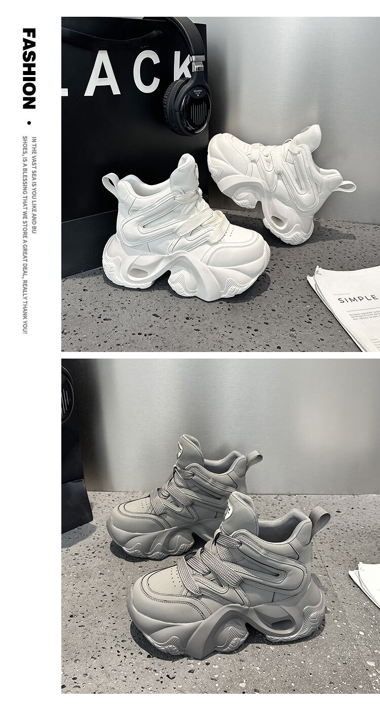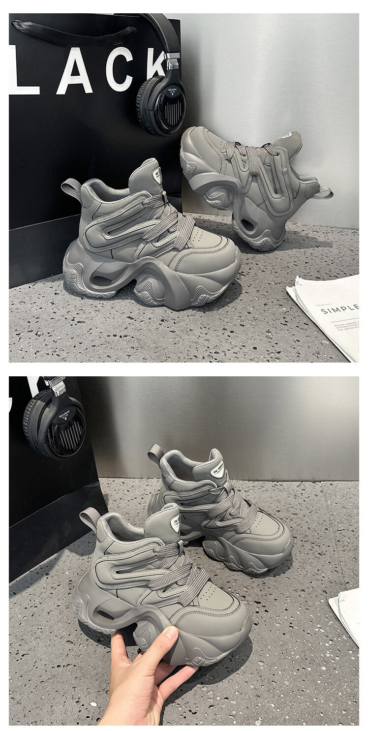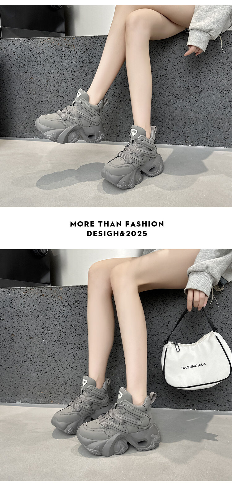 CARTELO crocodile daddy shoes for women 2025 new inner heightening versatile cotton shoes for women winter velvet thick sole high-top casual sports shoes gray 34