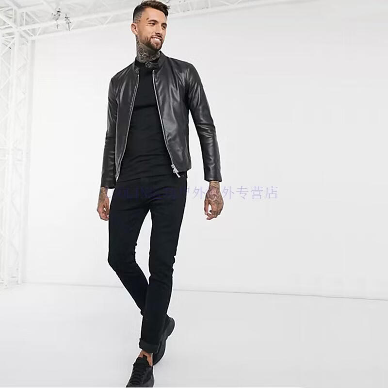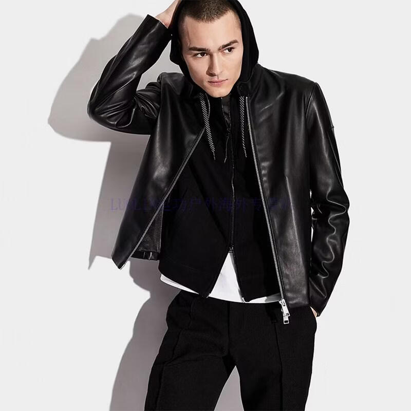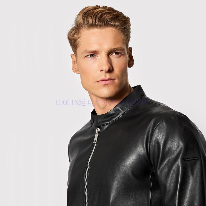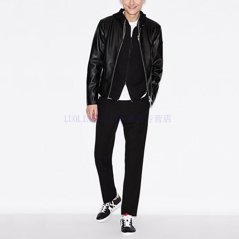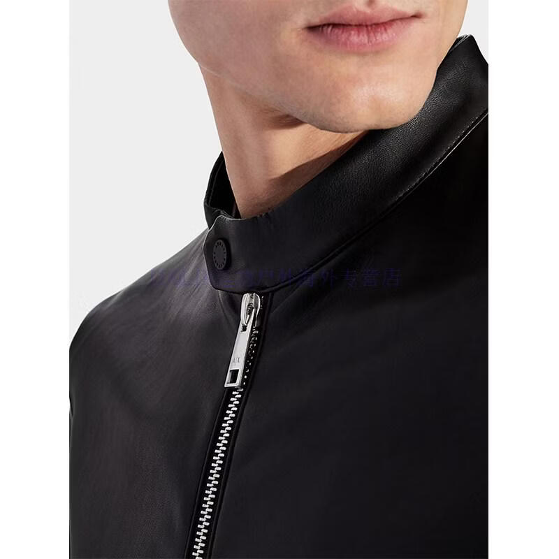ARMANIExchange Armani AX Men's Slim Leather Stand Collar Motorcycle Leather Jacket Black XS 160/80A_
