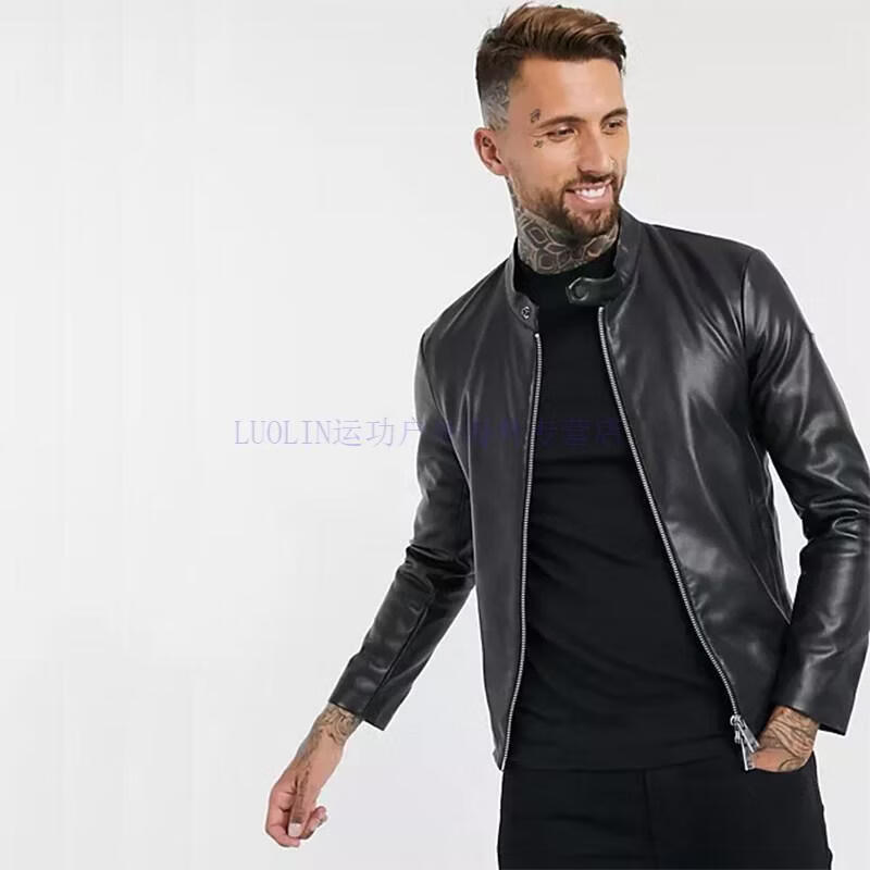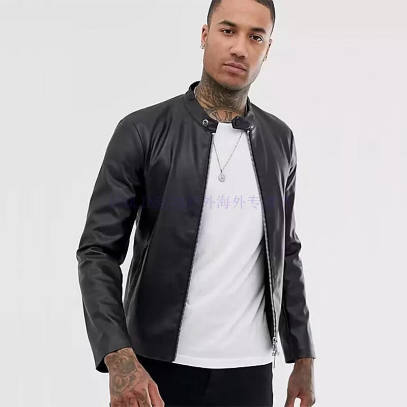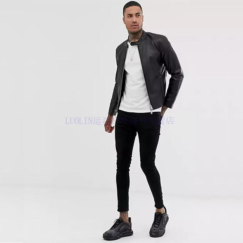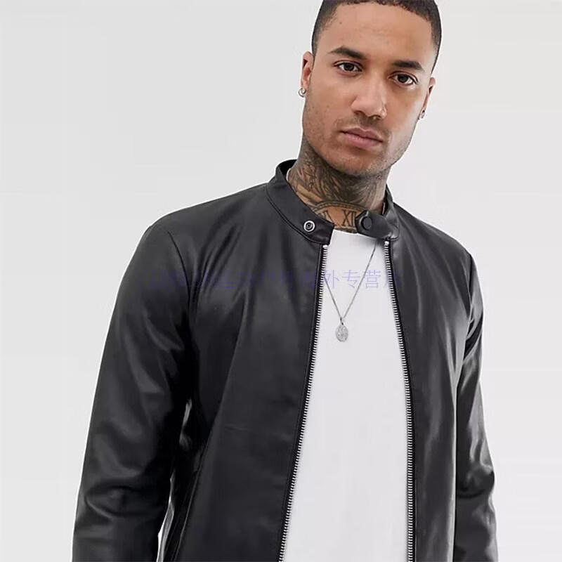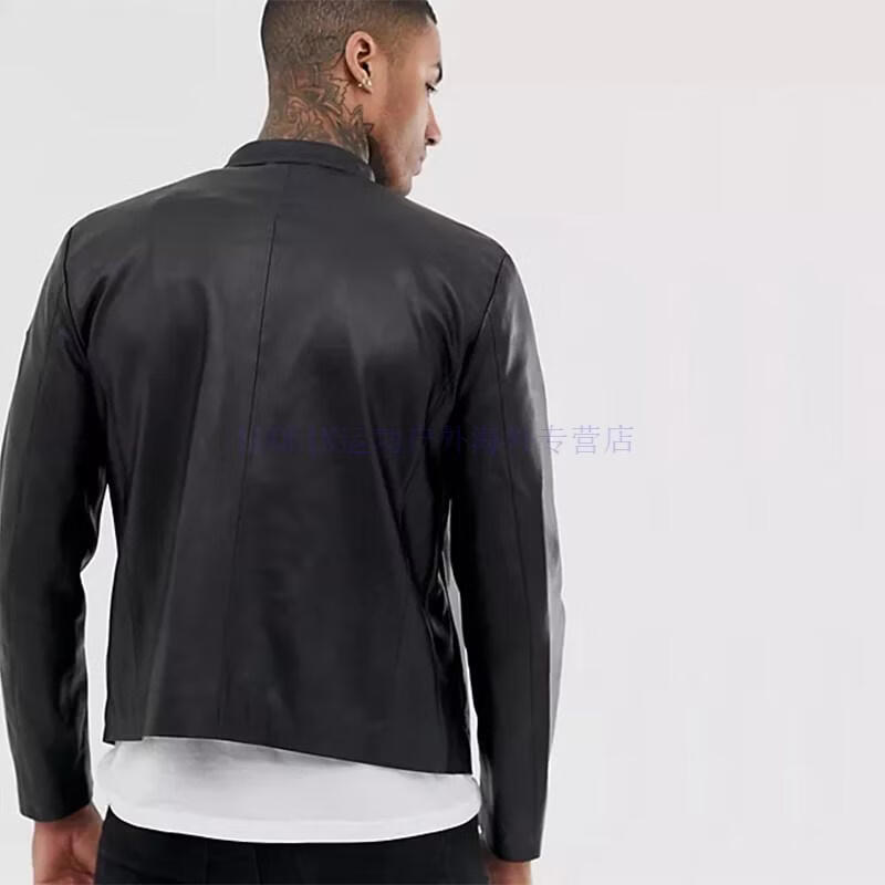 ARMANIExchange Armani AX Men's Slim Leather Stand Collar Motorcycle Leather Jacket Black XS 160/80A_