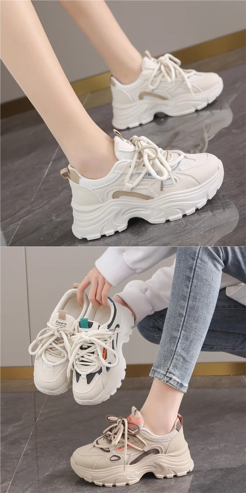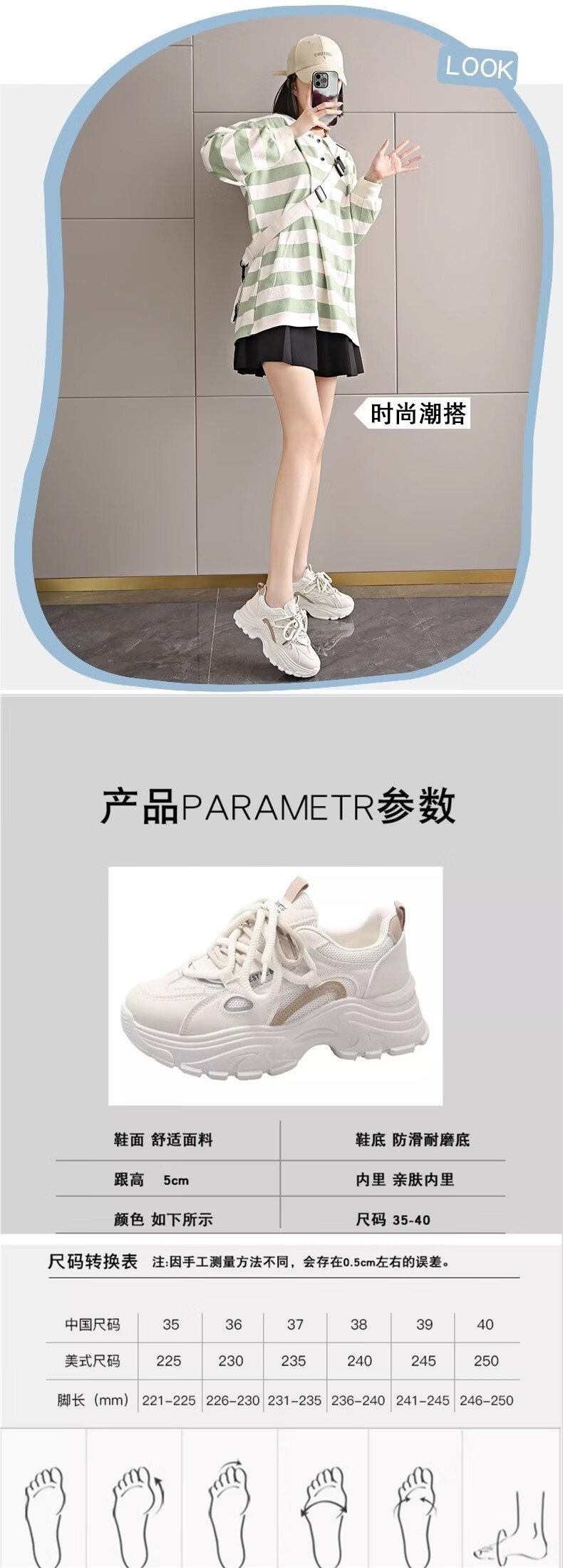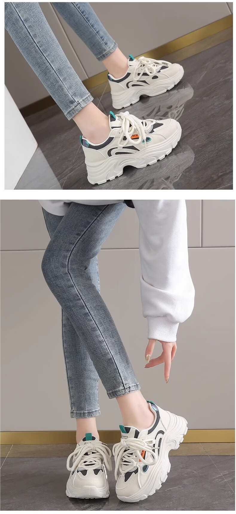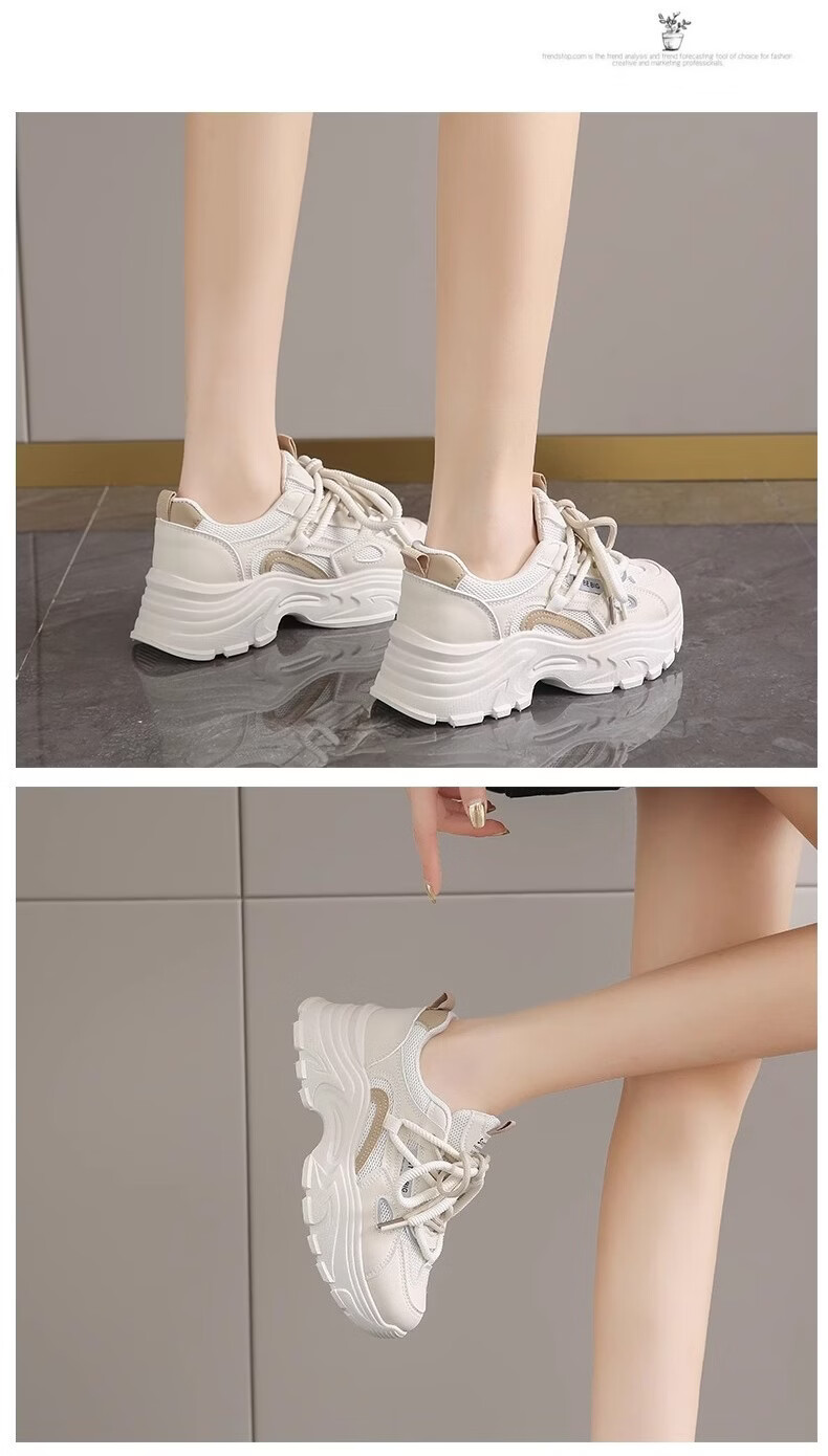 OLJ luxury high-end brand women's shoes breathable dad shoes 026 latest white shoes thick soles small sports shoes showing feet black and white upgraded solid soft sole 36