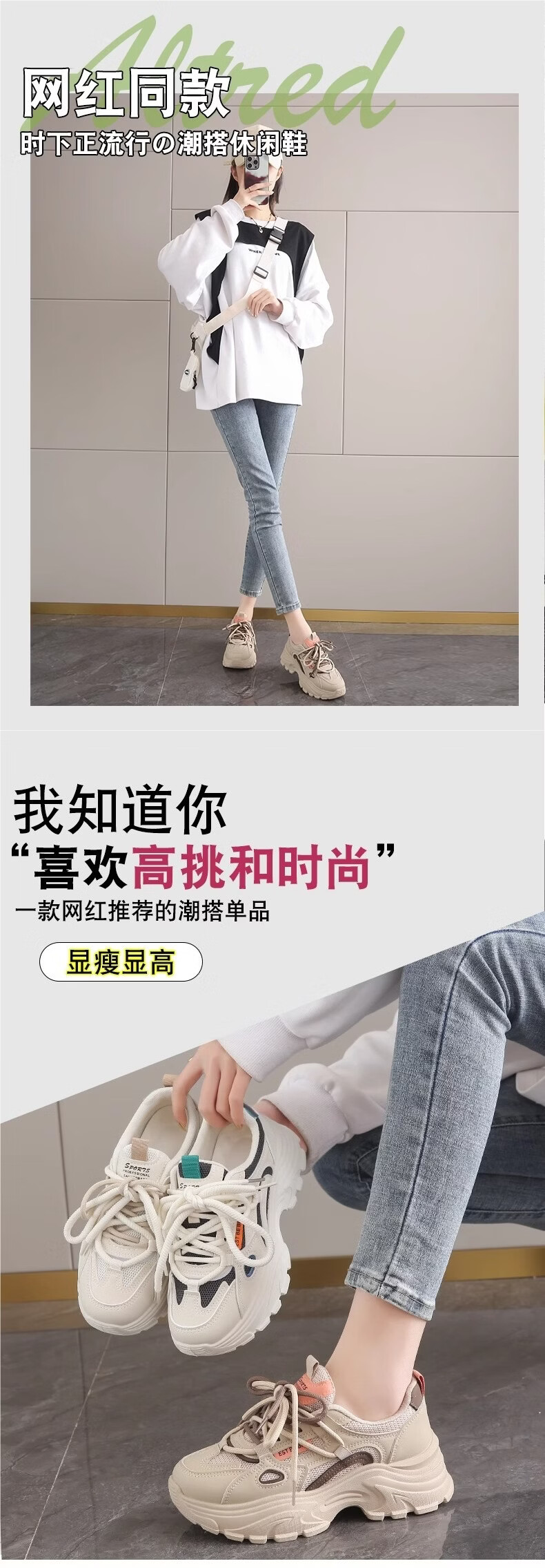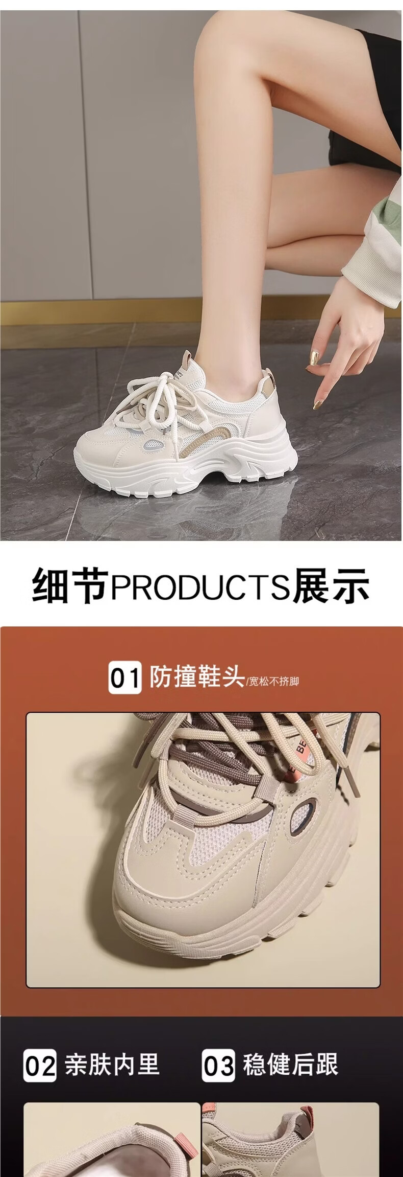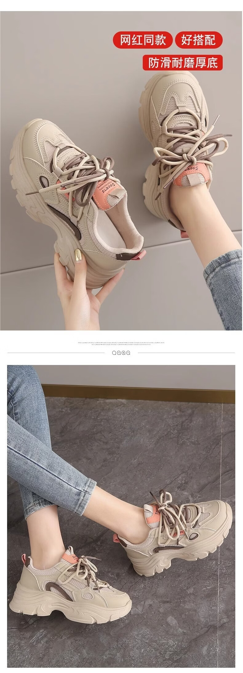 OLJ luxury high-end brand women's shoes breathable dad shoes 026 latest white shoes thick soles small sports shoes showing feet black and white upgraded solid soft sole 36