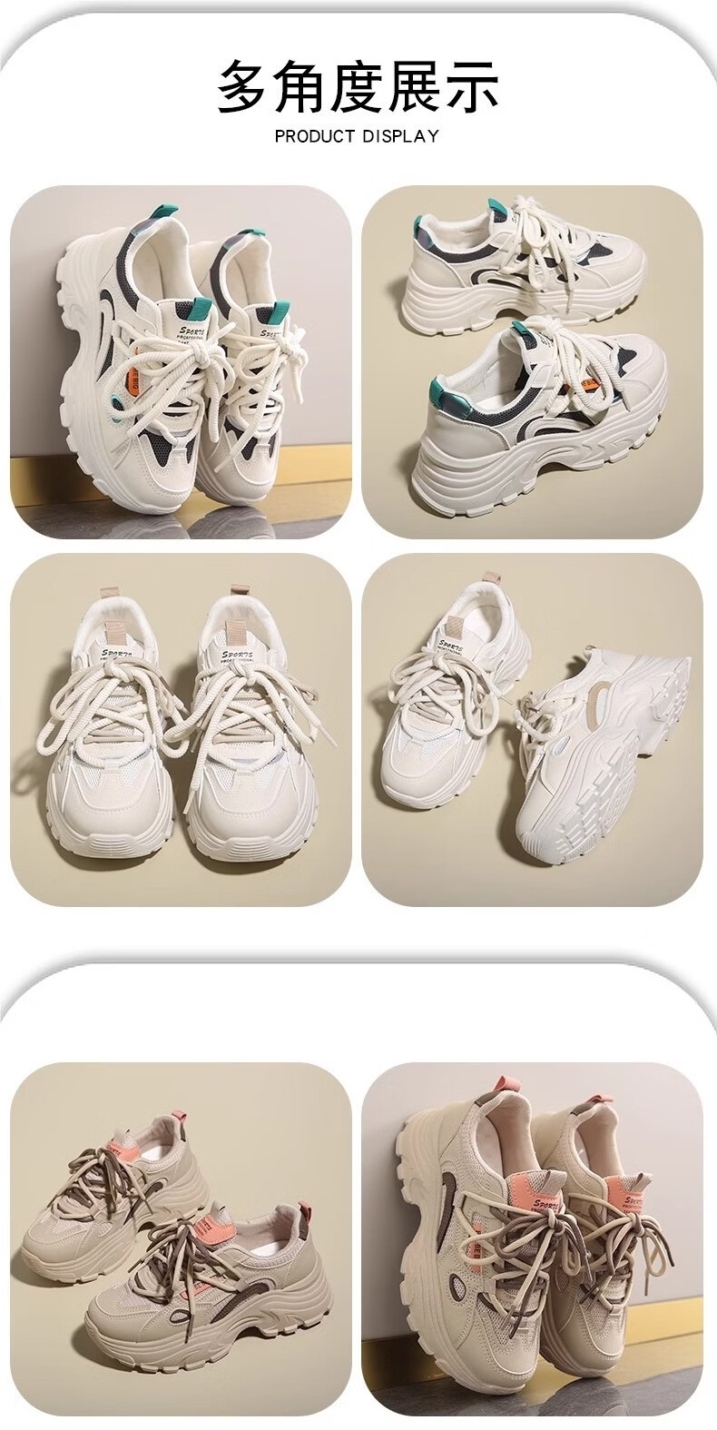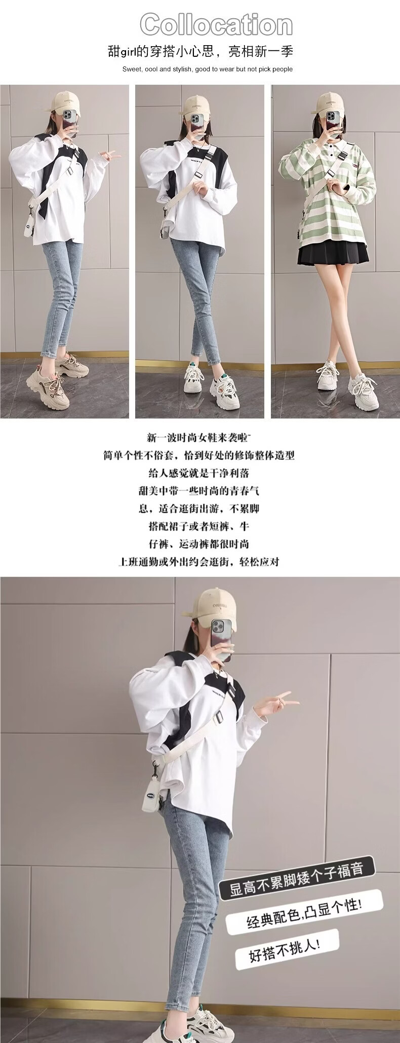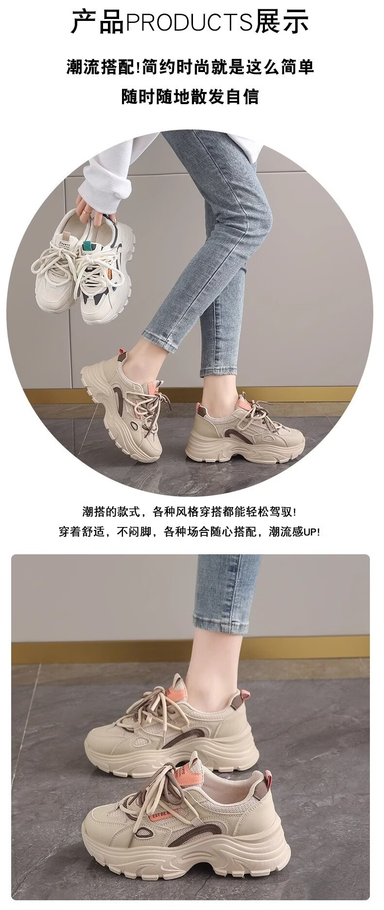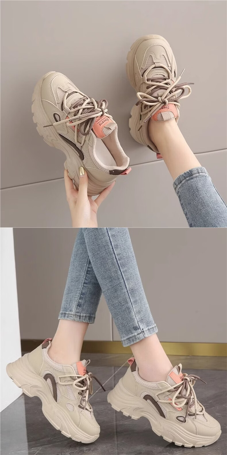 OLJ luxury high-end brand women's shoes breathable dad shoes 026 latest white shoes thick soles small sports shoes showing feet black and white upgraded solid soft sole 36