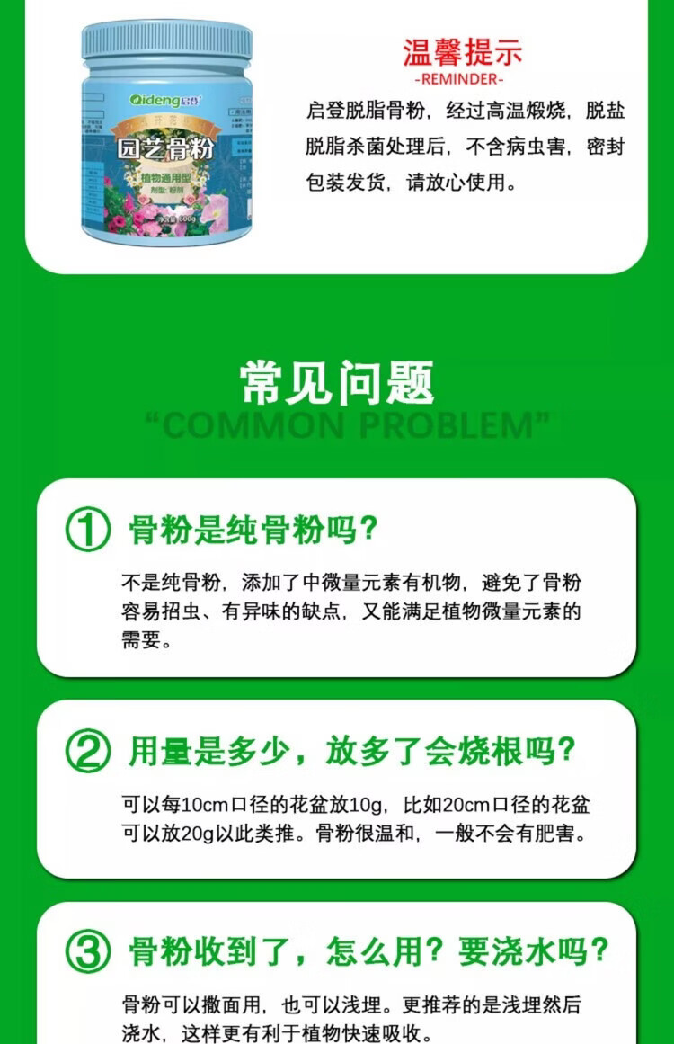 Qideng skim bone meal for flower cultivation, phosphorus, potassium and calcium fertilizer to promote flowering, slow-release organic flower fertilizer, general plant for flower cultivation and vegetable cultivation, 3 bags of skim horticulture bone meal, essential for flower cultivation