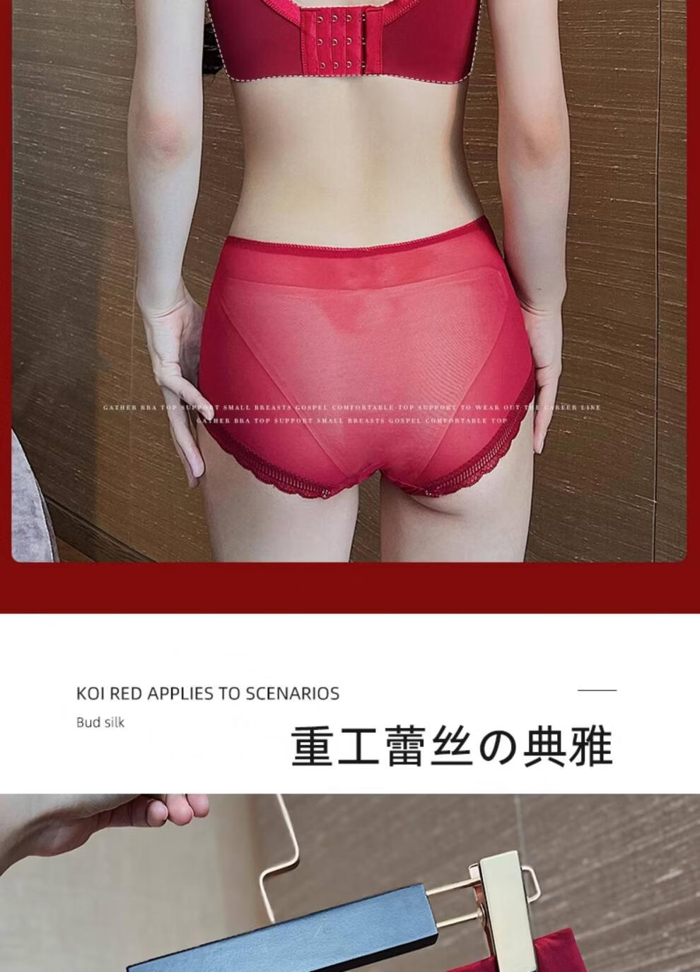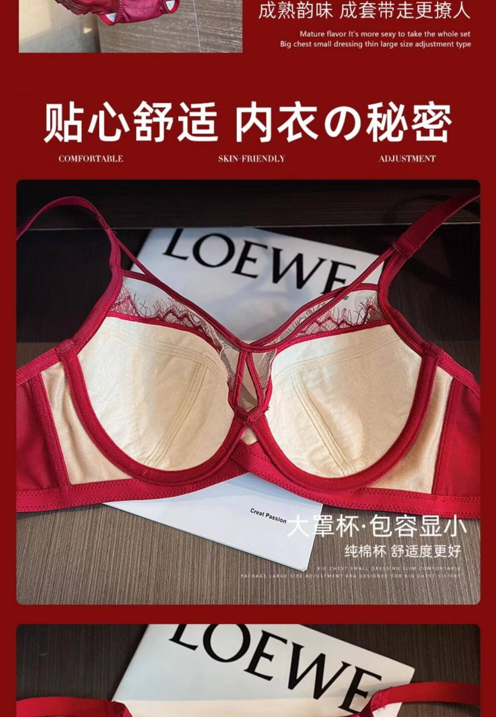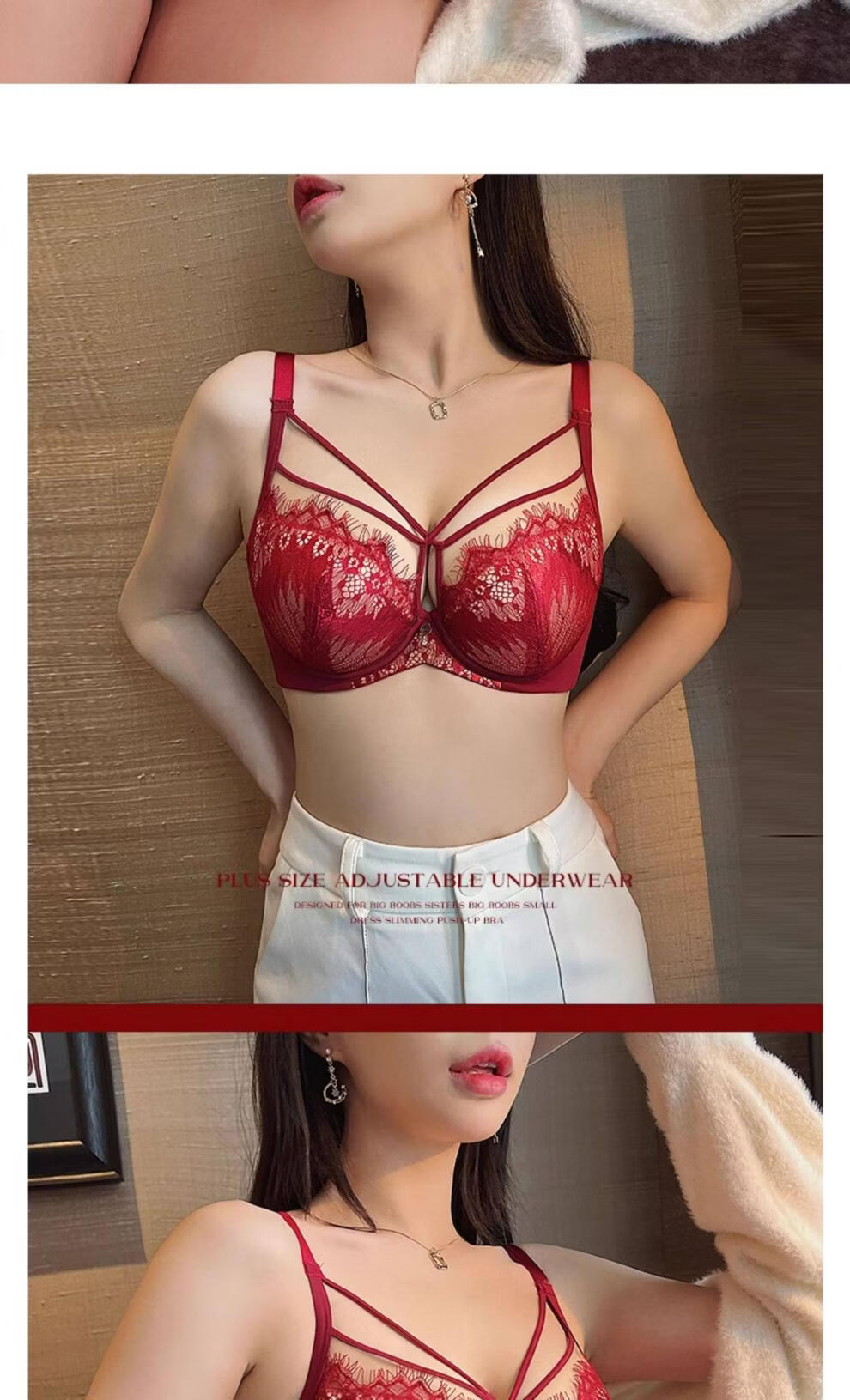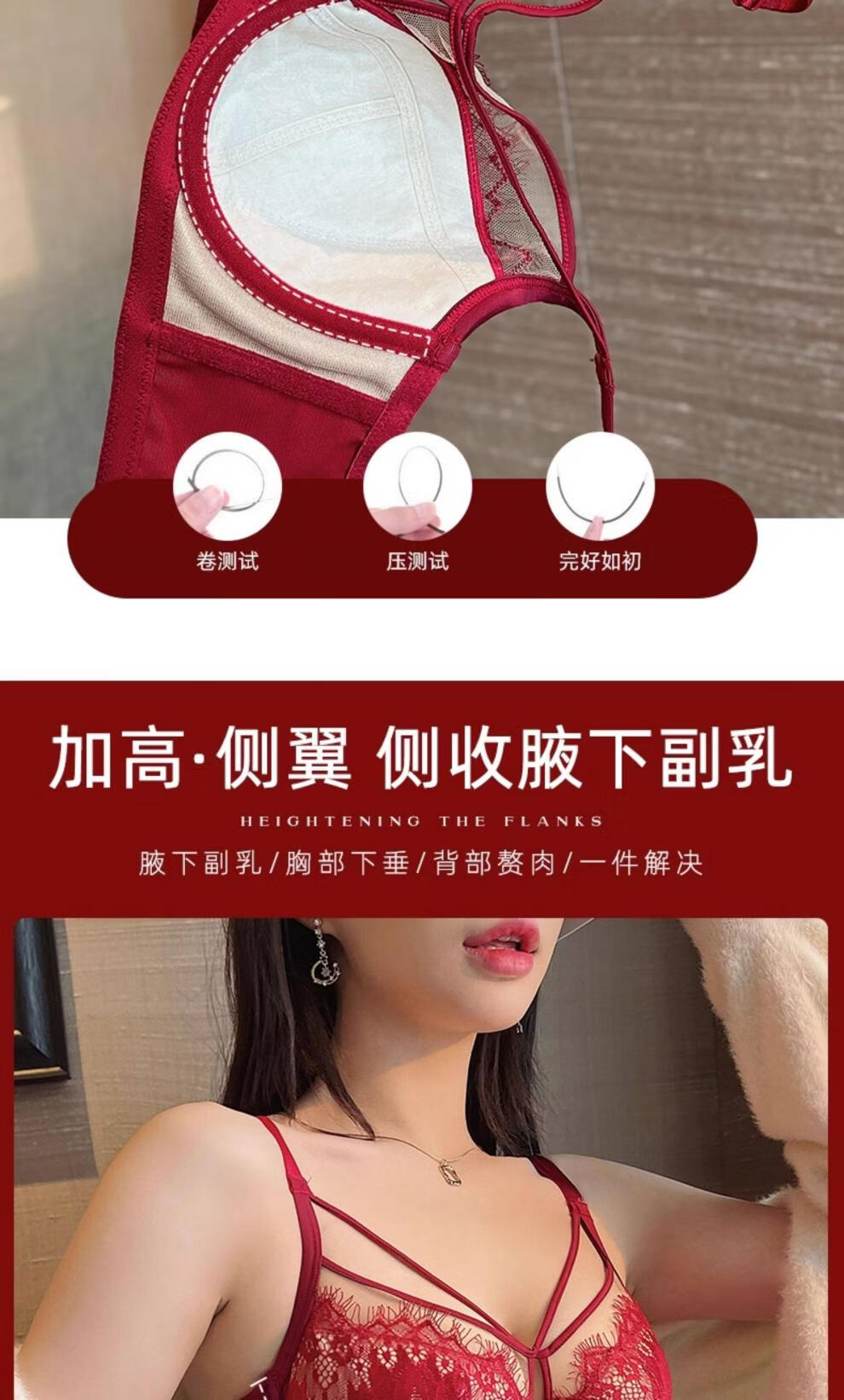 Modal Red Underwear Women's Birthday Festive Sexy Lace Bra Set Gathering Up Anti-Sagging Big Breasts Showing Small Thin Bra Burgundy (Set) 75C 34
