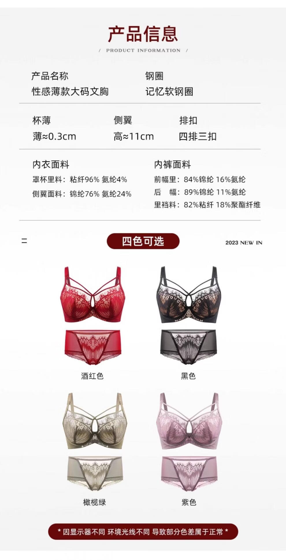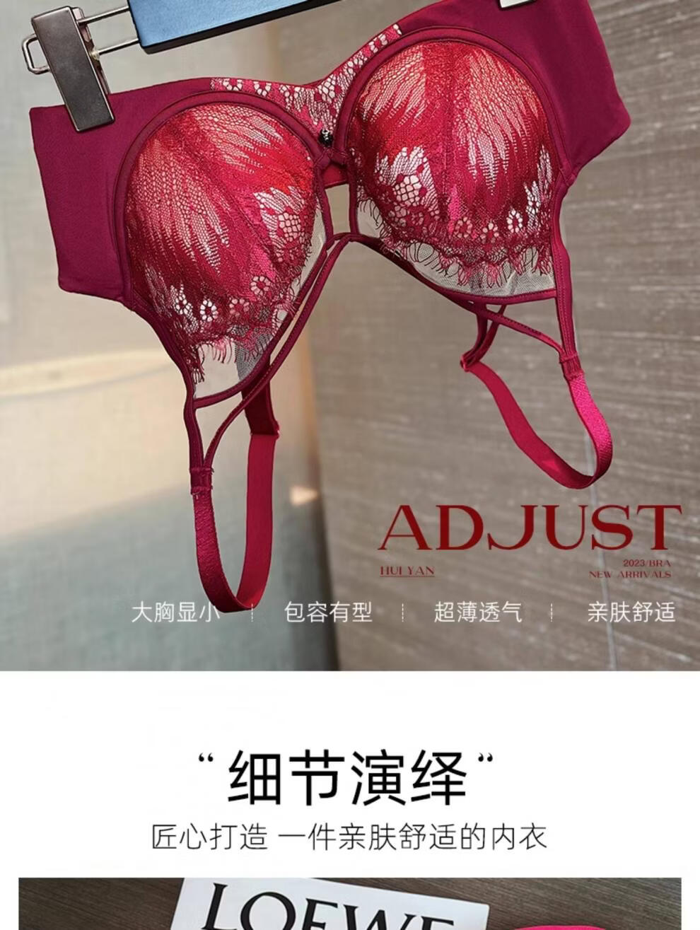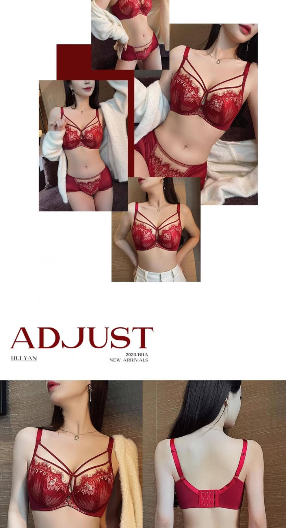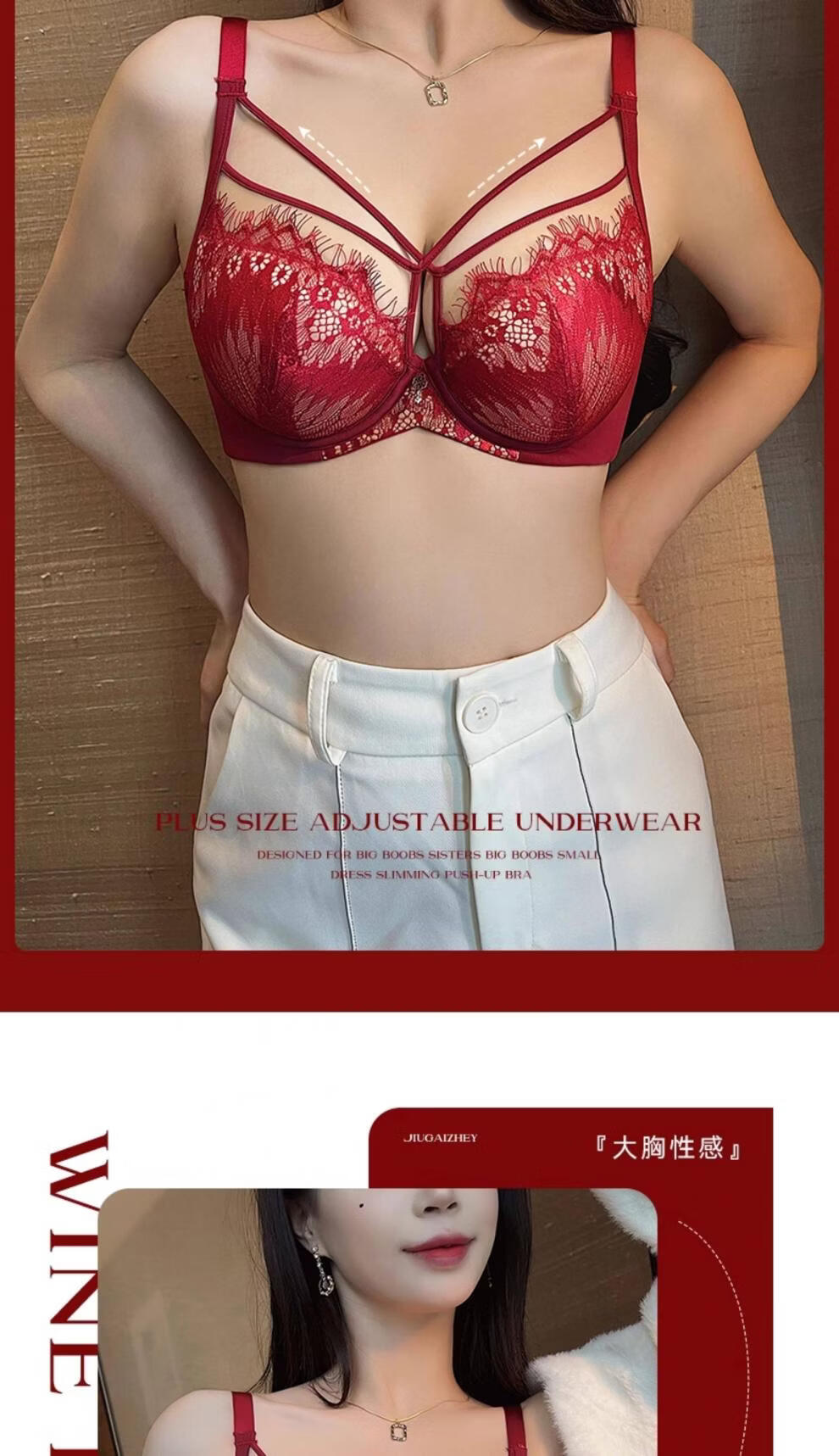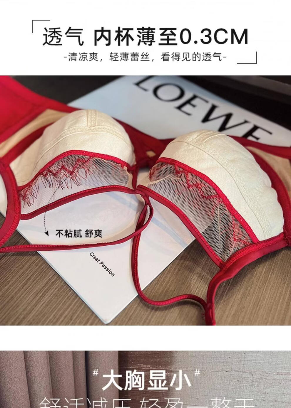 Modal Red Underwear Women's Birthday Festive Sexy Lace Bra Set Gathering Up Anti-Sagging Big Breasts Showing Small Thin Bra Burgundy (Set) 75C 34