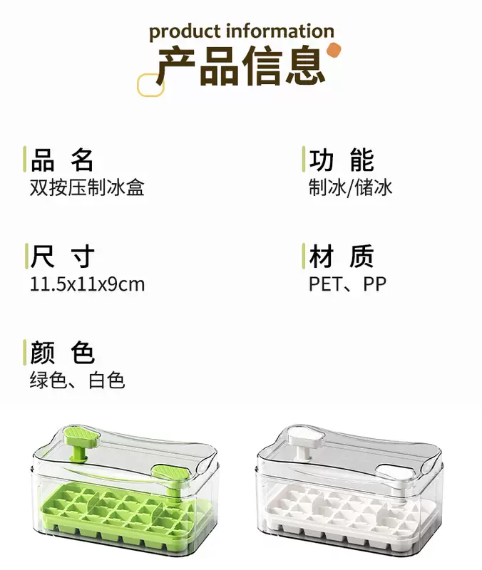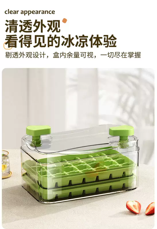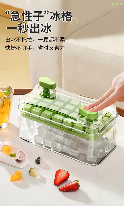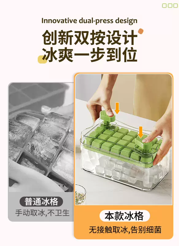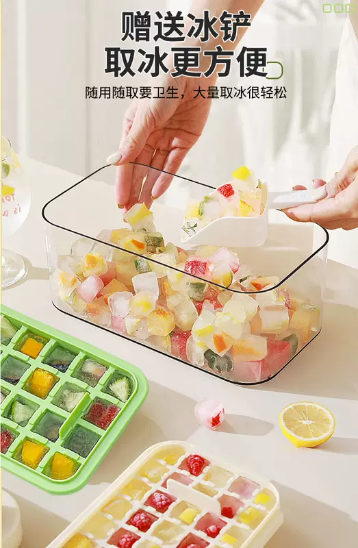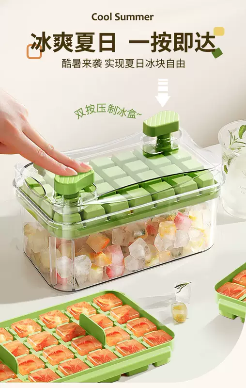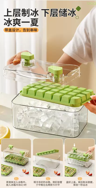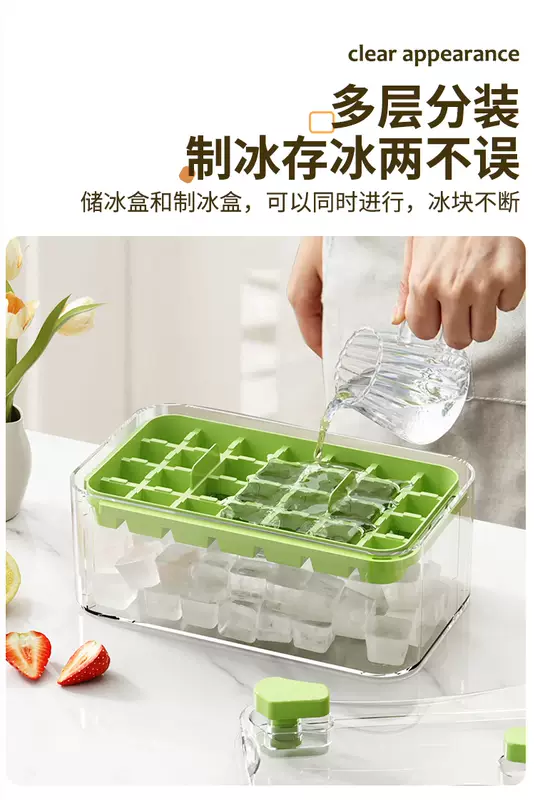 Yusenyi Ice Cube Mold Food Grade Pressed Ice Tray Household Homemade Frozen Ice Cube Ice Box Ice Storage Box Frozen Ice Cube Artifact (Food Grade Ice Out in Seconds) Avocado Green Three Layers 84 Grids - Free Ice Shovel