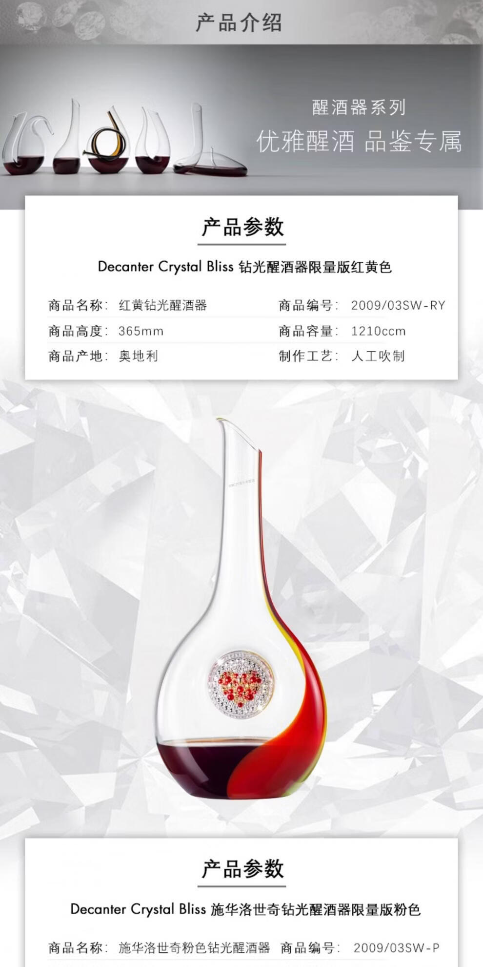 RIEDEL Limited Collection Swarovski Handmade Luxurious Crystal Decanter Creative Wine Divider Gift New Product First Release Limited Edition Diamond Decanter Red and Yellow