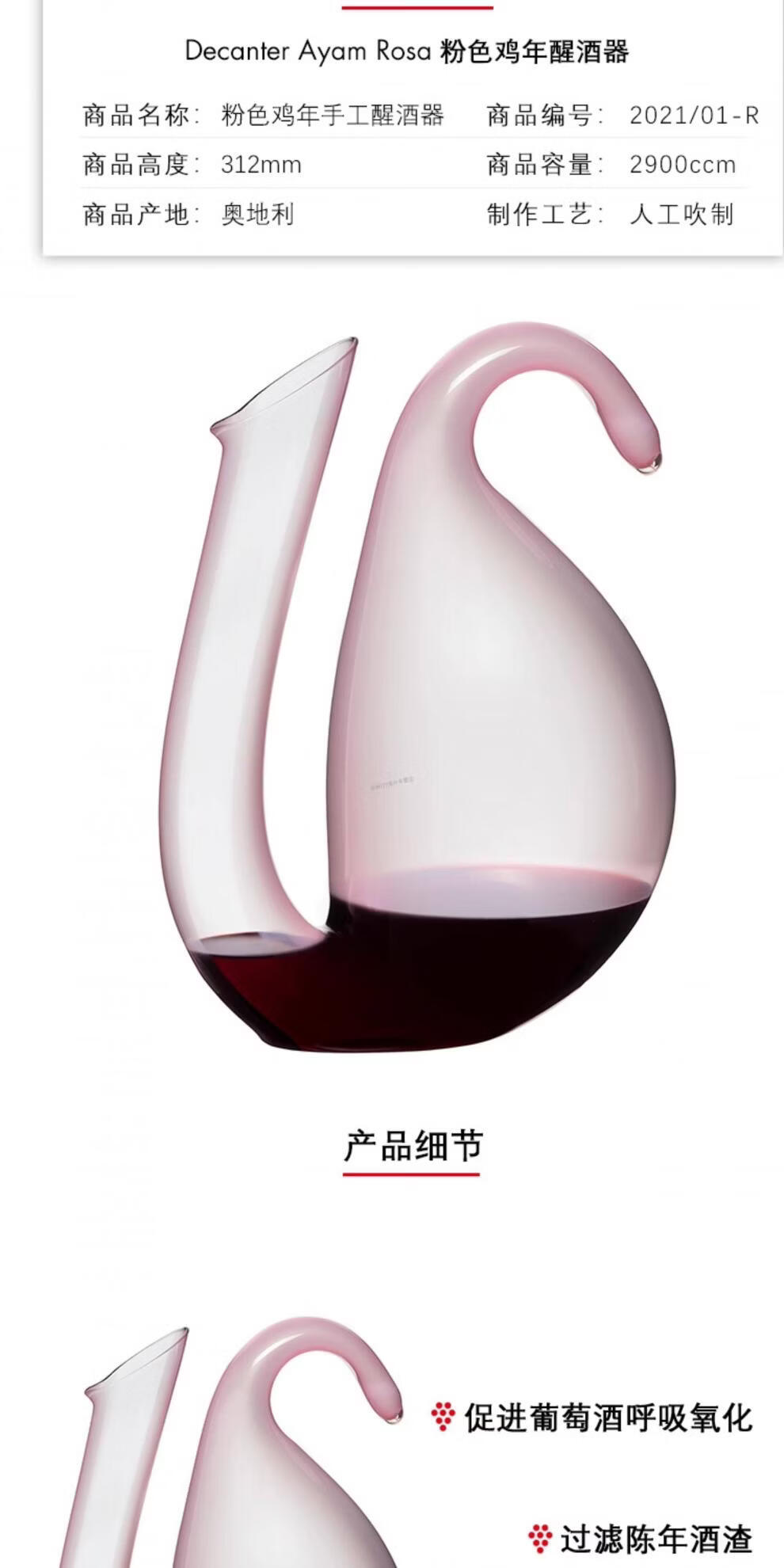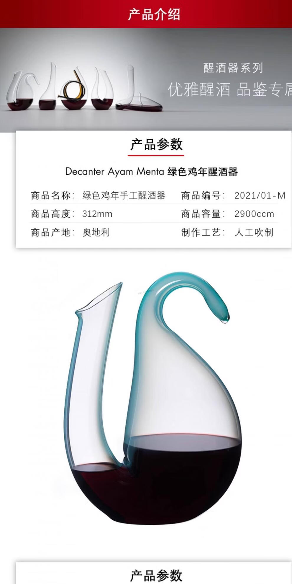 RIEDEL Austrian colorful rooster handmade decanter creative crystal wine divider flask high-value gift green Year of the Rooster decanter