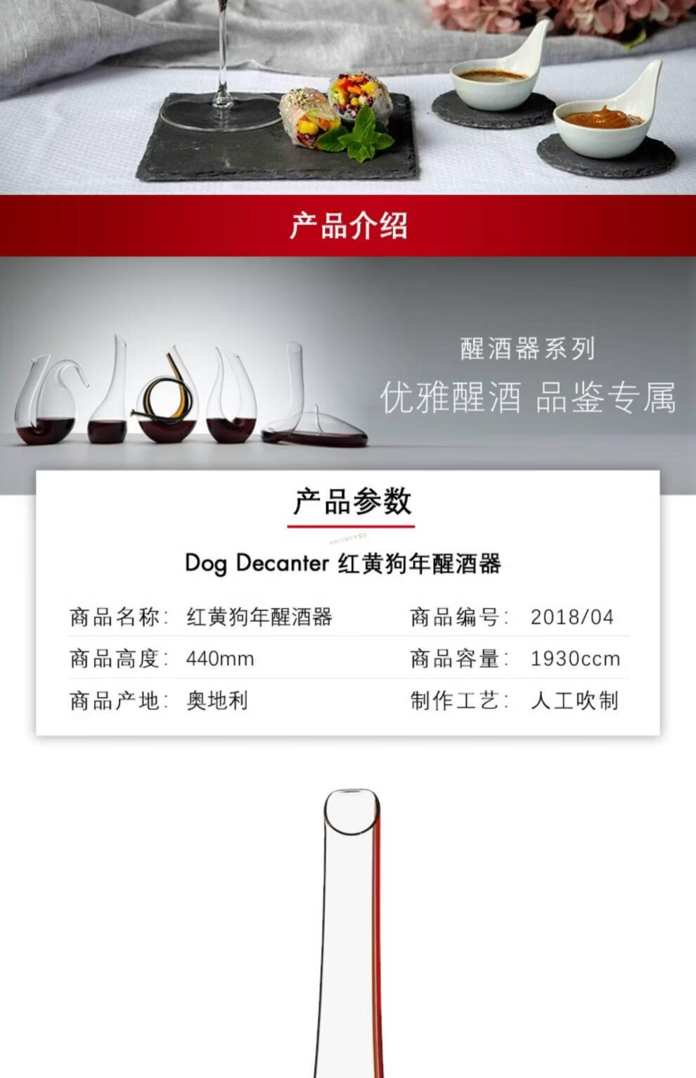 RIEDEL Zodiac Limited Edition Year of the Dog Handmade Red and Yellow Crystal Decanter Wine Divider Light Luxury Gift Imported Red and Yellow Year of the Dog Decanter