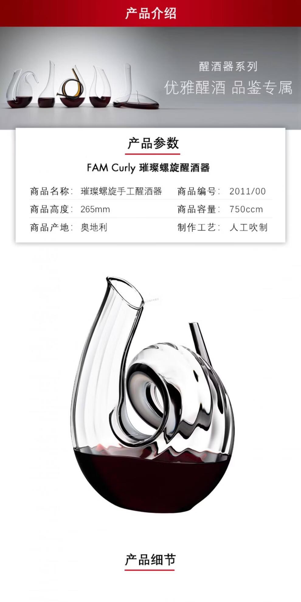 RIEDEL's new product debut, brilliant spiral handmade crystal decanter, wine divider, high-value gift, brilliant handmade decanter