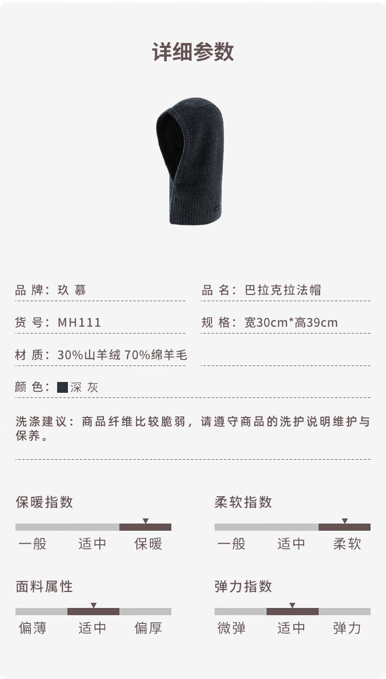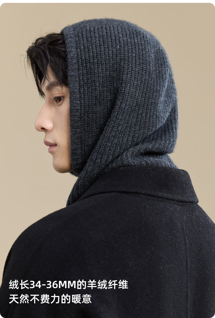JIUMU hat and scarf integrated autumn and winter wool hooded scarf and neck cover dual-purpose thickened balaclava dark gray one size fits all (56-60cm)