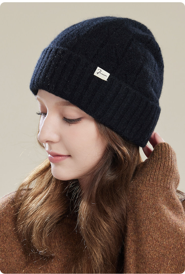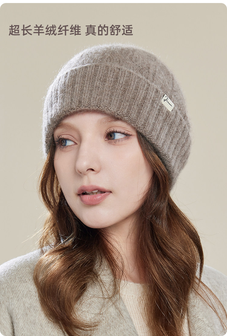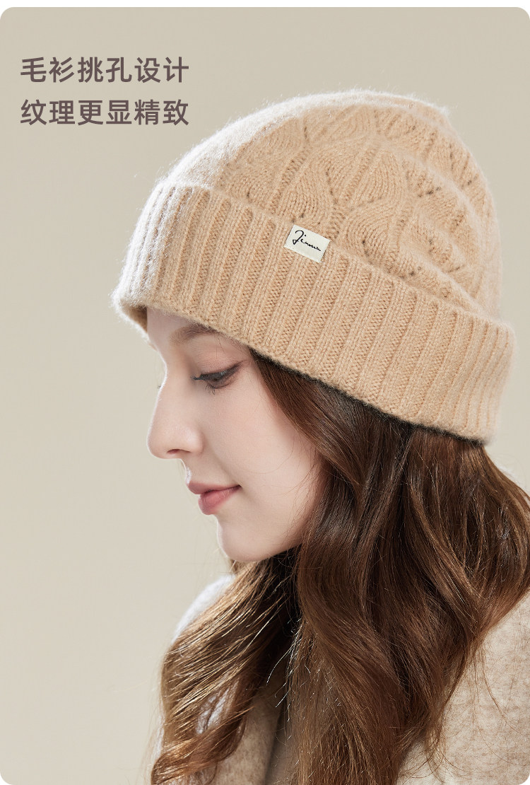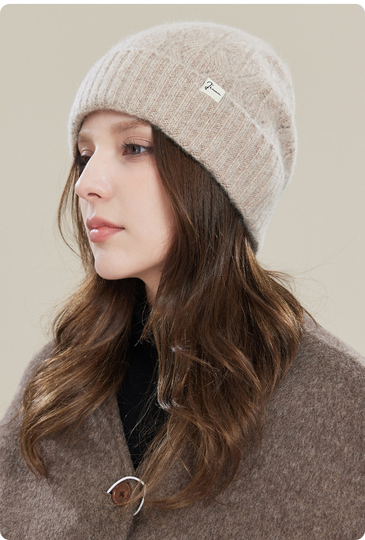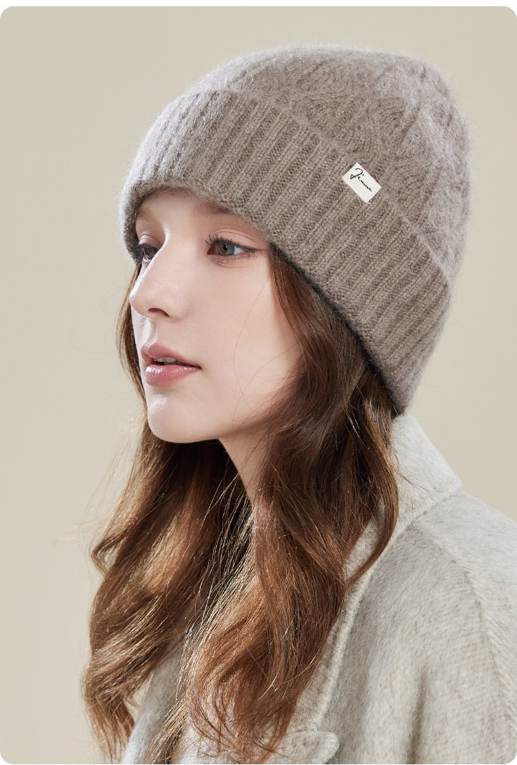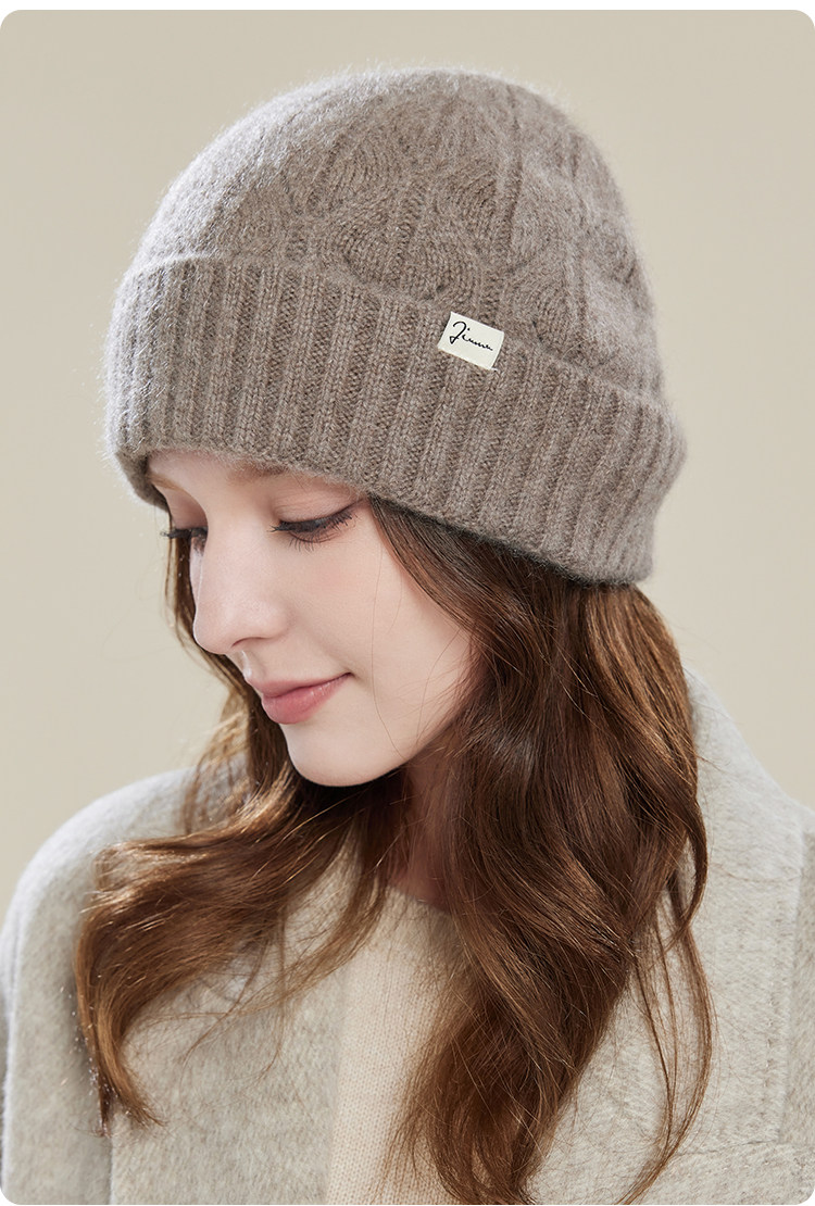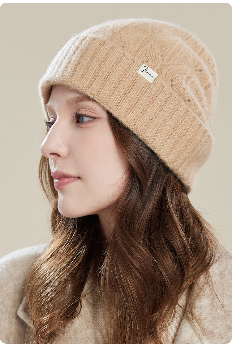 JIUMU Mountain Hat Women's Autumn and Winter Versatile Thickened Warm Wool Granny Hat Knitted Mother Beanie Hat Gift Mocha Brown One Size (56-60cm)