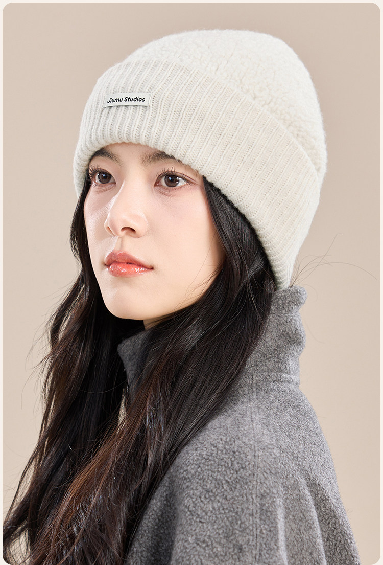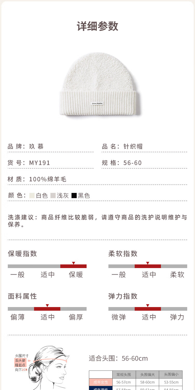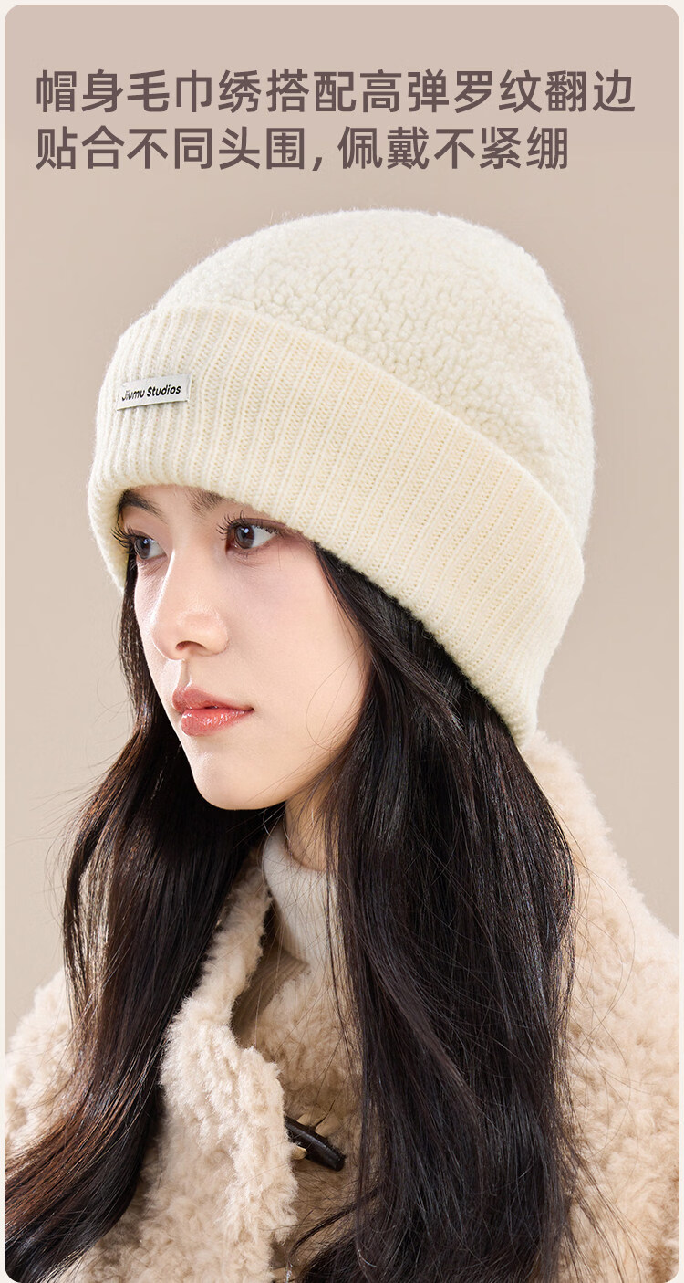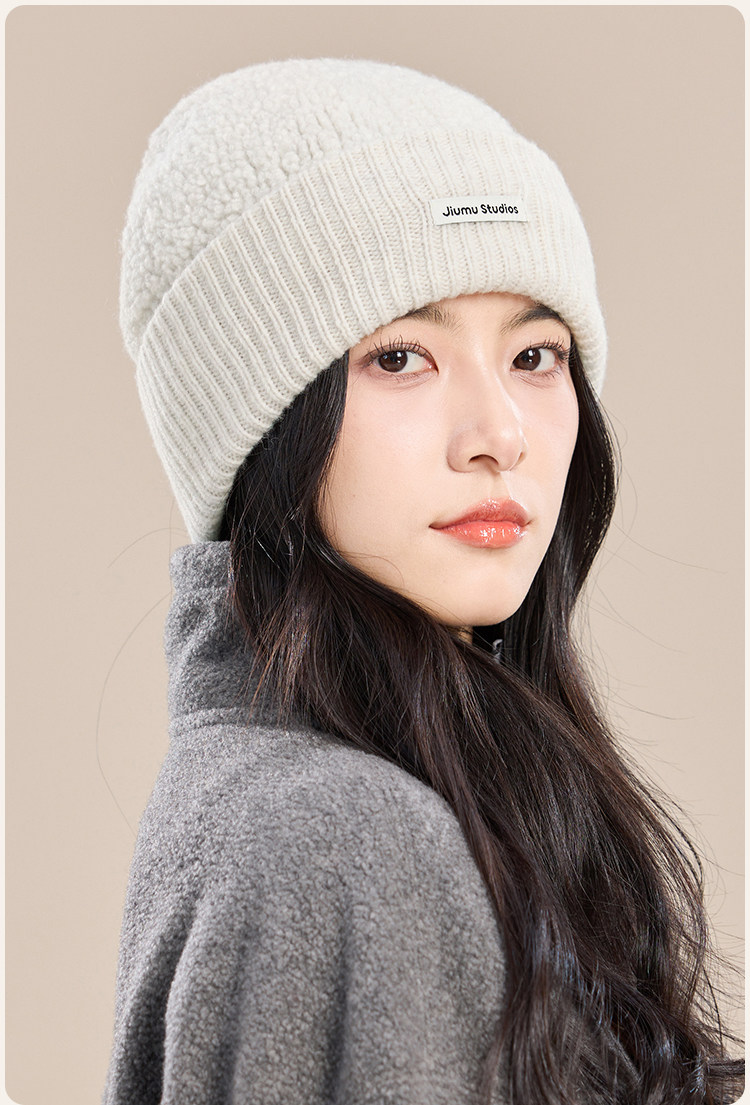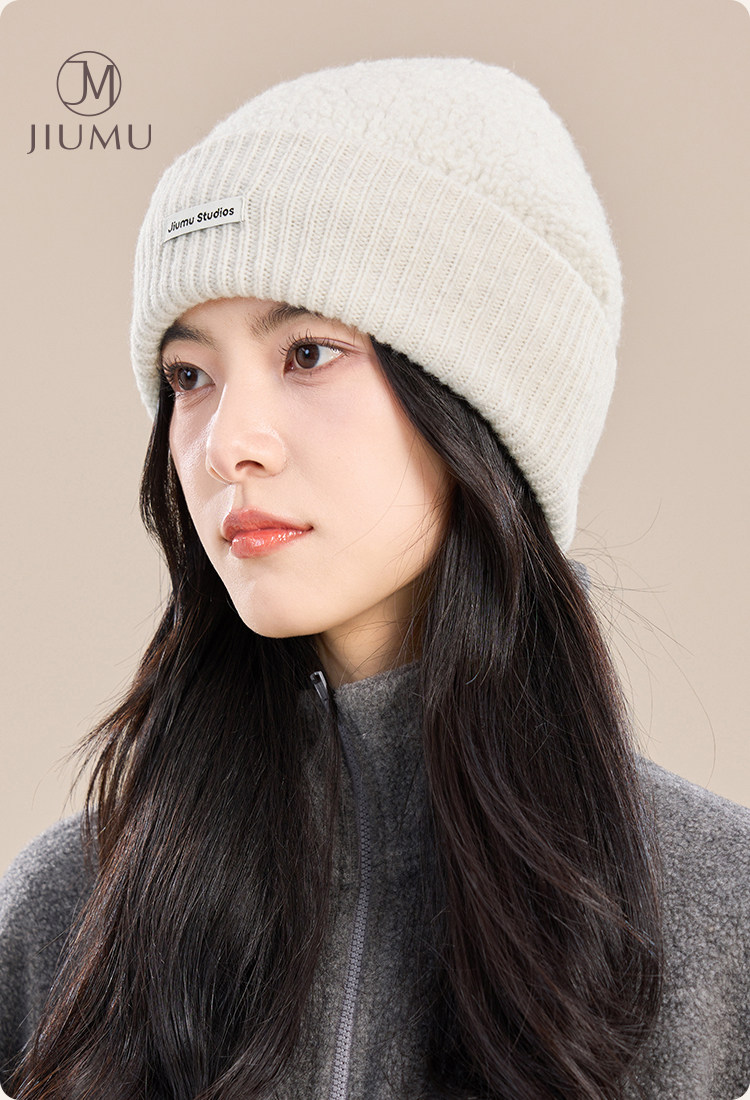 JIUMU Pure Wool Hat Women's Autumn and Winter Warm Ear Protection Knitted Wool Hat Showing Face Small Baotou Confinement Cold Hat Light Gray One Size (56-60cm)