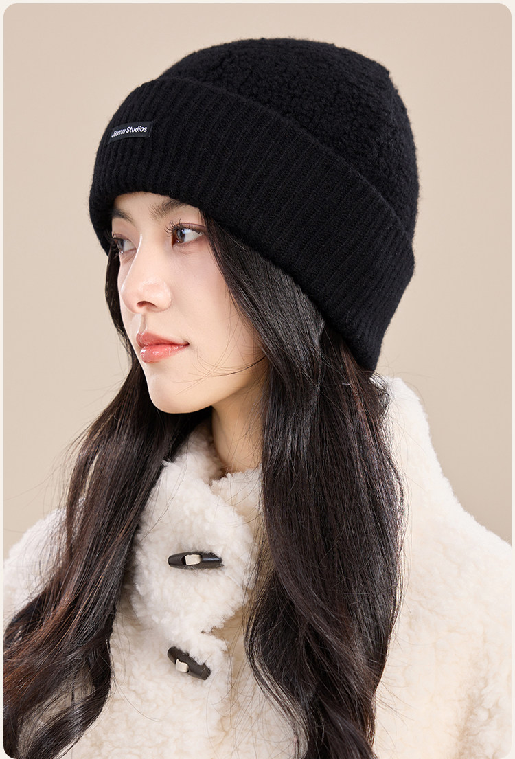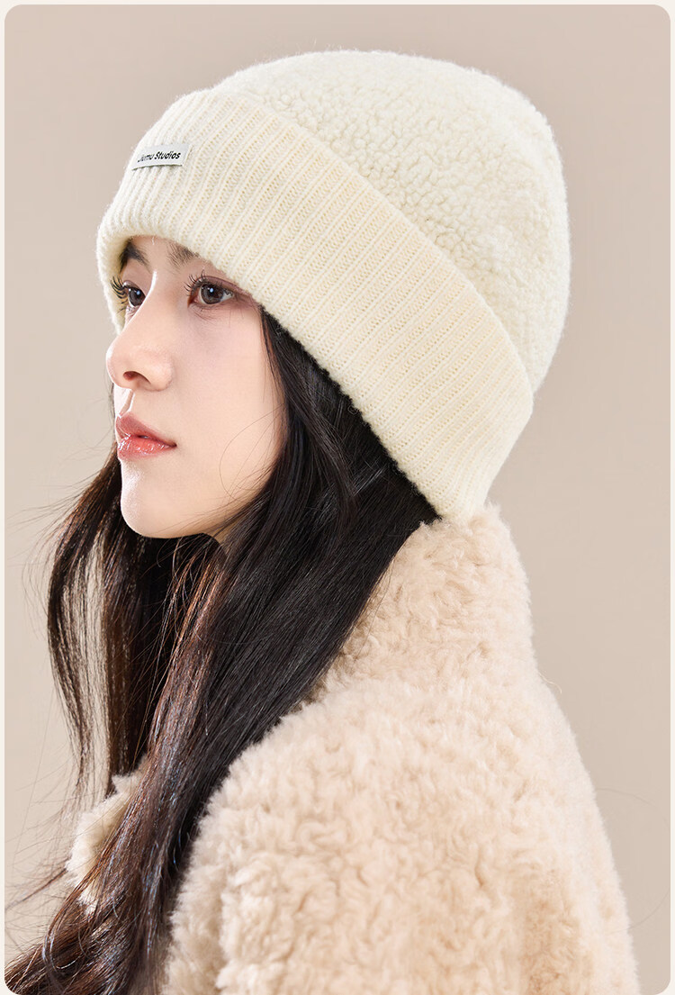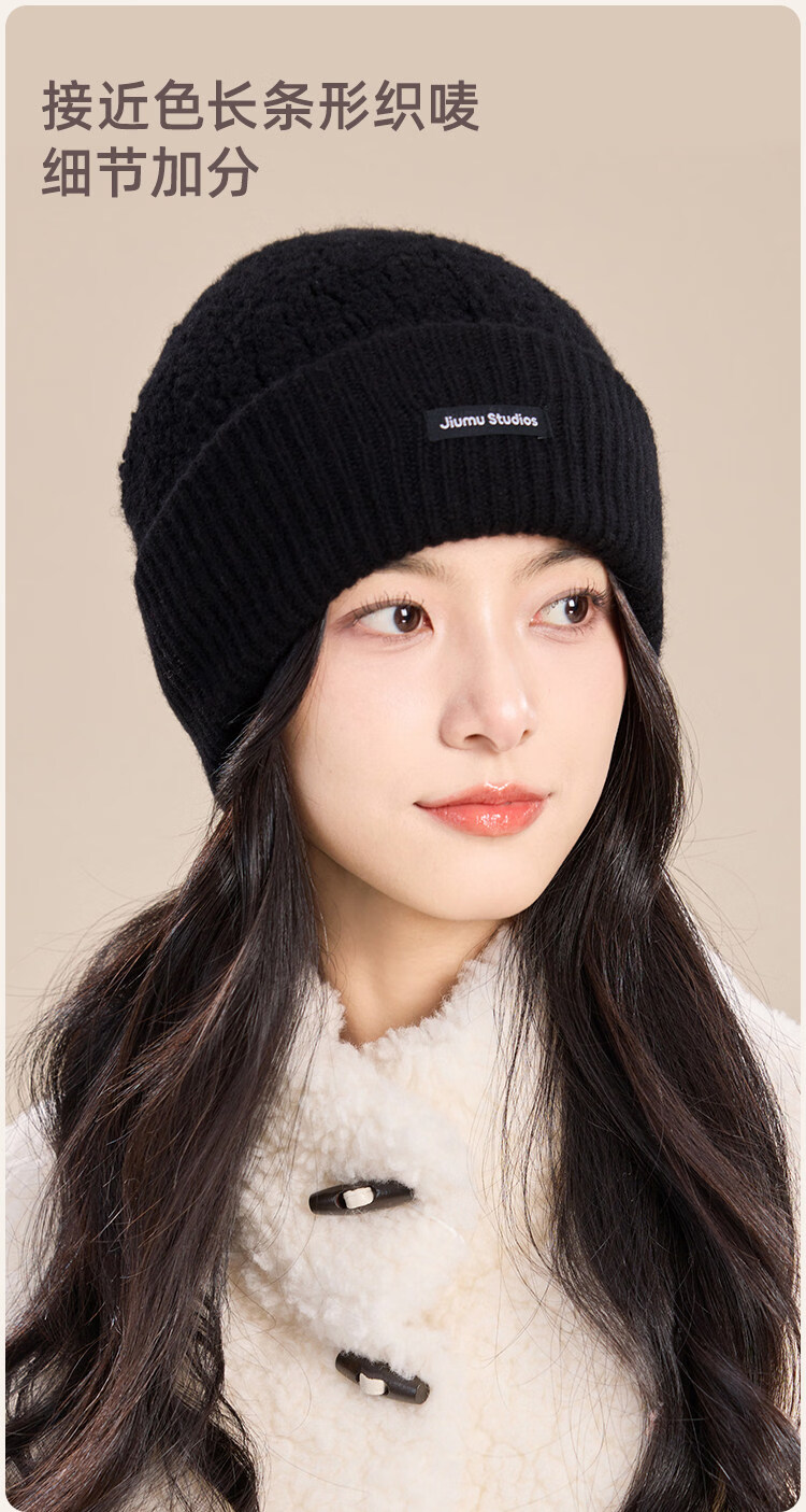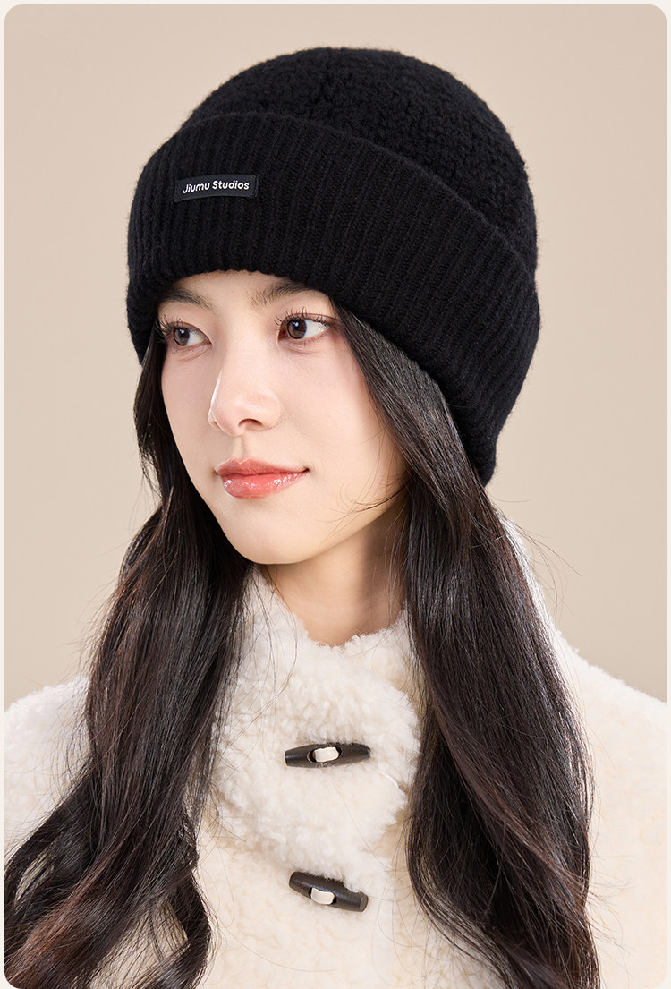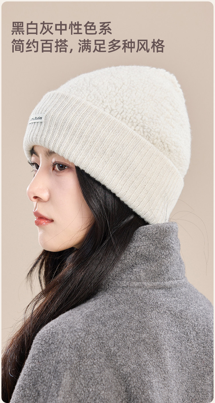 JIUMU Pure Wool Hat Women's Autumn and Winter Warm Ear Protection Knitted Wool Hat Showing Face Small Baotou Confinement Cold Hat Light Gray One Size (56-60cm)