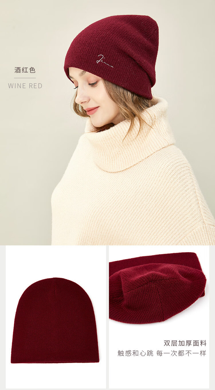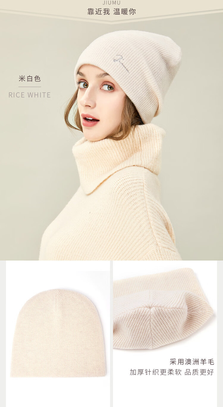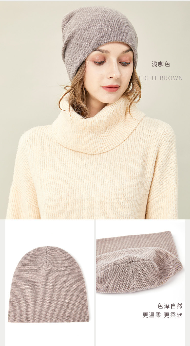 JIUMU Wool Hat Women's Autumn and Winter Pure Wool Korean Thick Warm Ear Protector Mother's Knitted Confinement Hat Light Brown One Size (Stretchable)