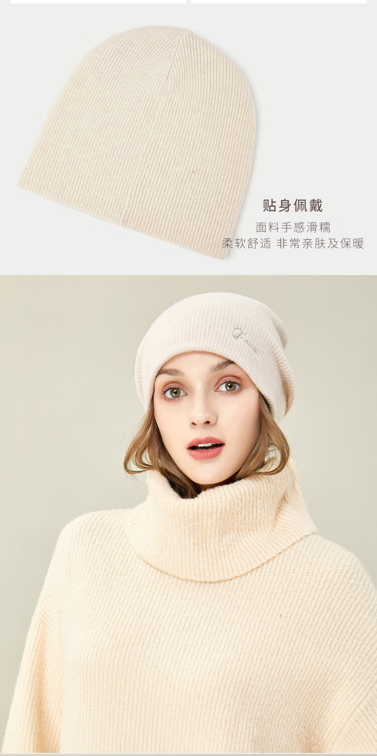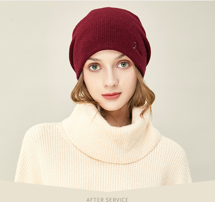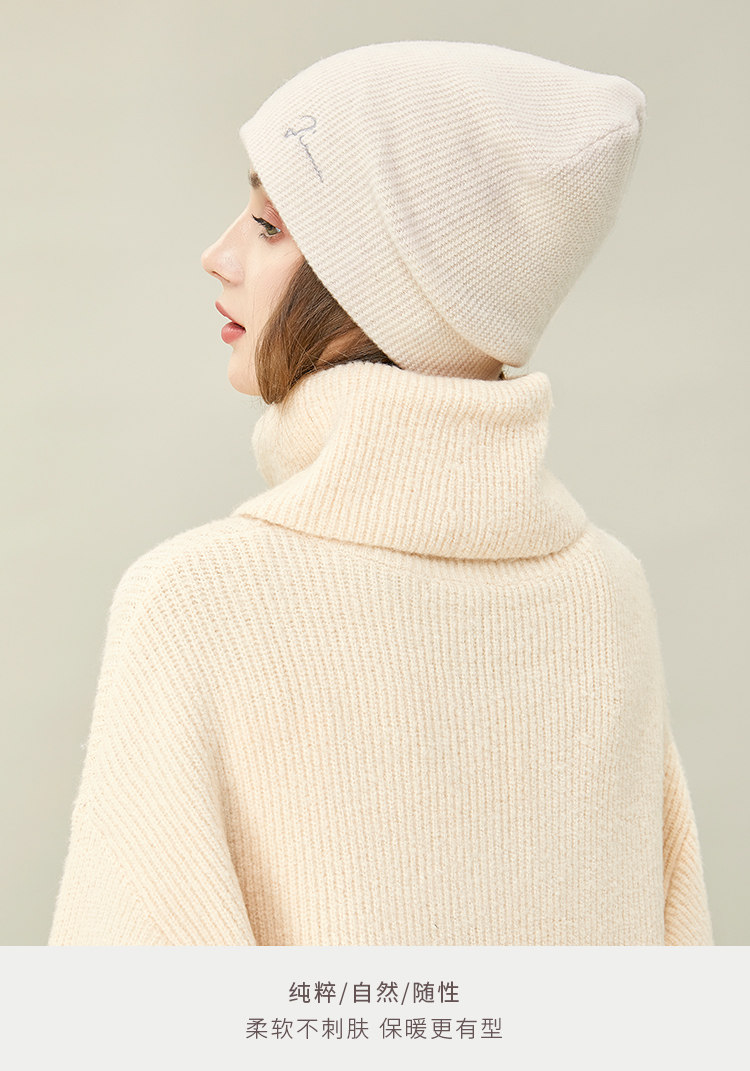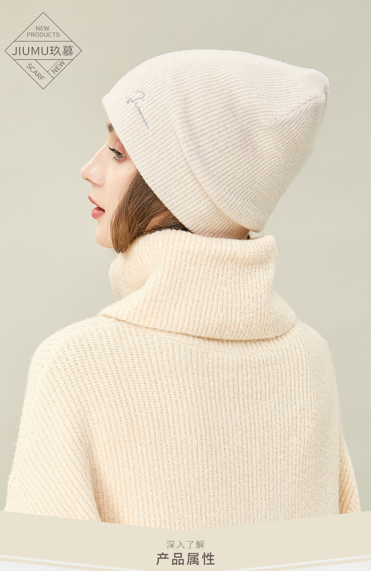 JIUMU Wool Hat Women's Autumn and Winter Pure Wool Korean Thick Warm Ear Protector Mother's Knitted Confinement Hat Light Brown One Size (Stretchable)
