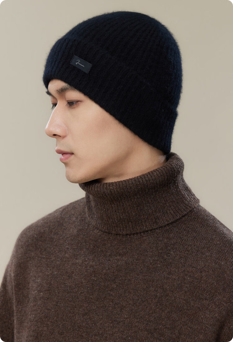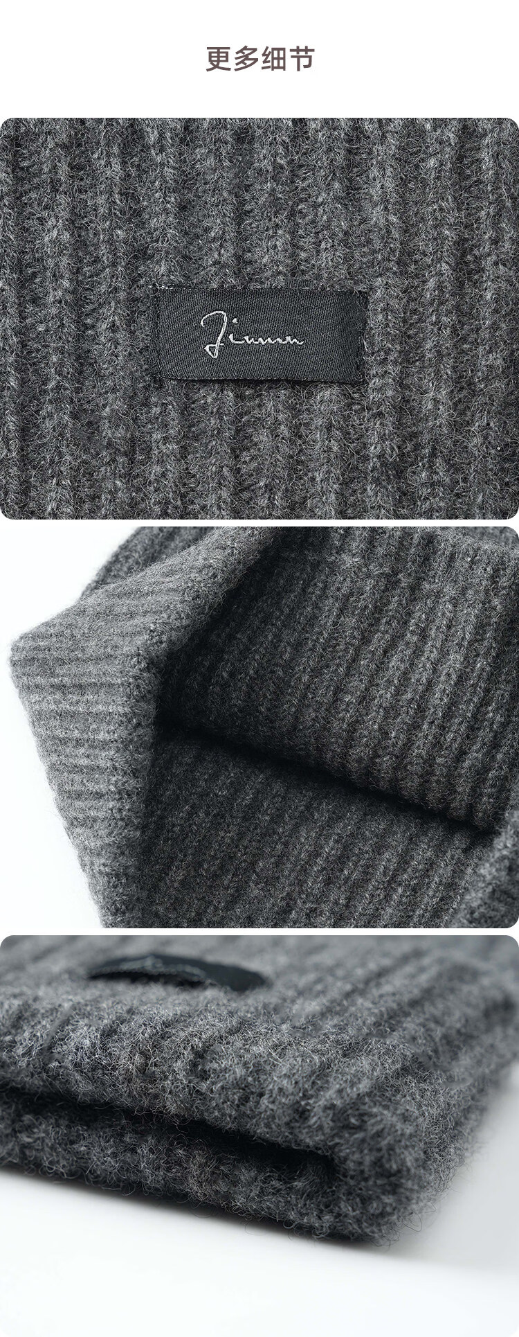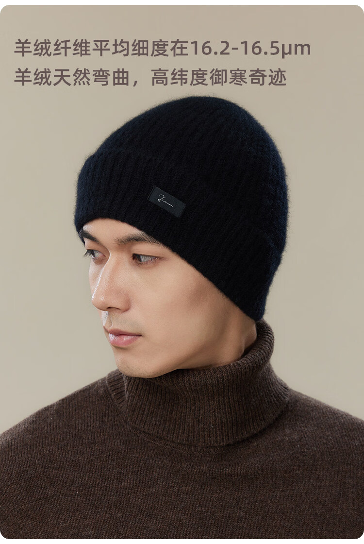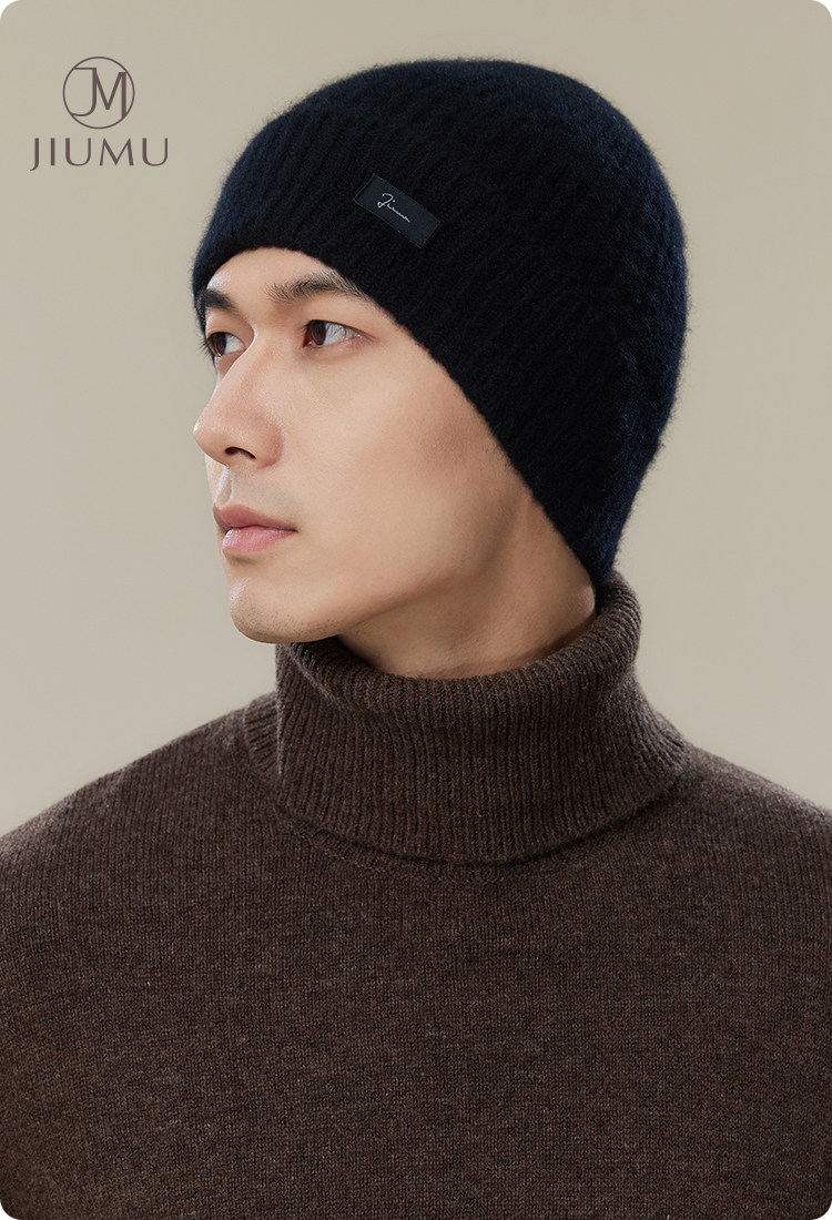 JIUMU Men's Pure Wool Hat Autumn and Winter Warm Baotou Cold Hat Outdoor Coldproof Knitted Hat Gift Box Jet Black One Size (56-60CM)
