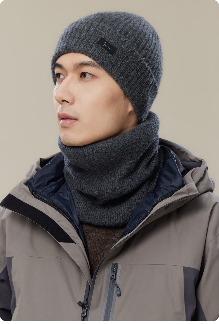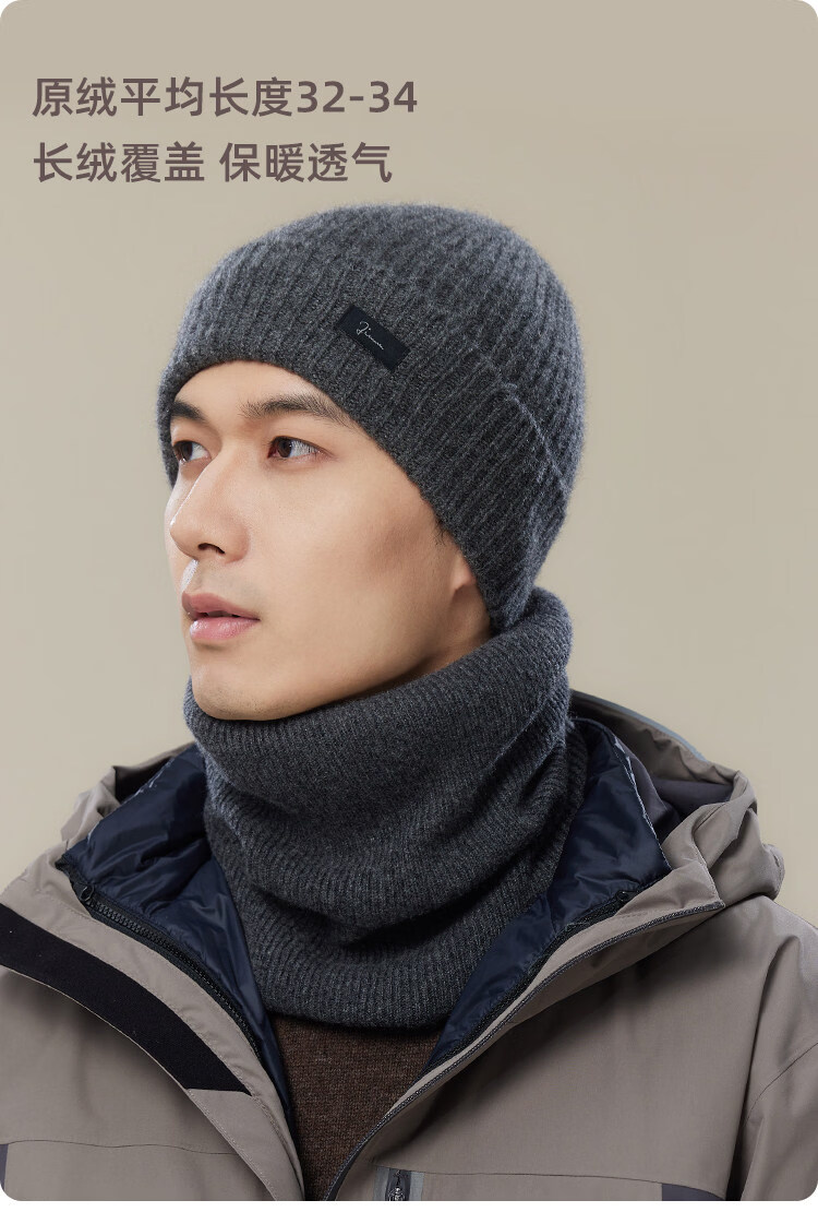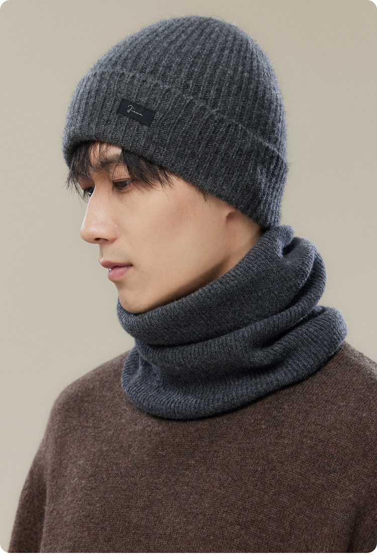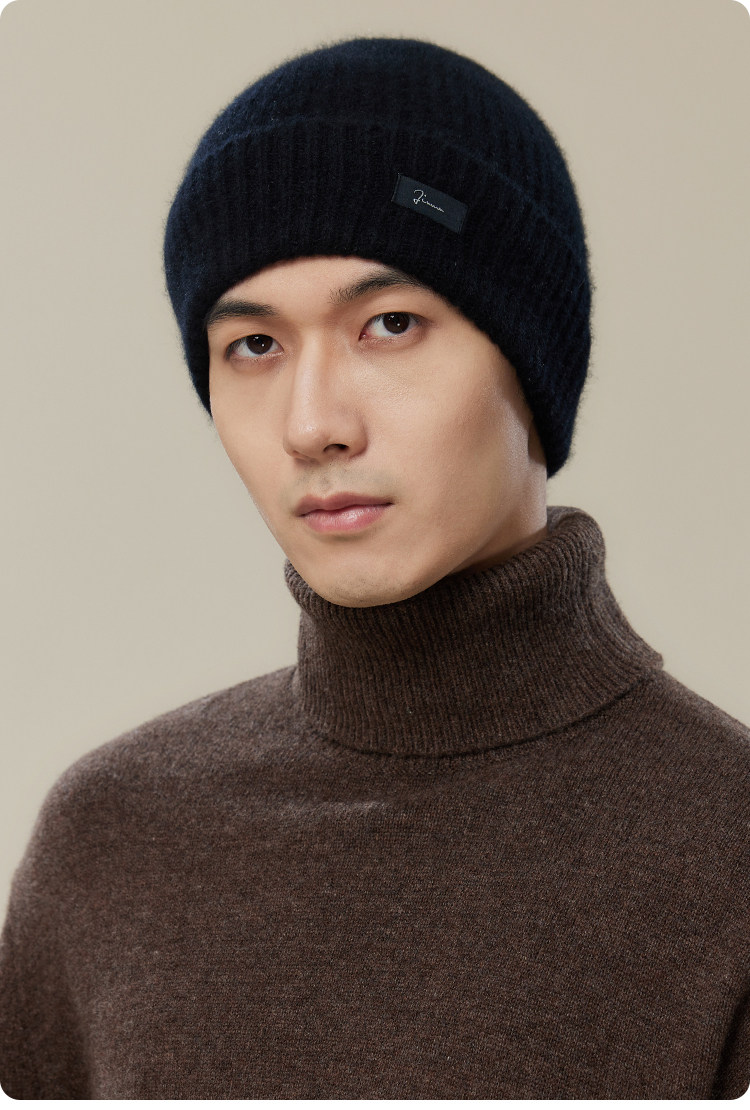 JIUMU Men's Pure Wool Hat Autumn and Winter Warm Baotou Cold Hat Outdoor Coldproof Knitted Hat Gift Box Jet Black One Size (56-60CM)