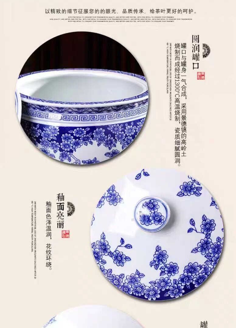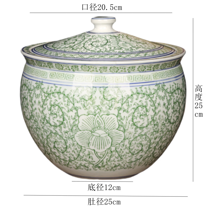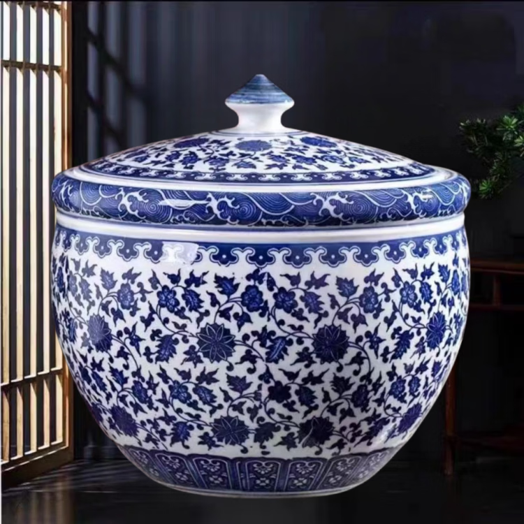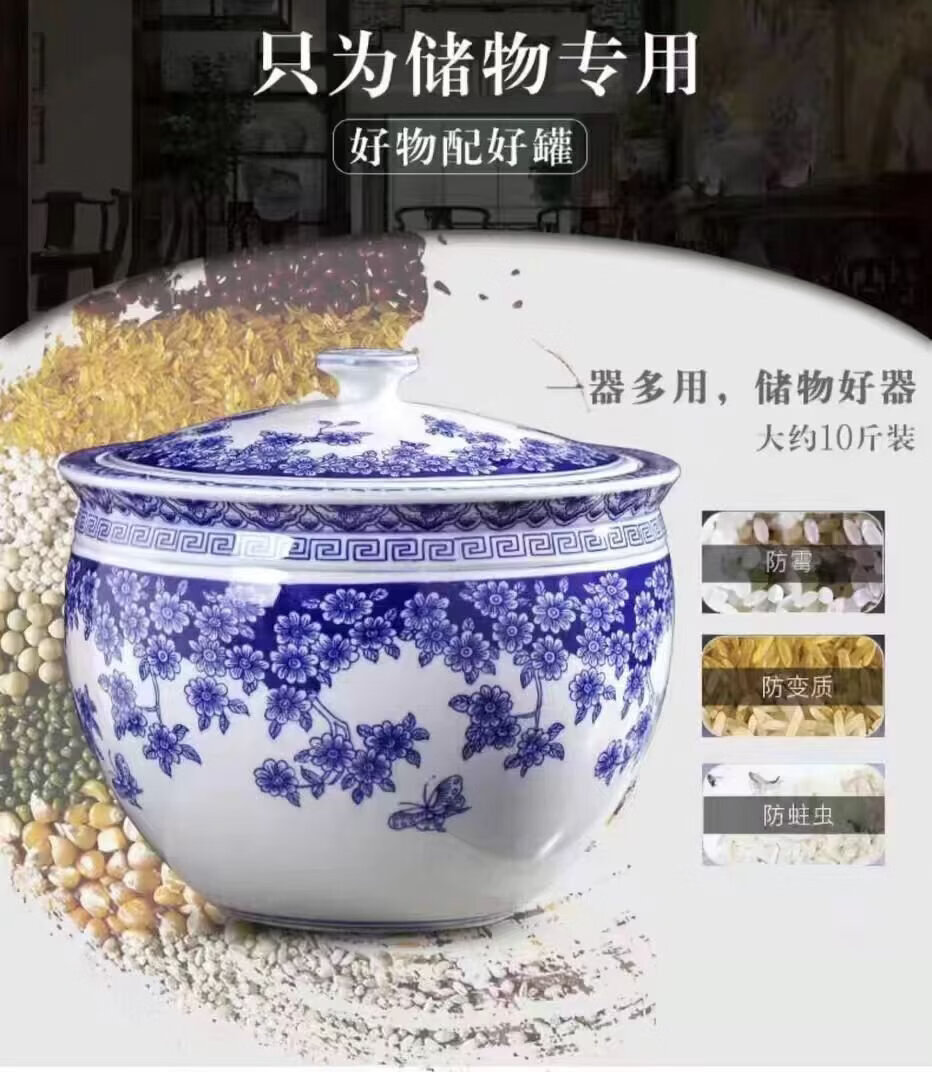 Jingyan blue and white ceramic storage jar rice wine lard salt noodles flour sealed moisture-proof grain jar with lid for pickling 18Jin Jin is equal to 0.5kg round twig lotus (height 25 width 33) comes with sealing ring