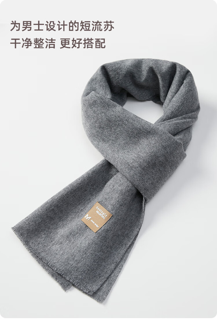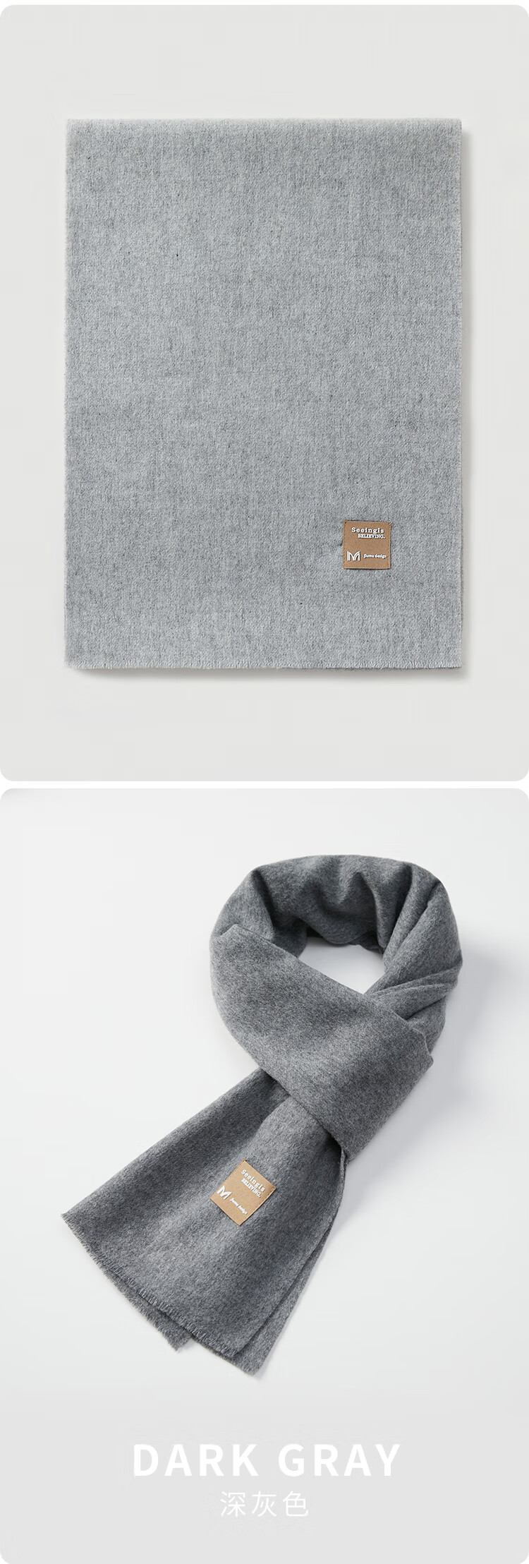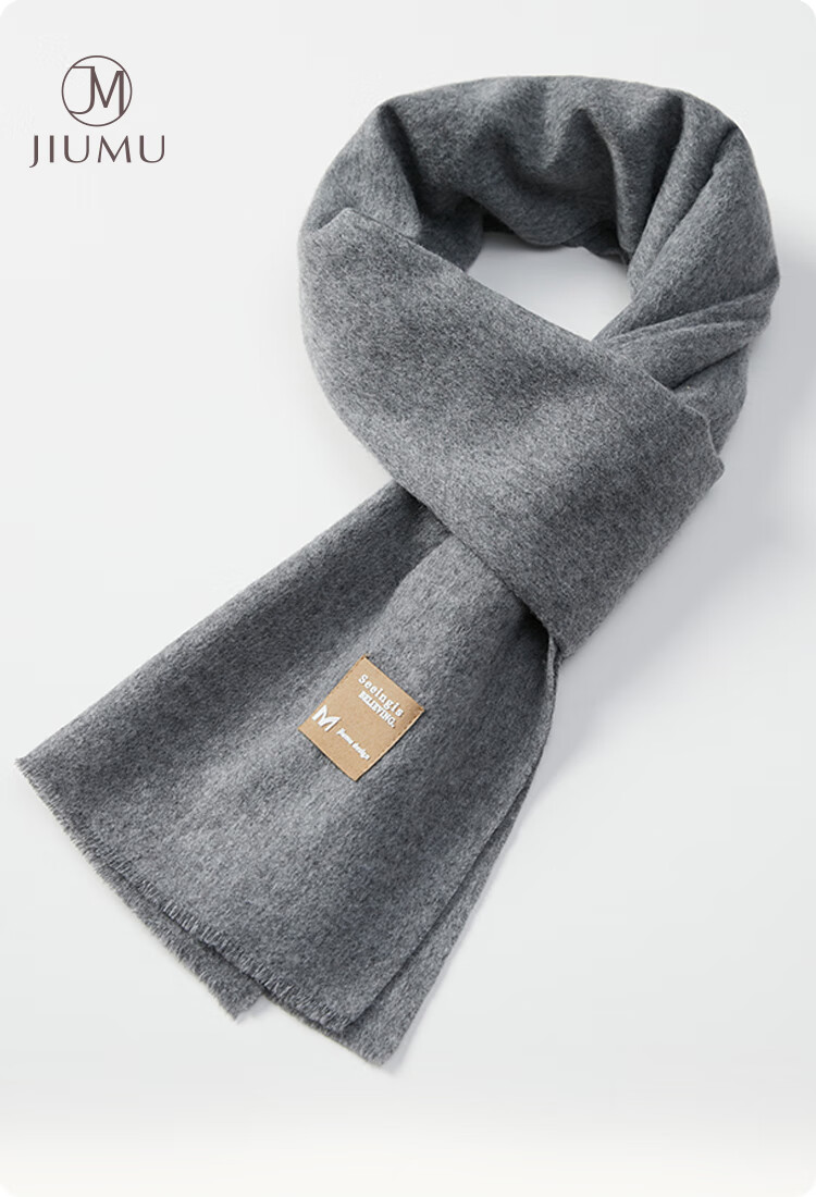 JIUMU pure wool scarf men's autumn and winter warm scarf for boys as a Christmas birthday gift for father, dark gray