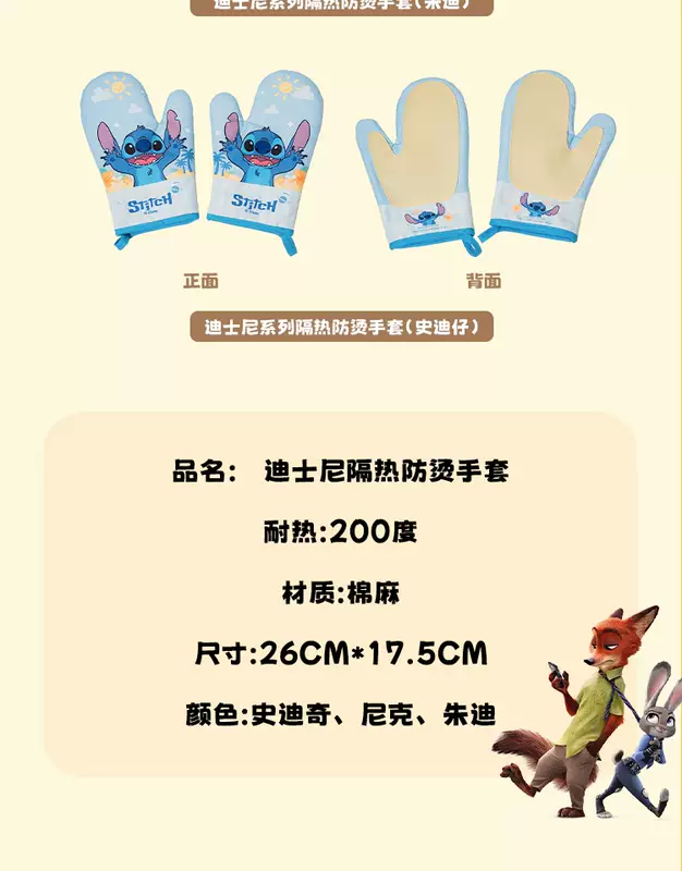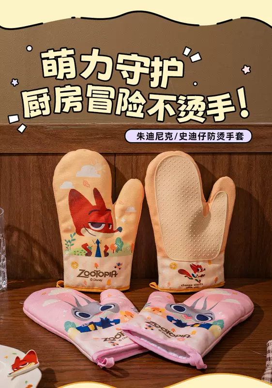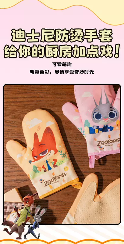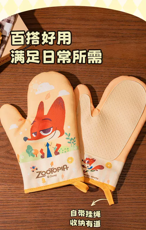 Yusenyiwang high temperature resistant Zootopia thickened kitchen hot gloves baking oven microwave oven Baifu heat insulation tools (Zootopia gift bag) Nick gloves a pair