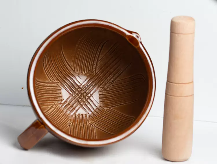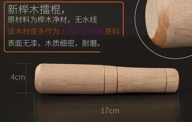 Yusen Yi Lei old-fashioned Hunan restaurant bowl with medium garlic pound ceramic pepper preserved egg grinder household wooden mallet set of 15cm large hammer bowl - high-quality beech wood hammer