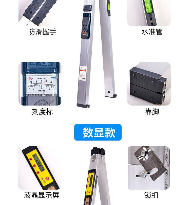 2-meter folding level ruler, high-precision two-meter wall engineering inspection ruler, aluminum alloy home inspection tool set, 14-piece set, 12 pieces + digital display ruler + diagonal ruler