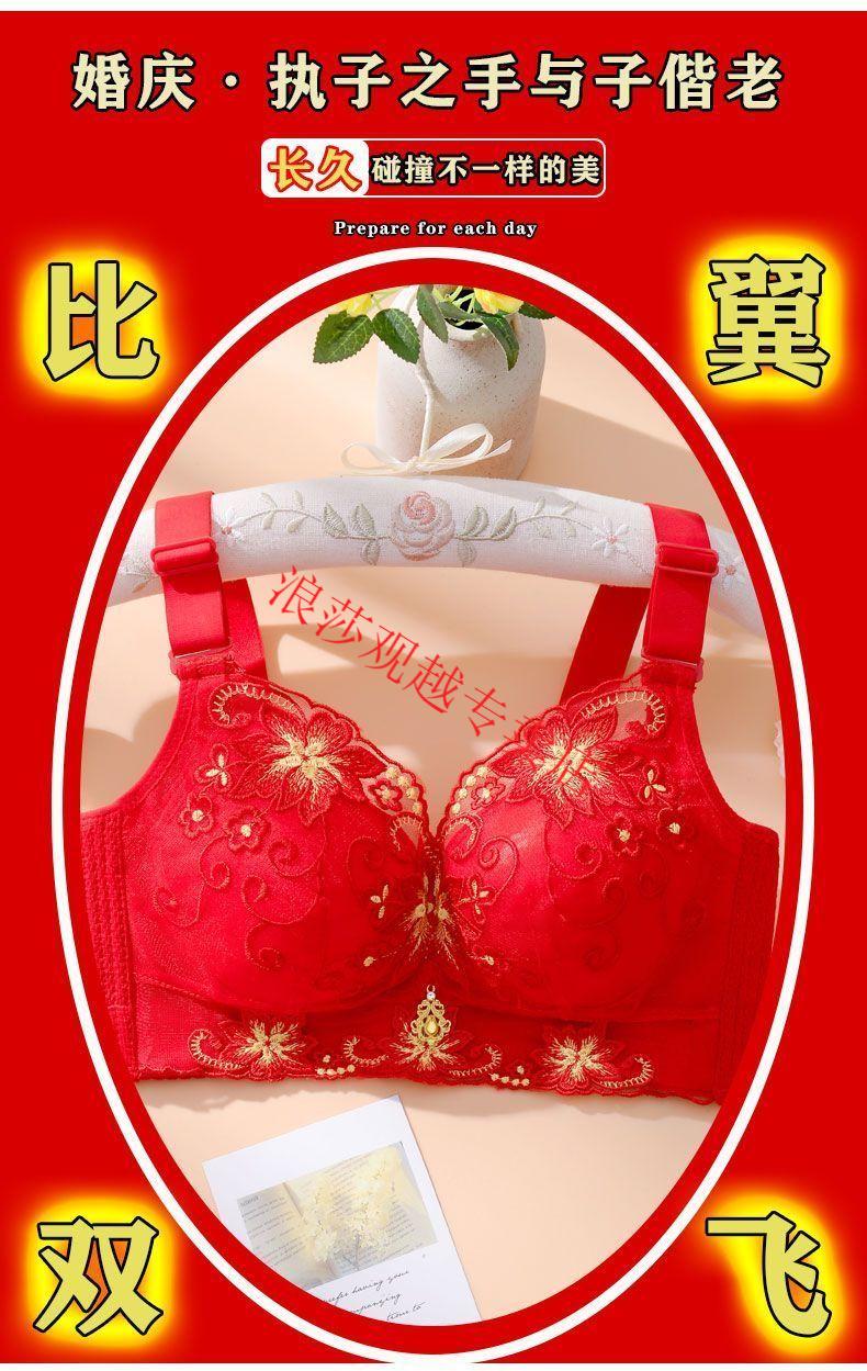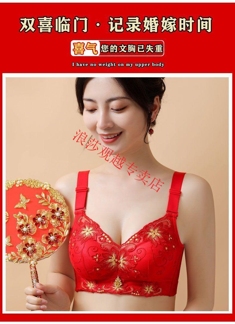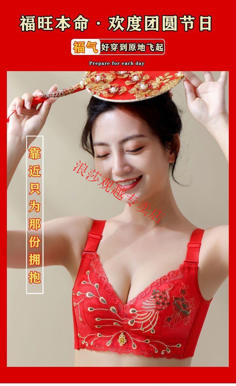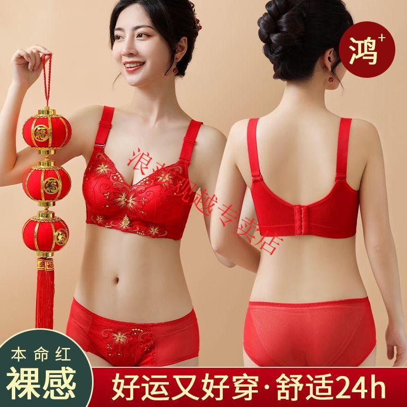LangSha (LangSha) red underwear for women in the year of birth, bride wedding push-up sexy lace non-wired adjustable bra, fly together 1 set 75A 34B cup recommended 96-110Jin Jin equals 0.5 kg