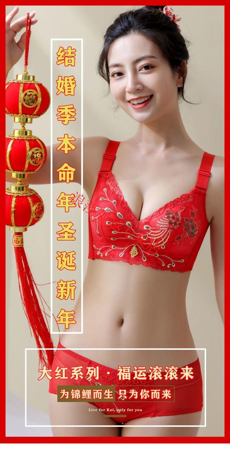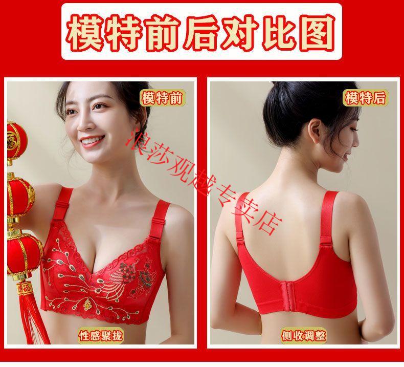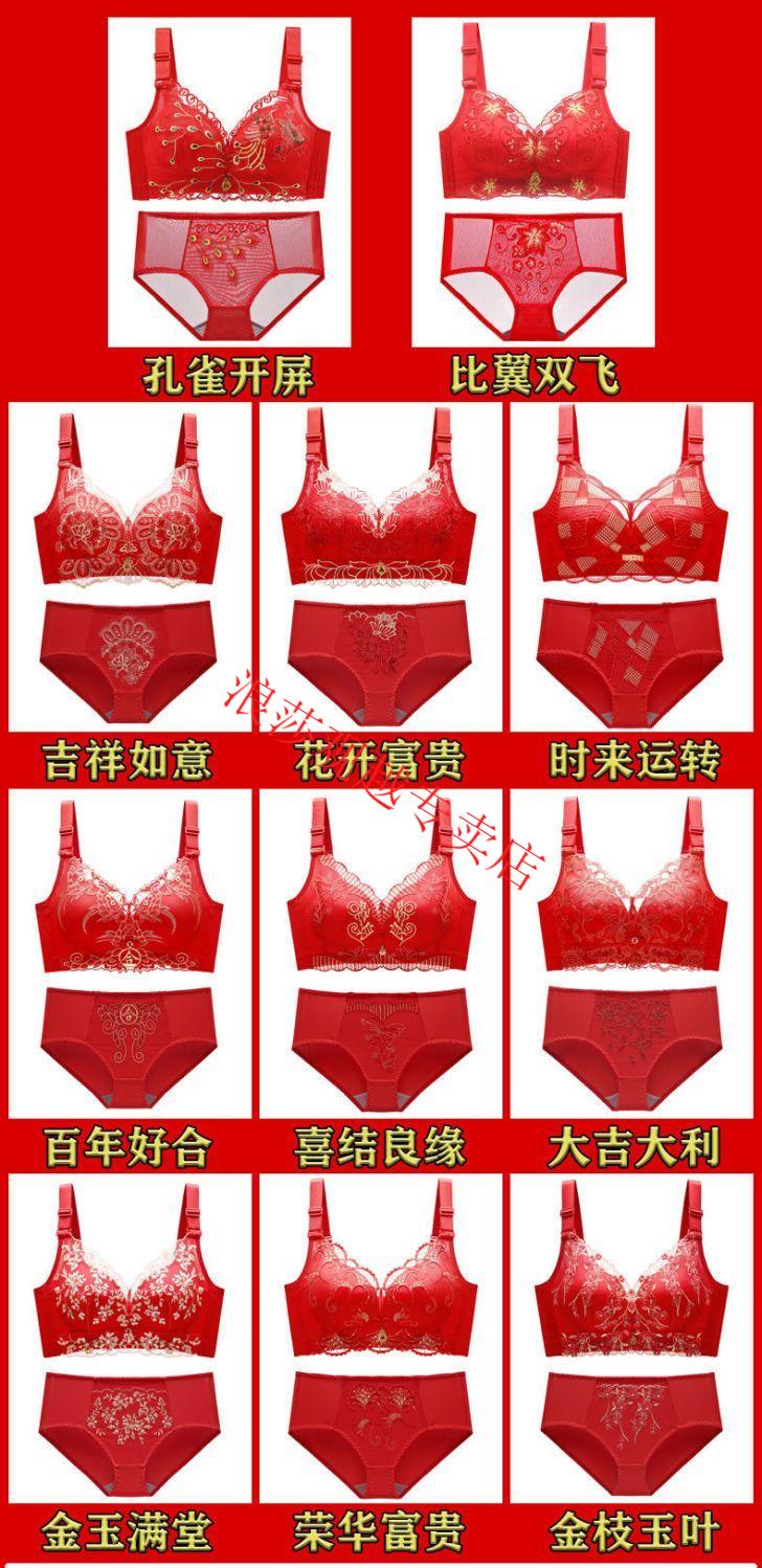 LangSha (LangSha) red underwear for women in the year of birth, bride wedding push-up sexy lace non-wired adjustable bra, fly together 1 set 75A 34B cup recommended 96-110Jin Jin equals 0.5 kg