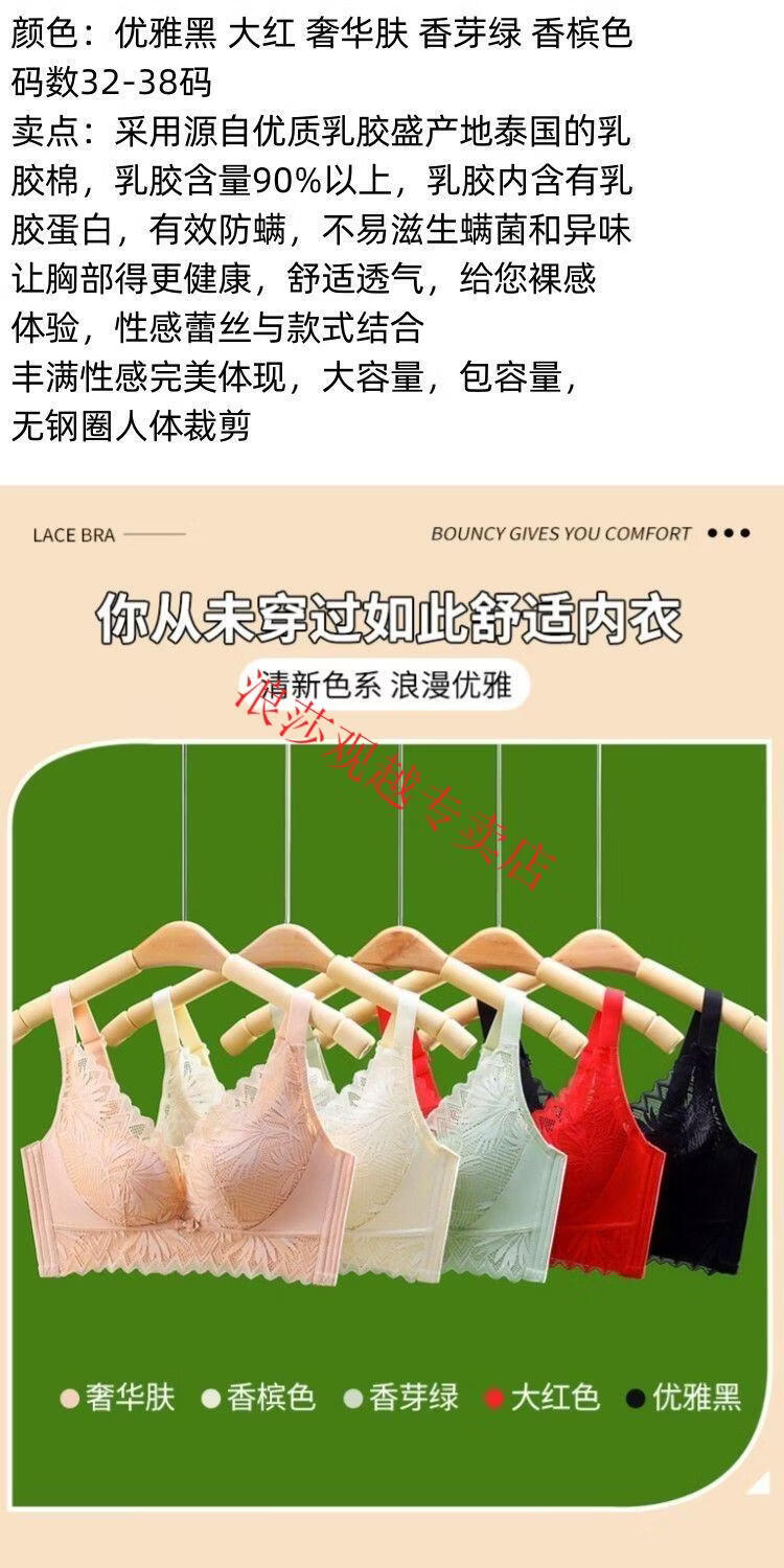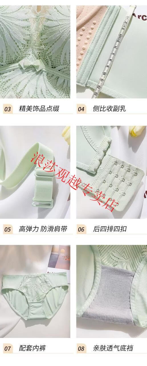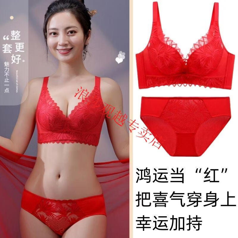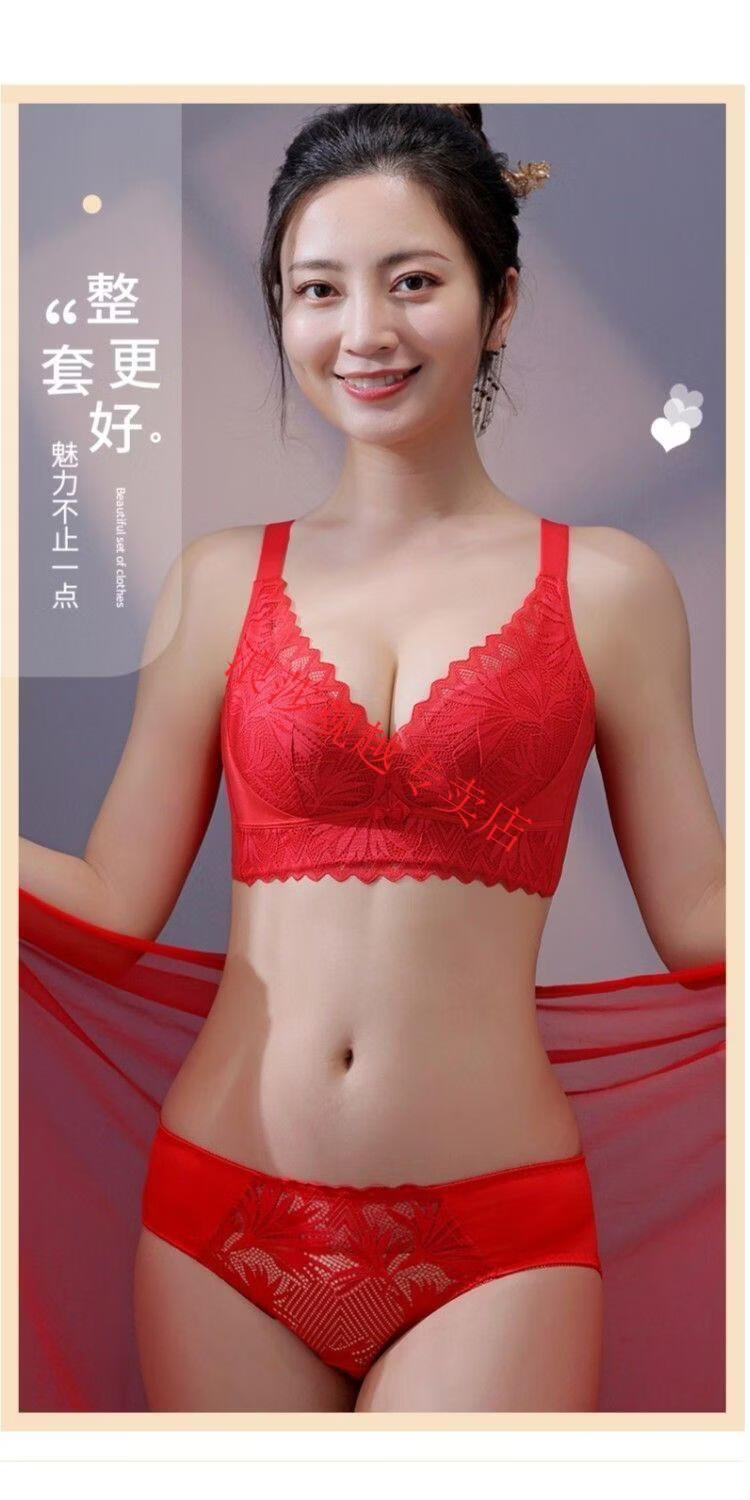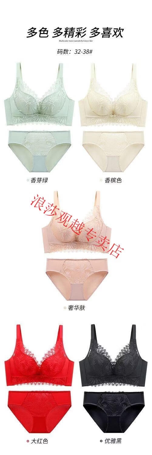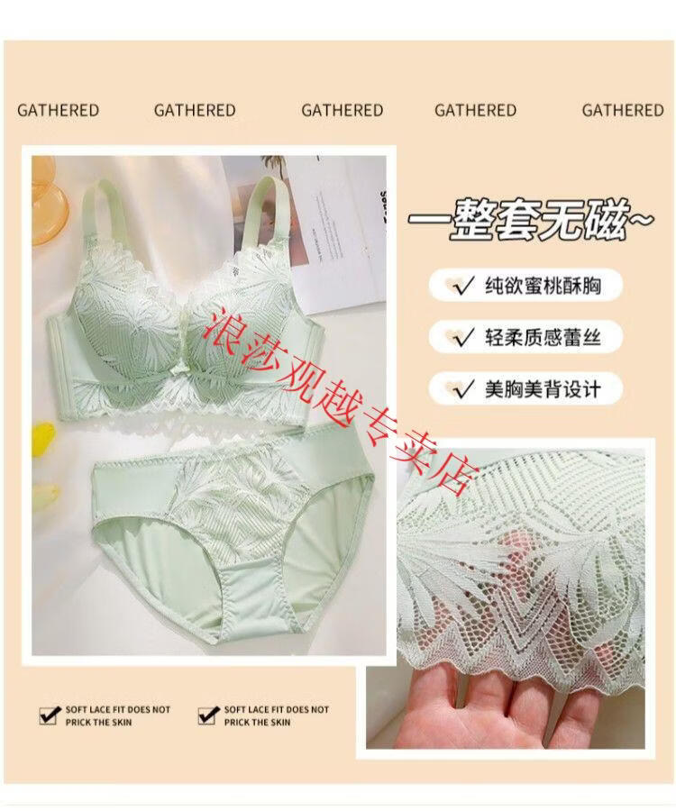 LangSha (LangSha) bright red underwear set wedding new style beautiful back small chest push-up sexy adjustable bra latex cotton medium thick fragrant green set 80B 36