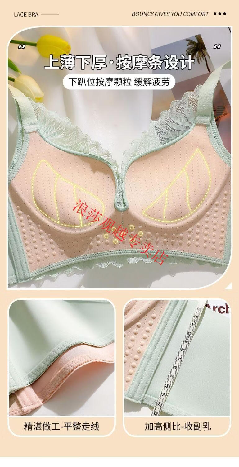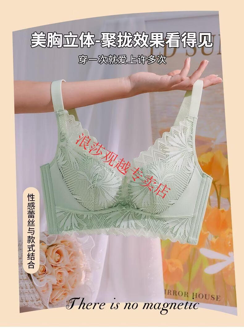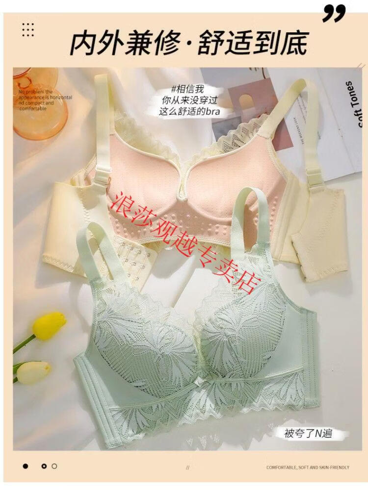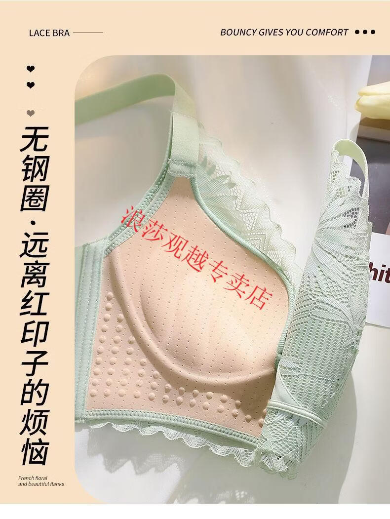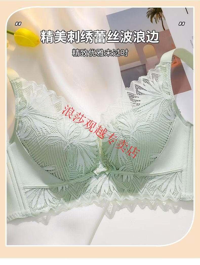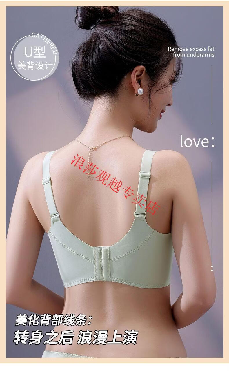 LangSha (LangSha) bright red underwear set wedding new style beautiful back small chest push-up sexy adjustable bra latex cotton medium thick fragrant green set 80B 36