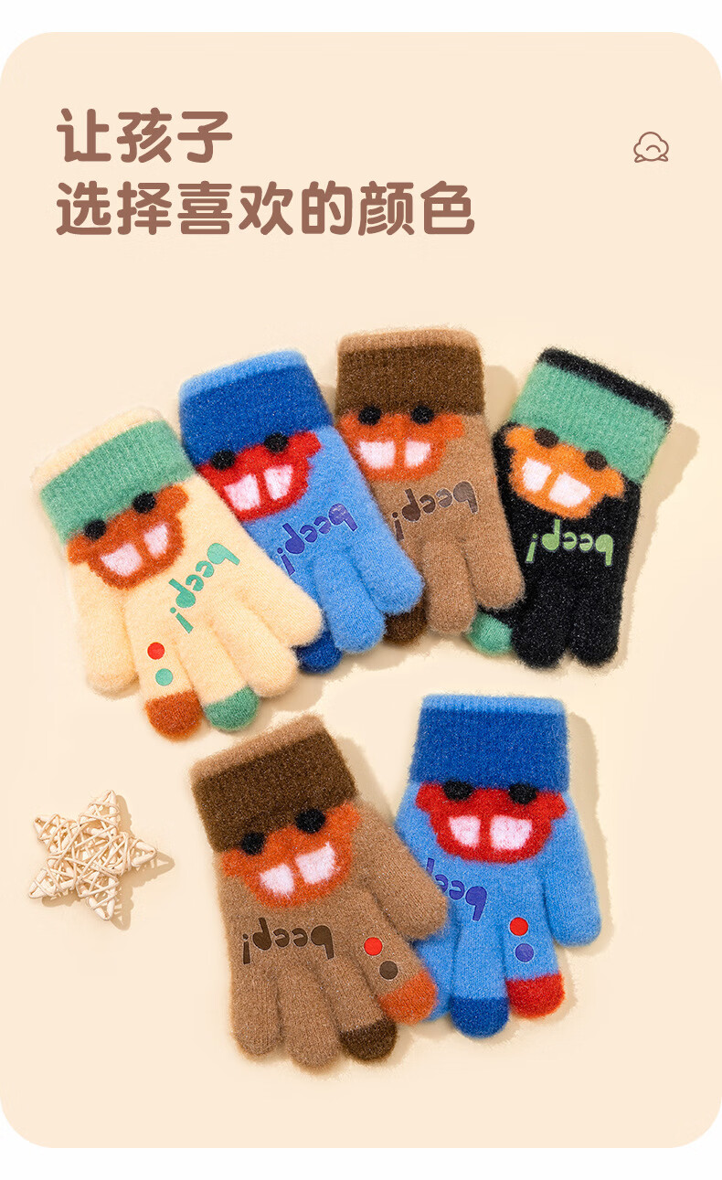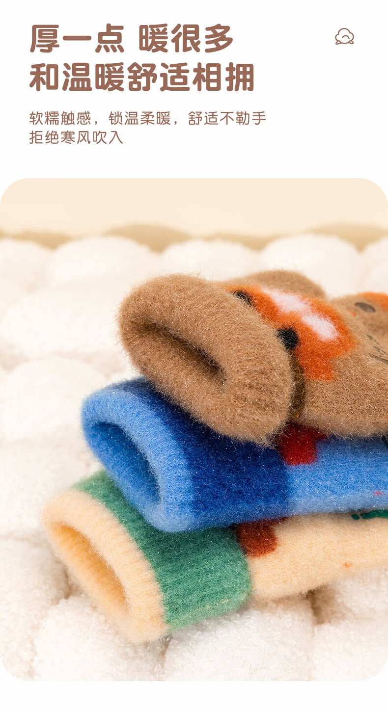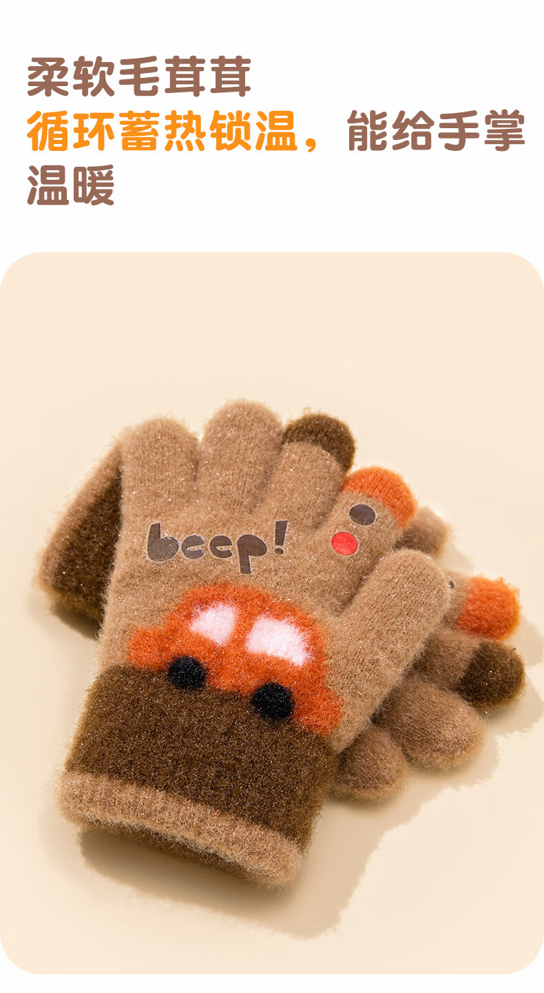 Wooden house children's gloves 3-6 years old winter boys and girls five-pointer knitted thickened outdoor sports cold protection and warmth A246 3-5 years old Brown coffee Select according to the age option