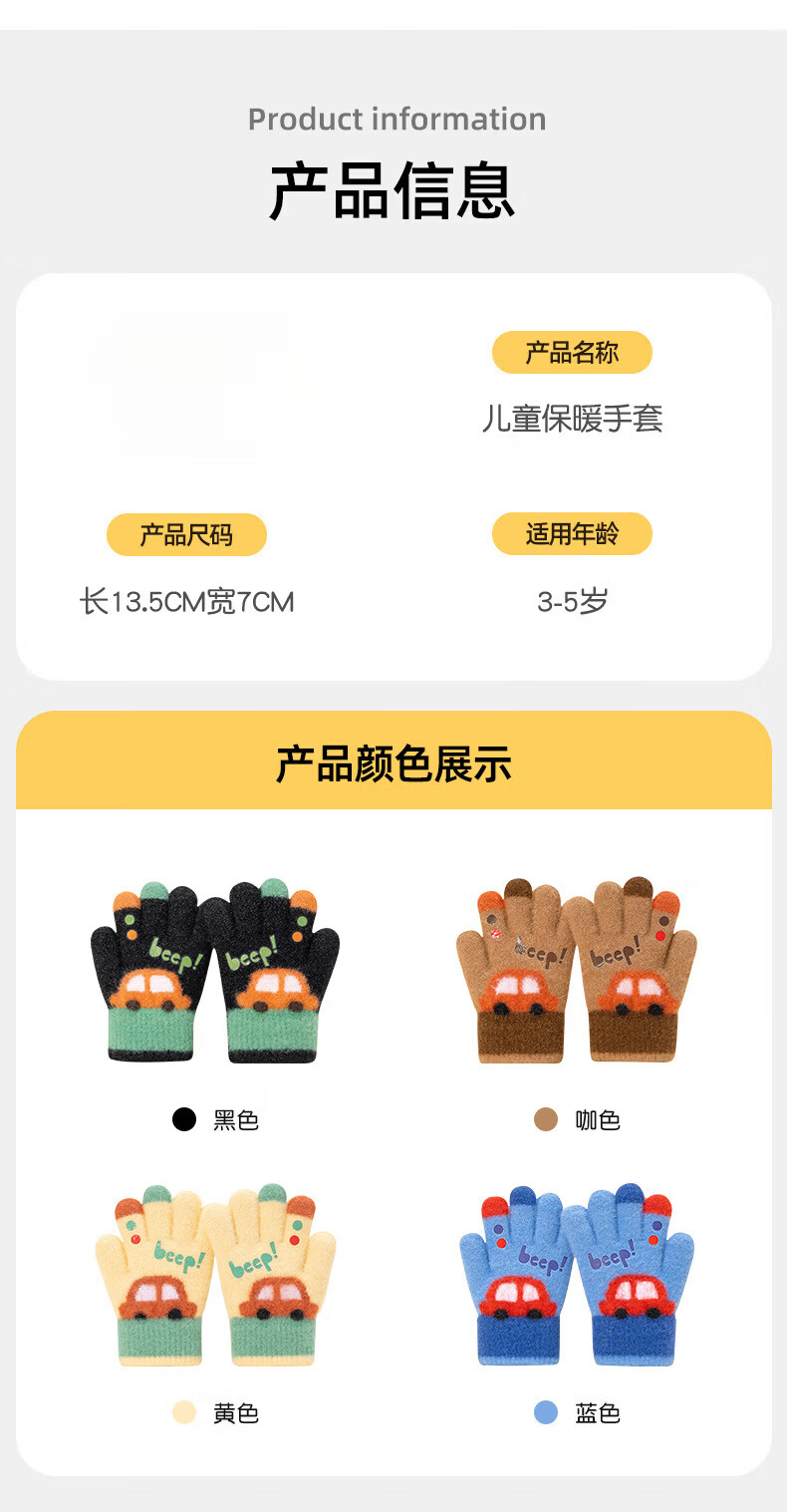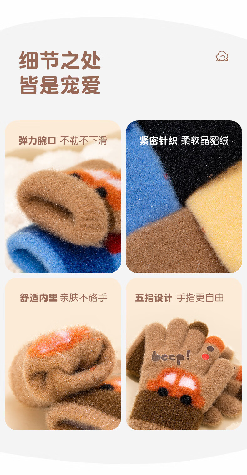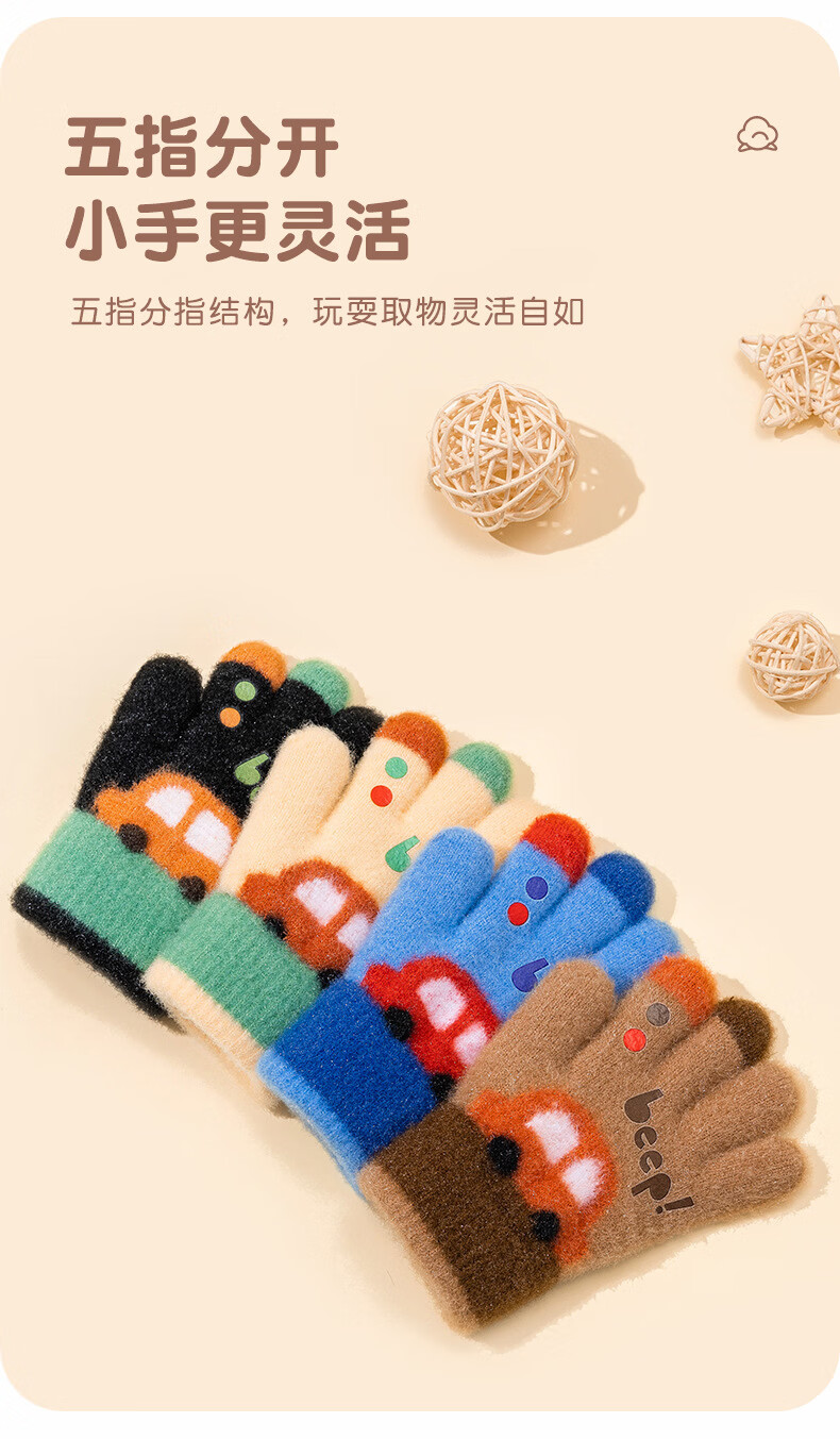 Wooden house children's gloves 3-6 years old winter boys and girls five-pointer knitted thickened outdoor sports cold protection and warmth A246 3-5 years old Brown coffee Select according to the age option