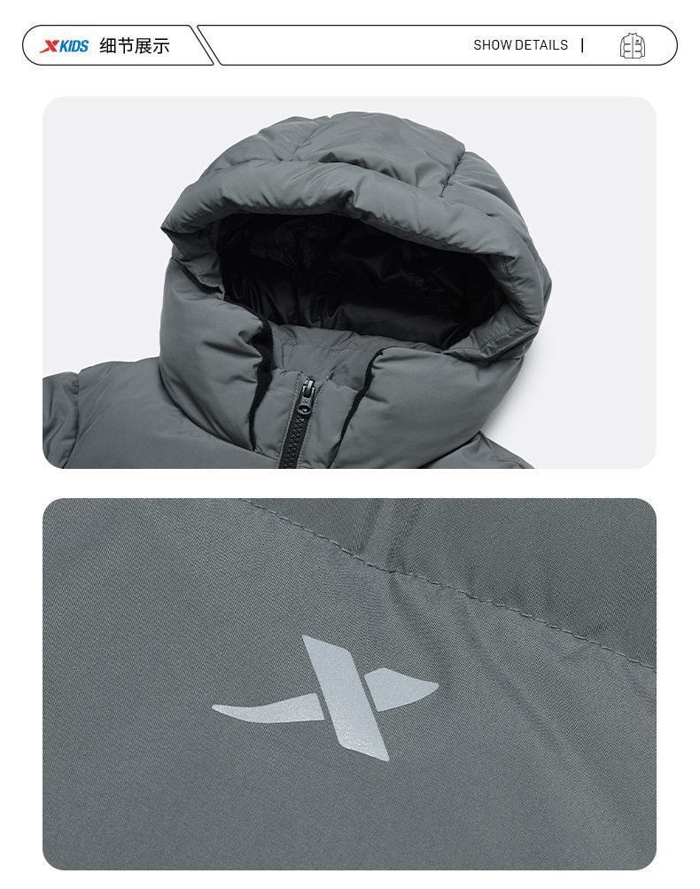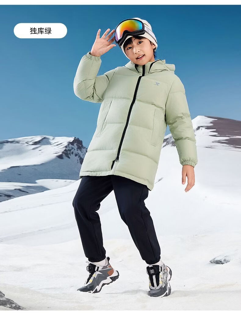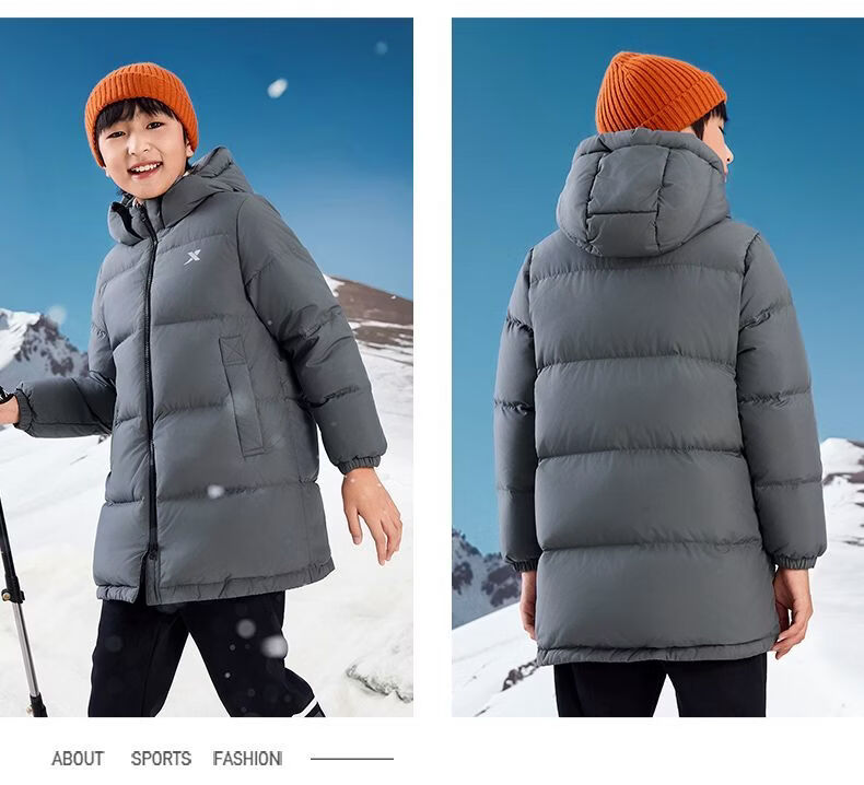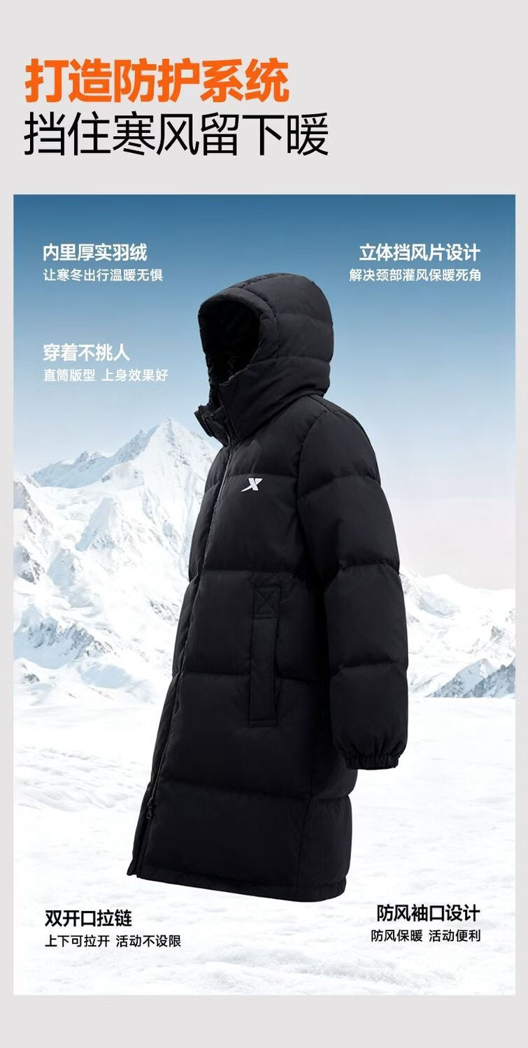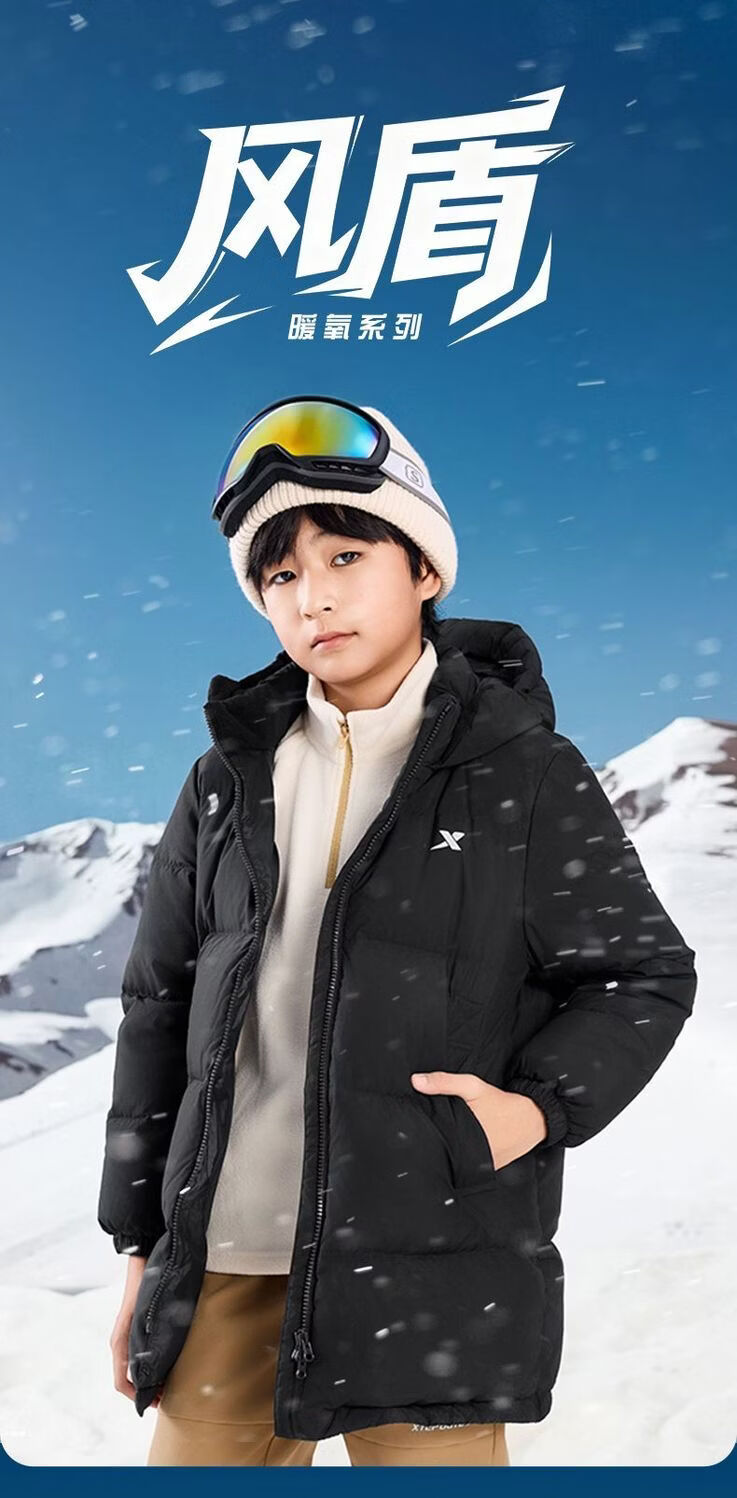 XTEP (XTEP) XTEP Children's Clothing Boys' Mid-Length Down Jacket Three-proof Warmth 2025 Winter New Medium and Large Children's Hooded Windproof Jacket Danqing Black 110