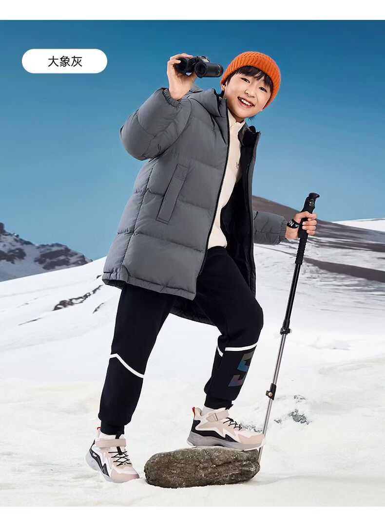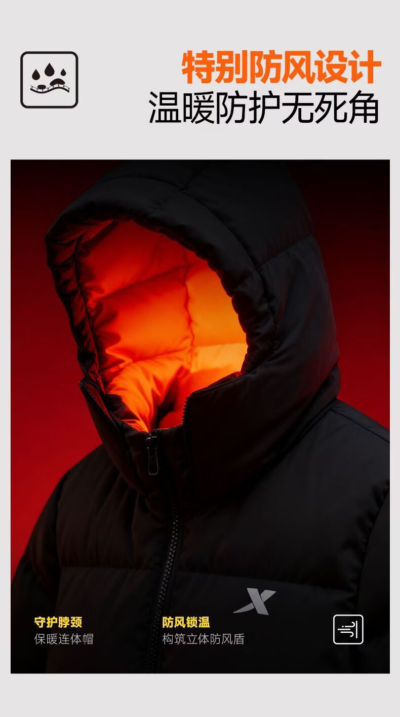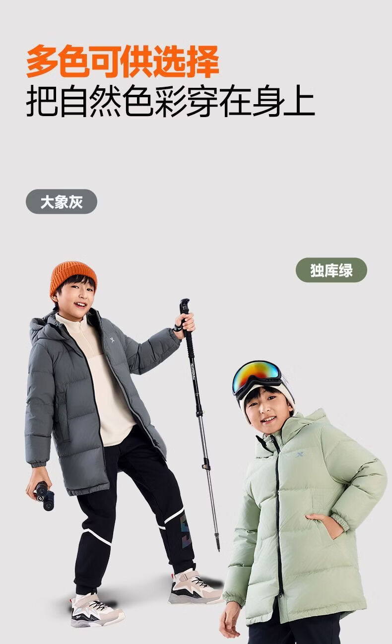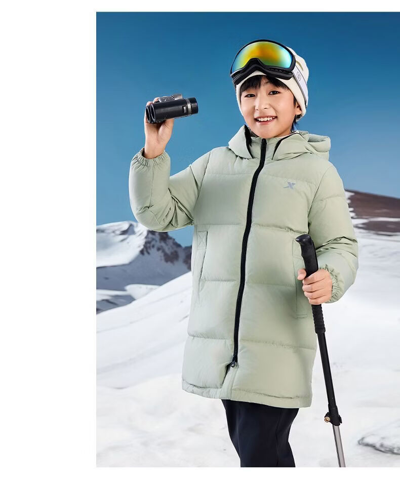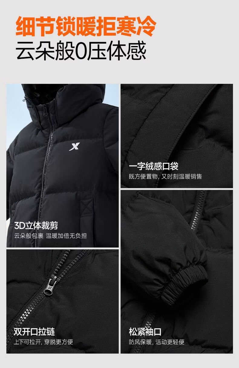 XTEP (XTEP) XTEP Children's Clothing Boys' Mid-Length Down Jacket Three-proof Warmth 2025 Winter New Medium and Large Children's Hooded Windproof Jacket Danqing Black 110