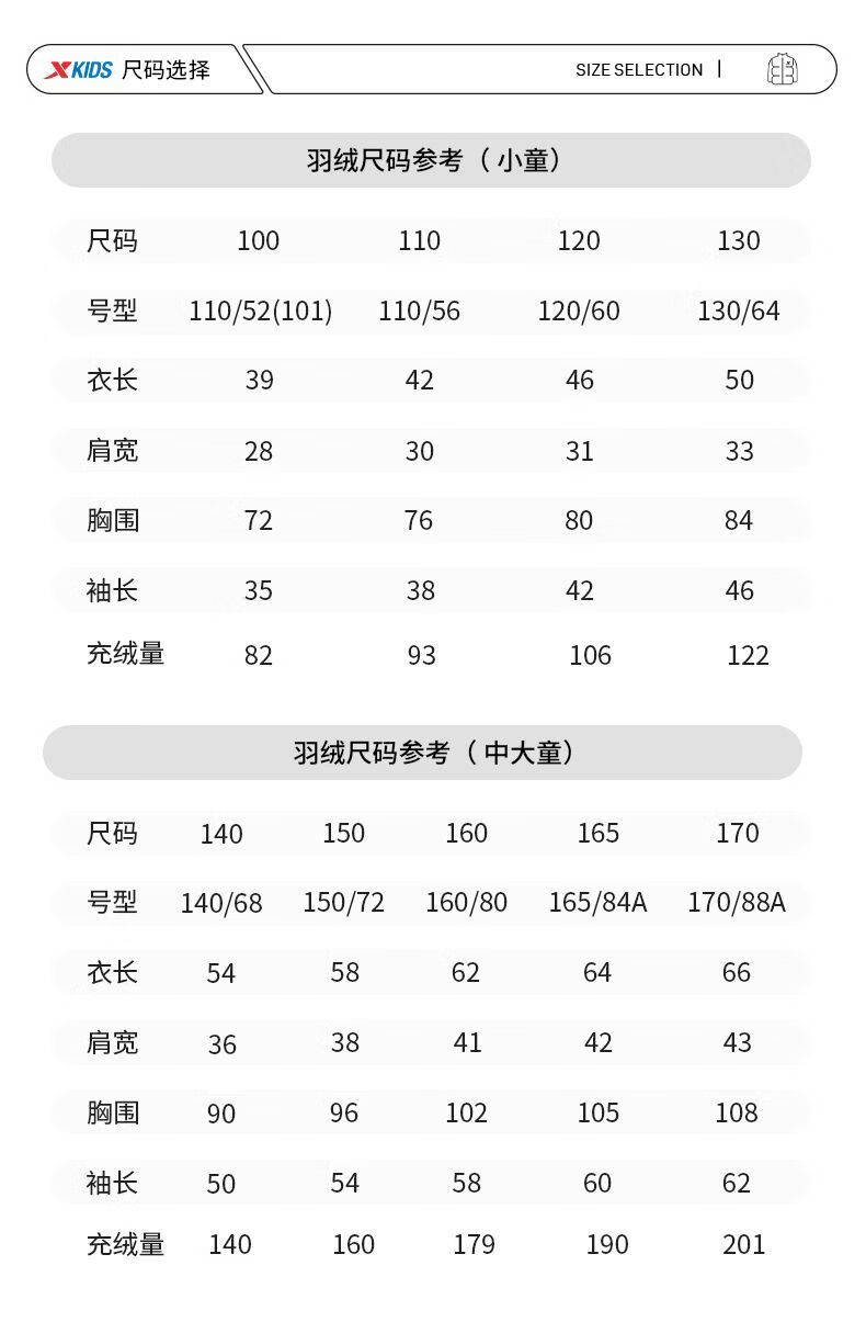China (cm) 165 / 88-90 170 / 96-98 175 / 108-110 180 / 118-122 185 / 126-130
