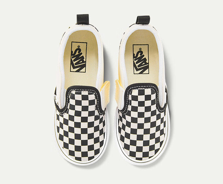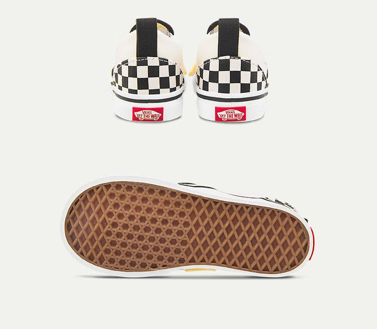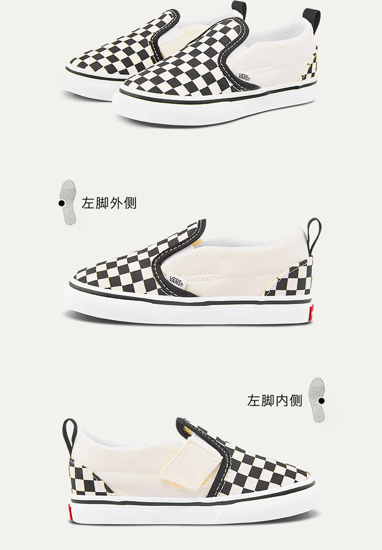 VANS children's shoes Slip-On V checkerboard Velcro comfortable one-leg children's canvas shoes black and white checkerboard 26.5 measured inner length 17cm