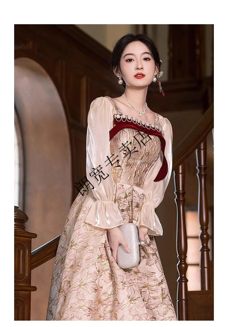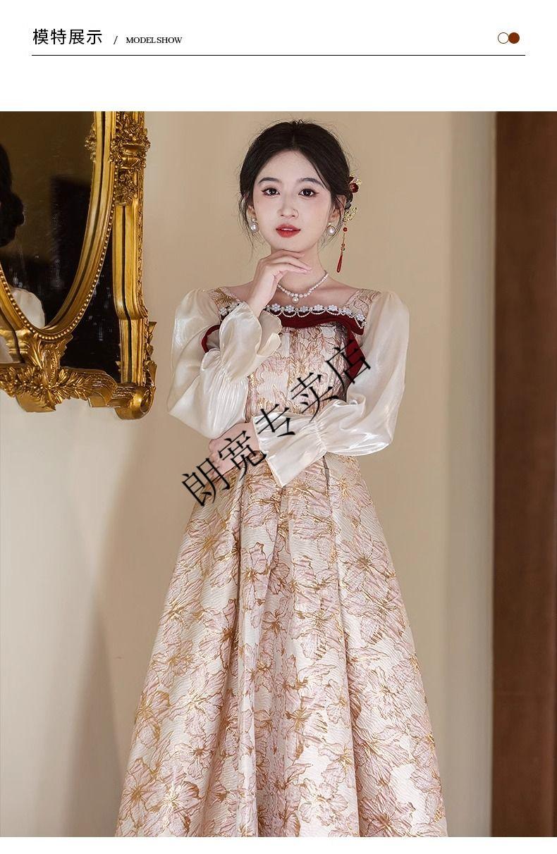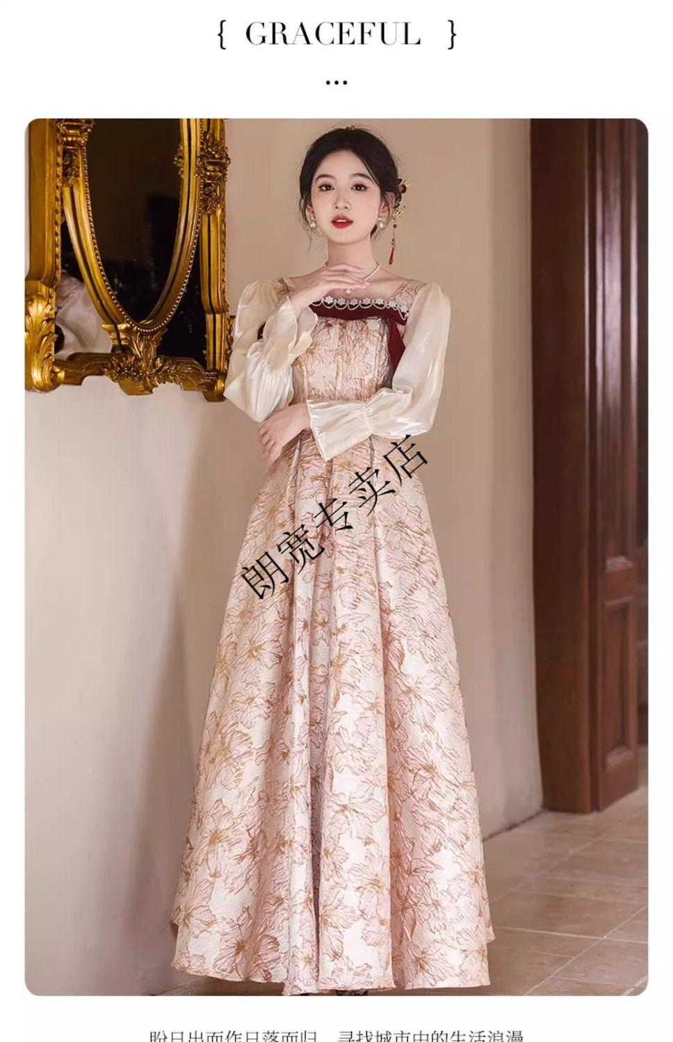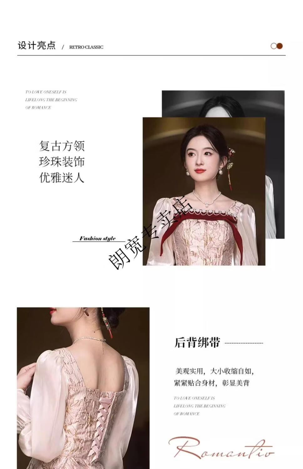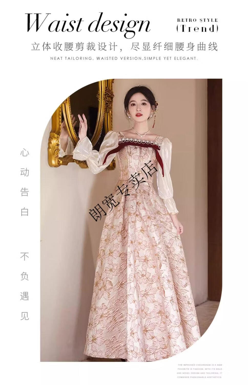 Pierre Cardin Engagement Dress Women 2025 New Style Spring Long-Sleeved Toast Wear Bridal Fashion Slim Dress Champagne 2XL