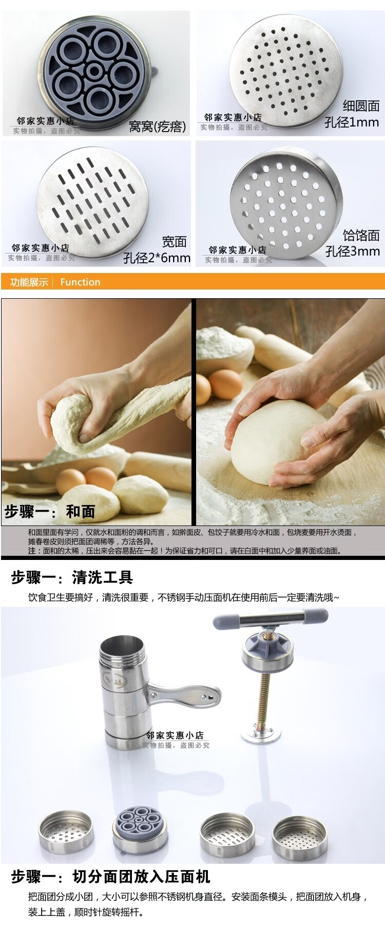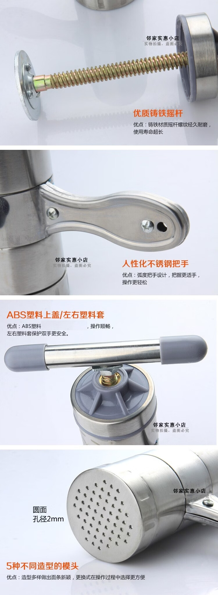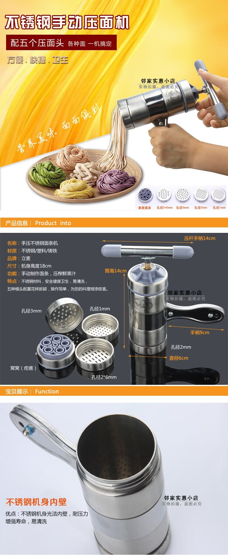 Yonghuan Manual Stainless Steel Noodle Machine Oatmeal Noodle Wowo Luohe Fishing Bed Household Small Noodle Machine Stainless Steel Noodle Machine Two Molds