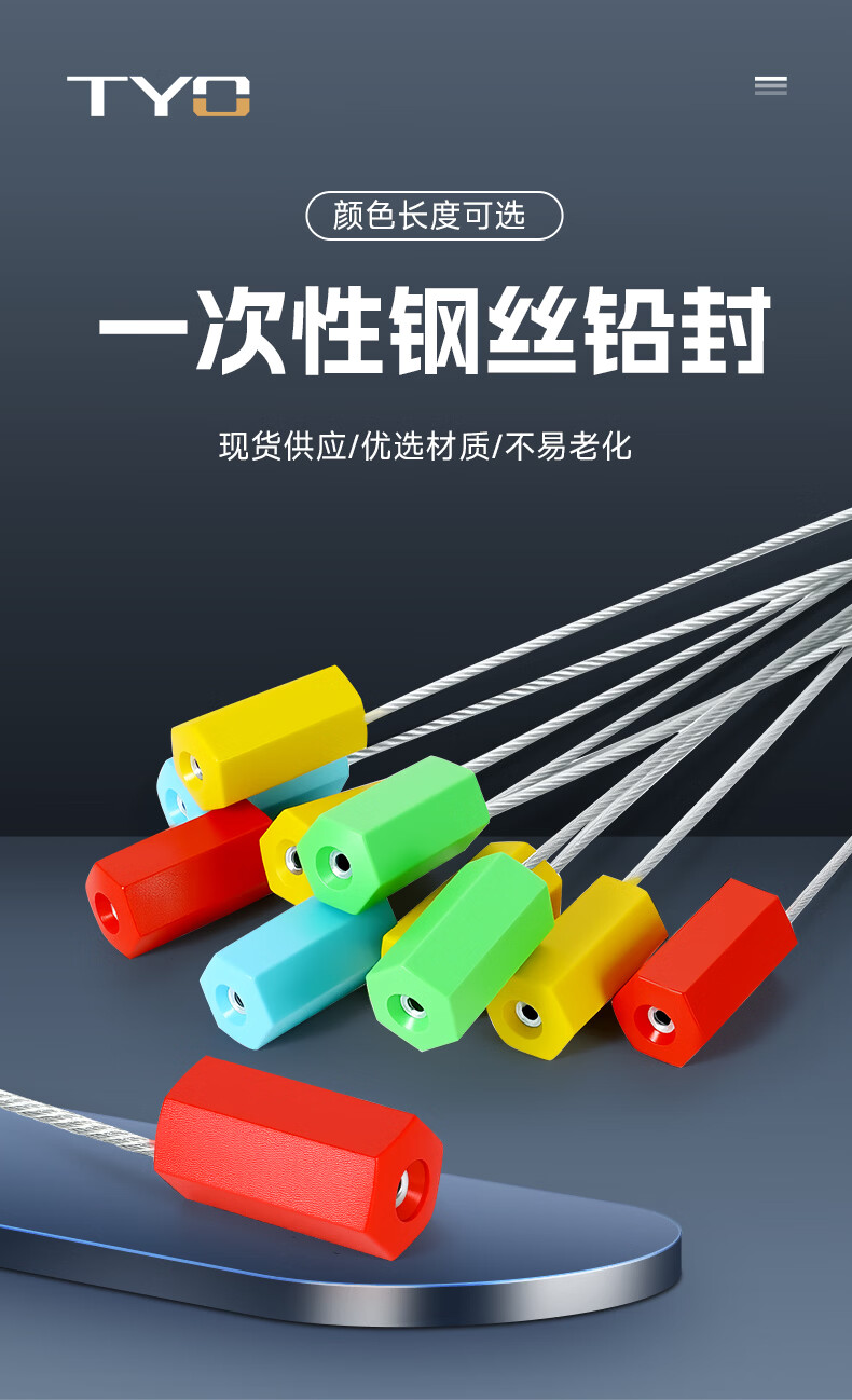 TYO steel wire seal, universal steel wire seal, disposable, container truck seal, tamper-proof and anti-theft, printable seal (randomly coded*yellow 25CM*100 strips/pack)