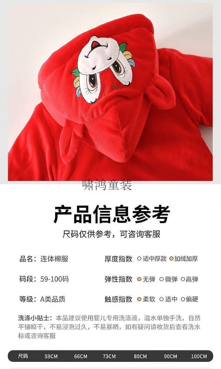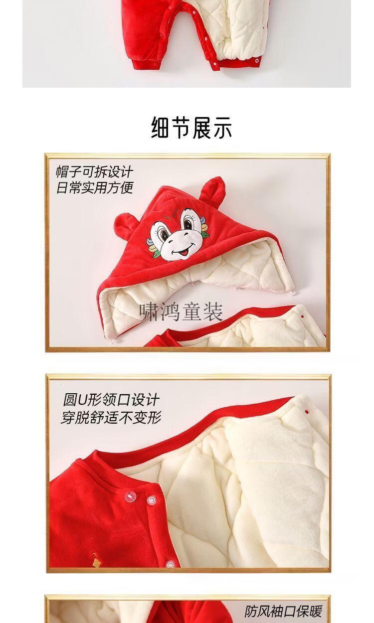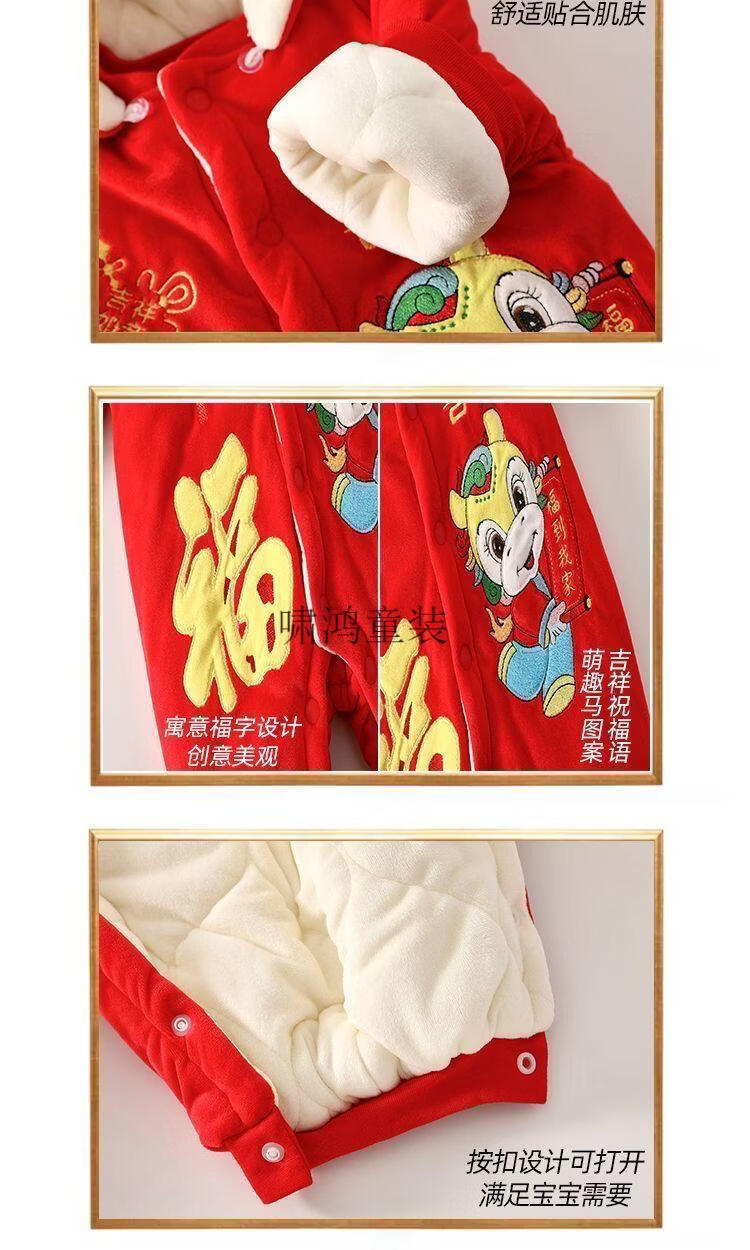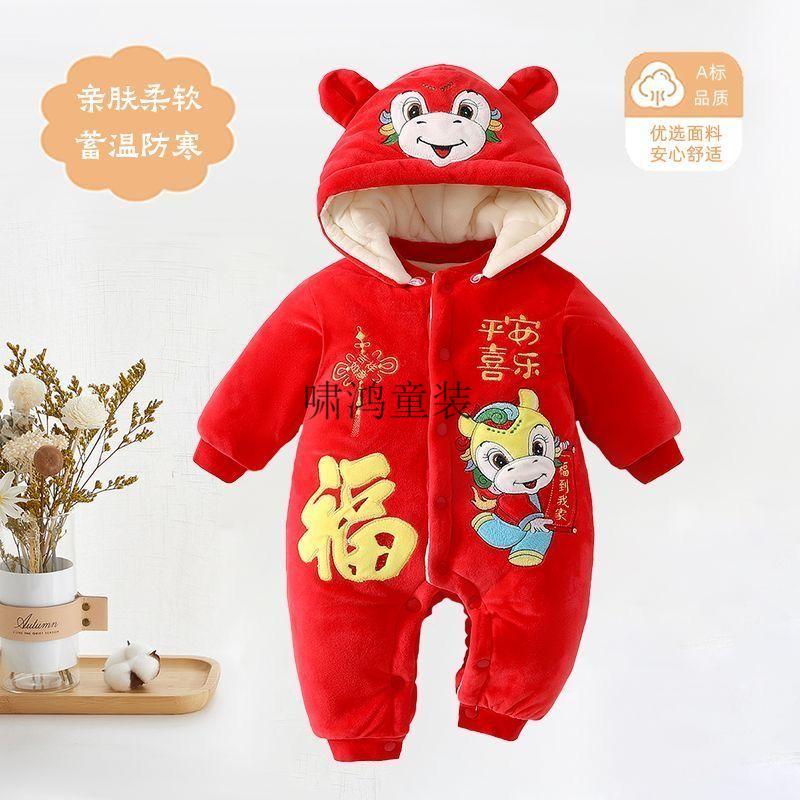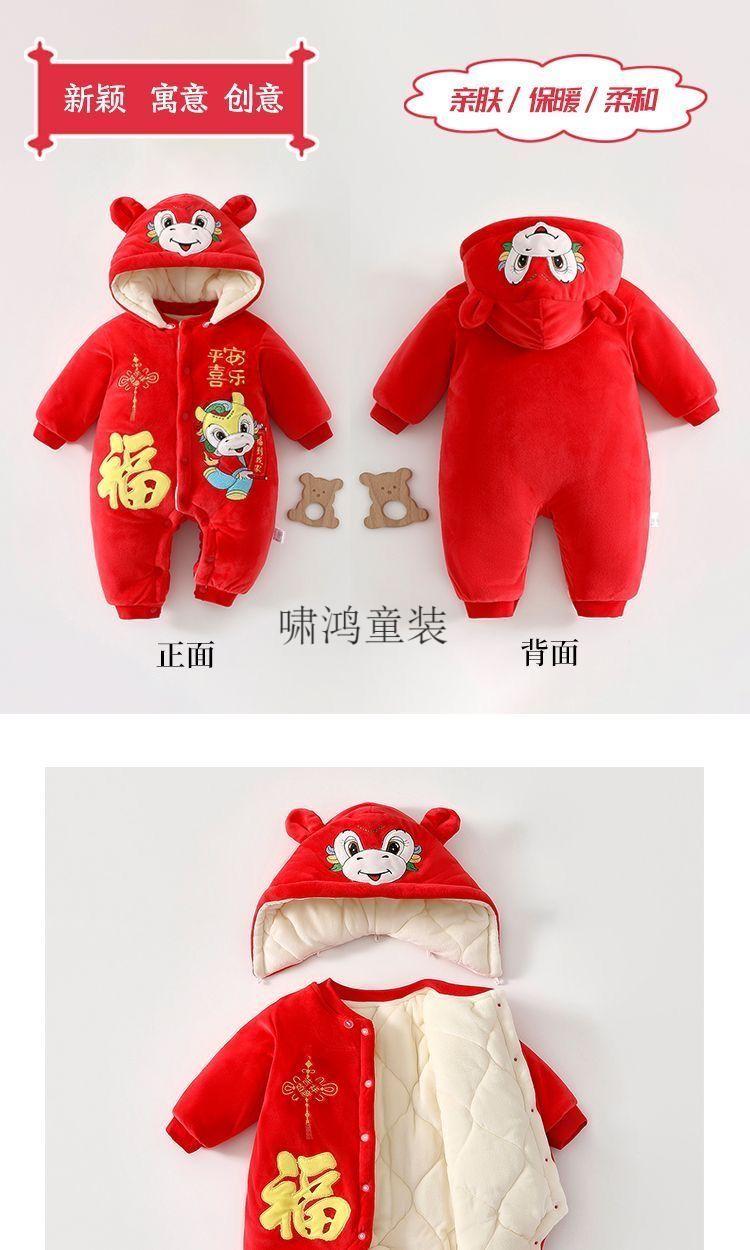 Wooden house baby New Year's greetings New Year's jumpsuit autumn and winter velvet thickened khaki baby quilted warm winter hooded cotton coat 4038 Hima thick cotton khaki 100cm recommended 23-29Jin Jin equals 0.5 kg