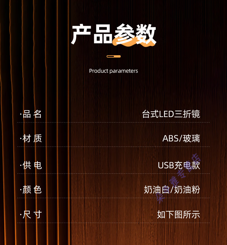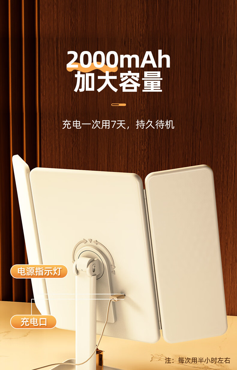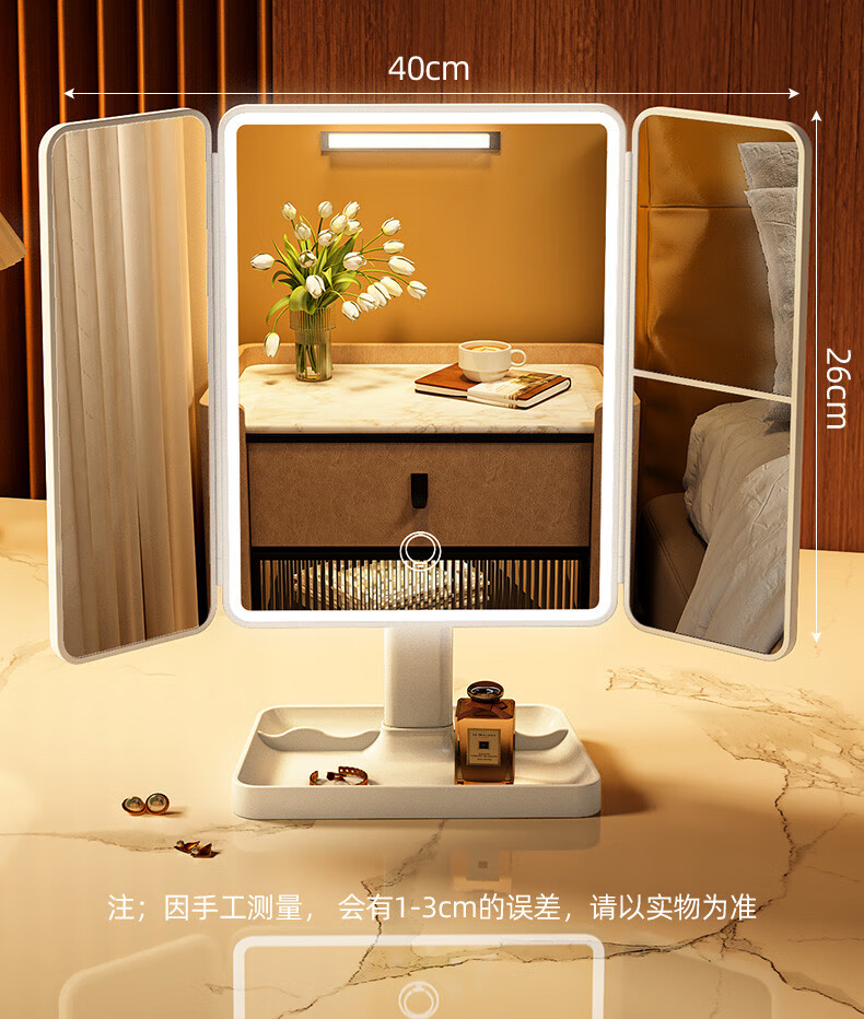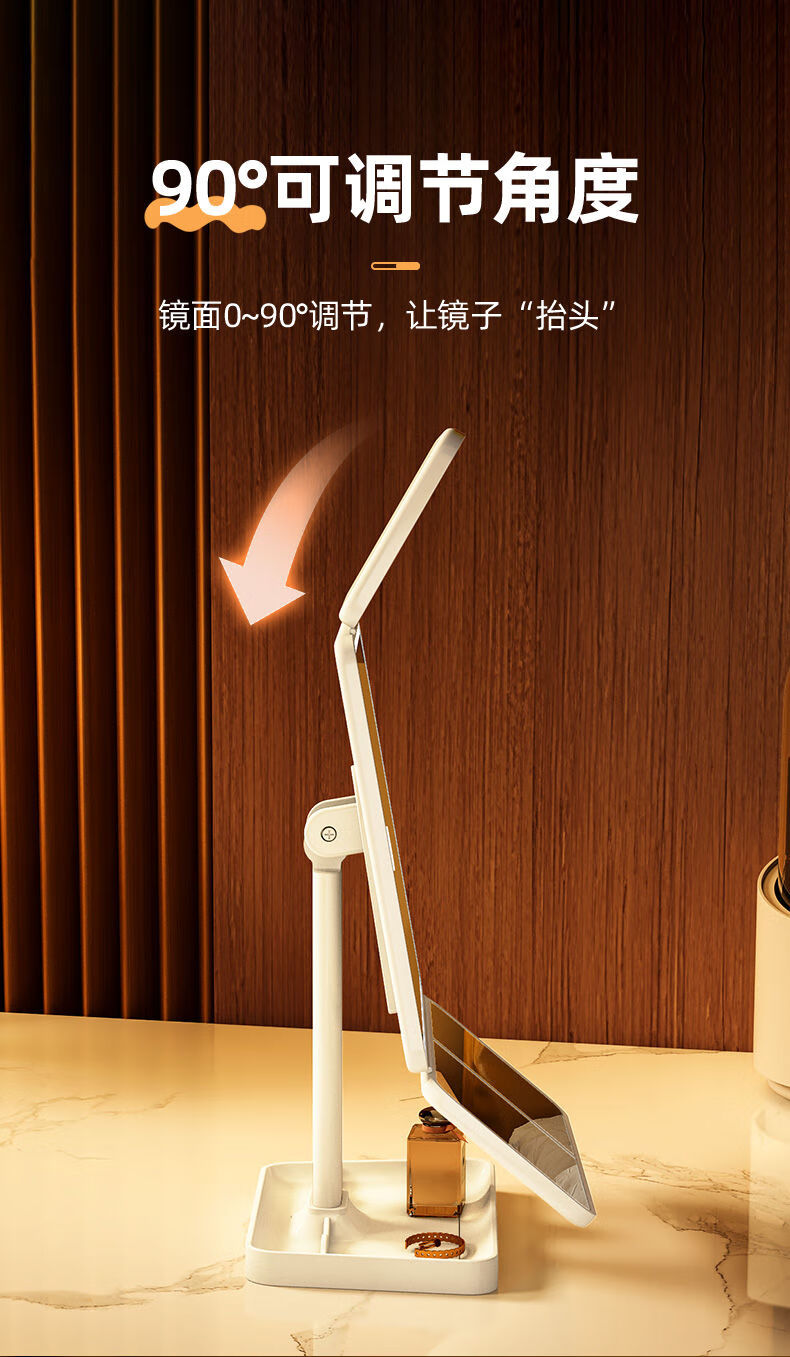 Danyang Qingtian (DYQT) 2025 new makeup mirror LED with light desktop desktop folding home student dormitory magnifying dressing beauty mirror jade porcelain white three-tone light rechargeable model