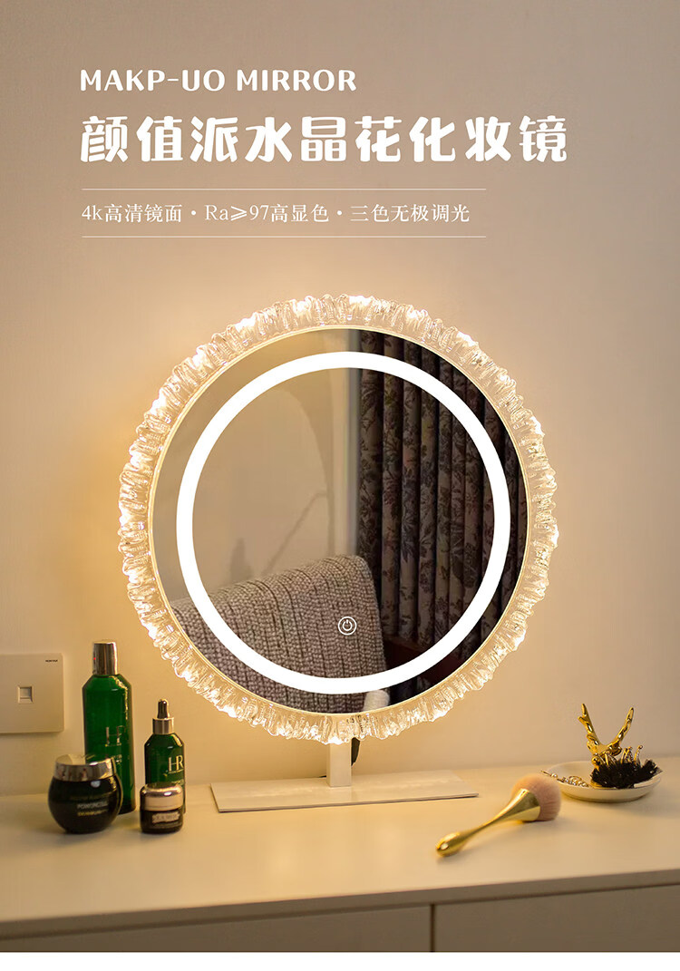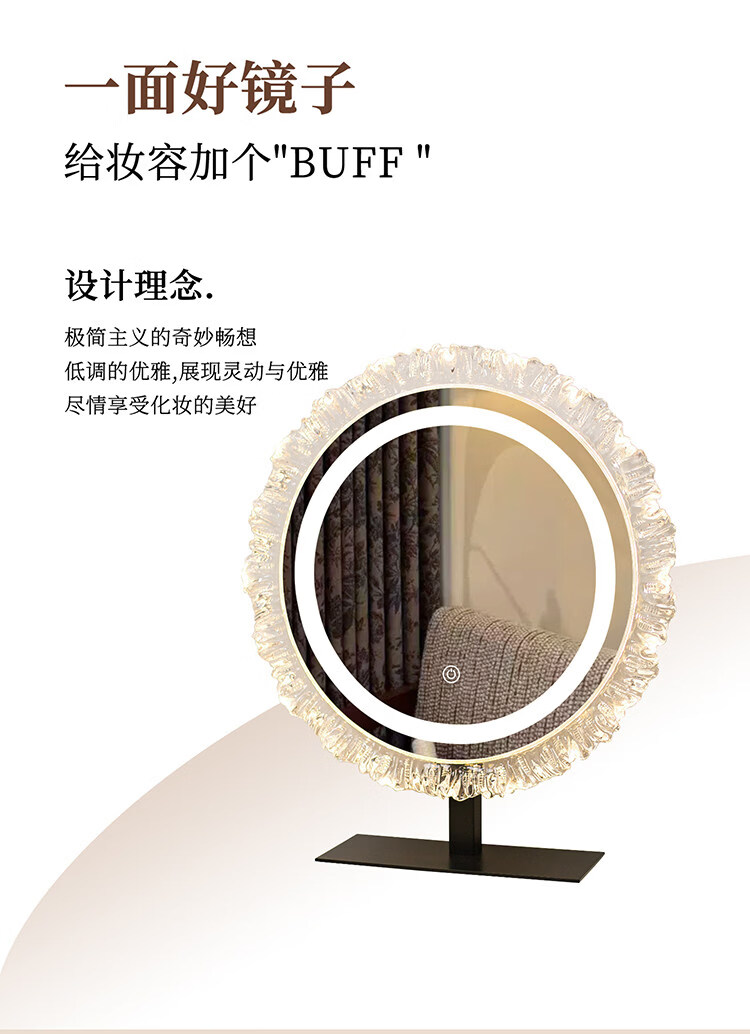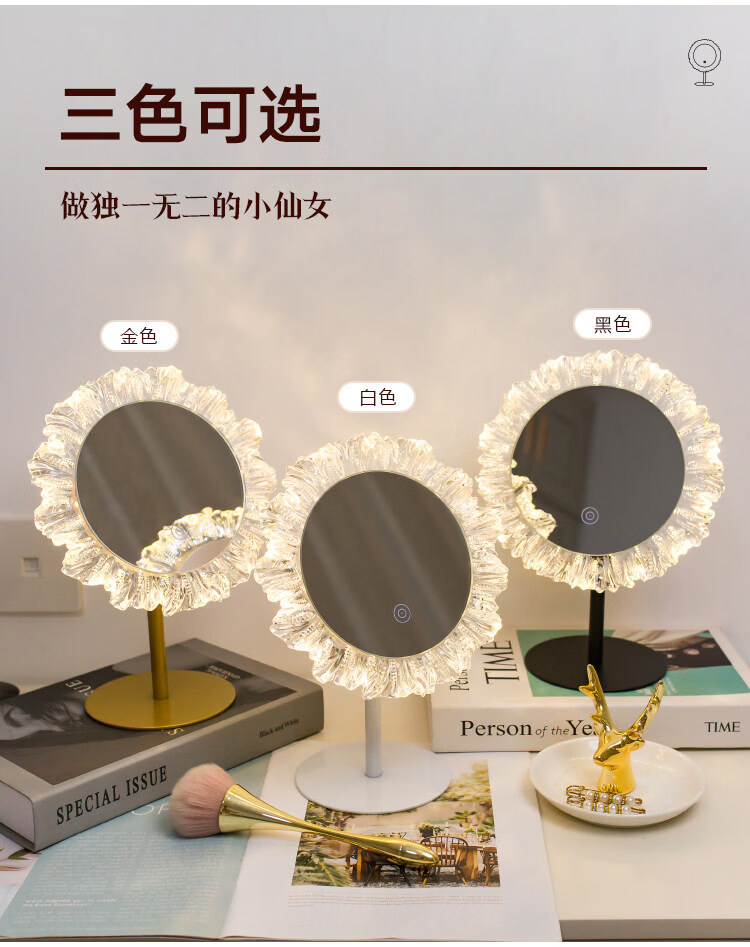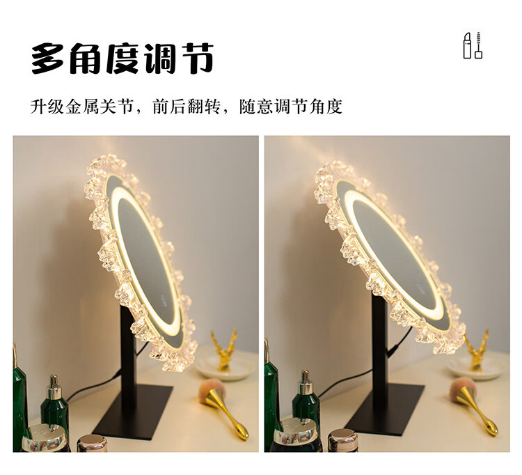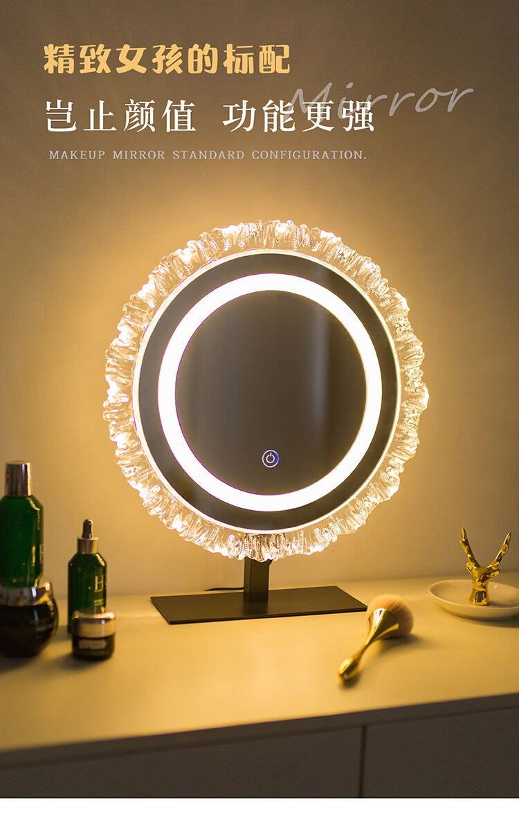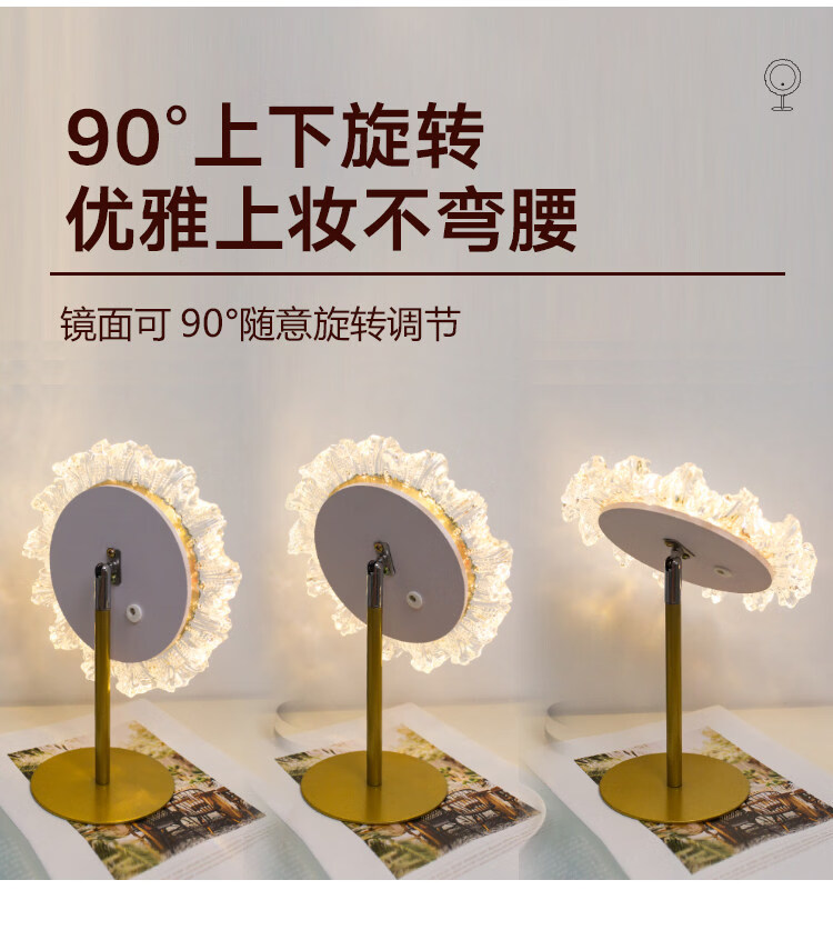 DYQT Desktop Simple Acrylic Makeup Mirror Rechargeable LED Light Makeup Table Luminous Bedroom Smart Rechargeable Makeup Mirror Medium Acrylic Sunglasses Rotatable White (Plug-in Model)