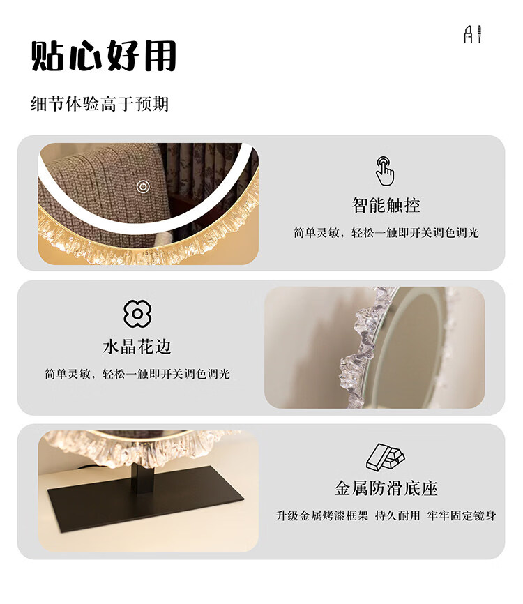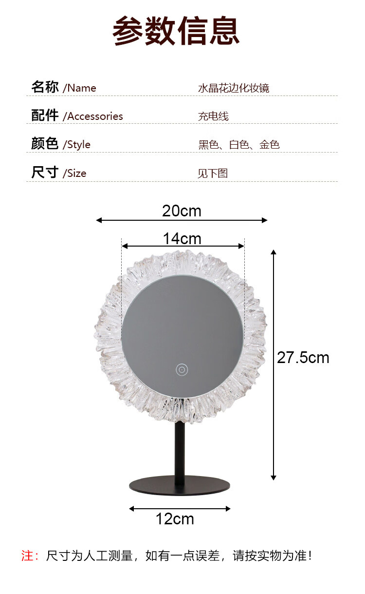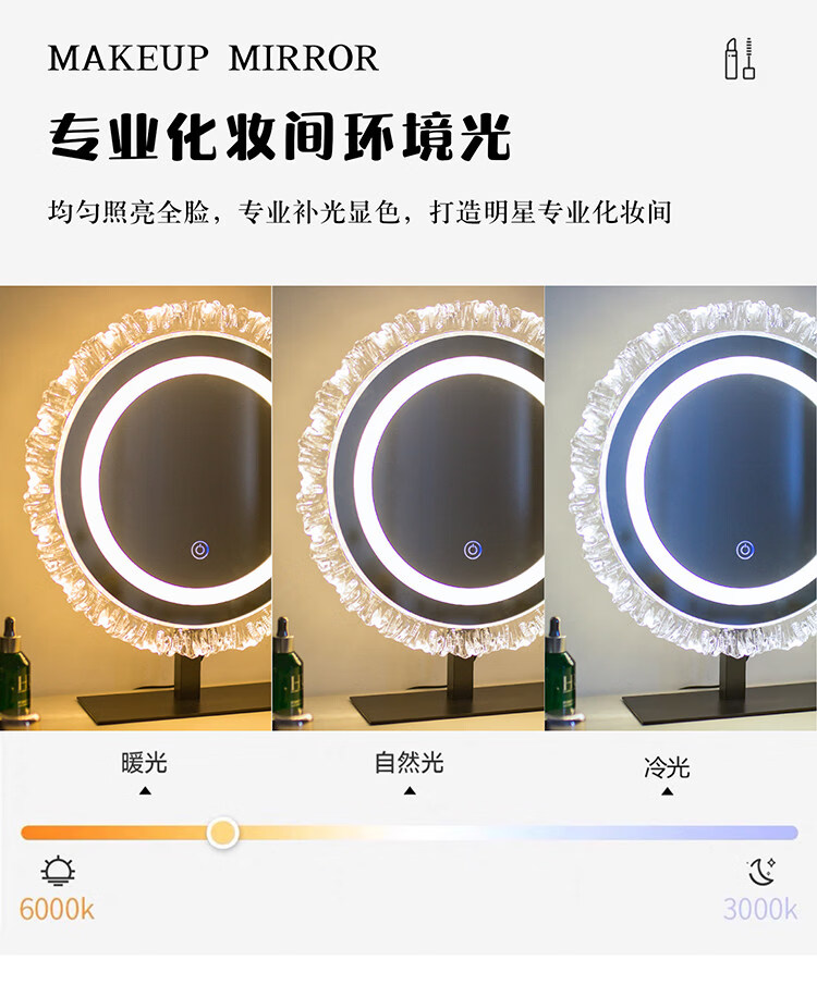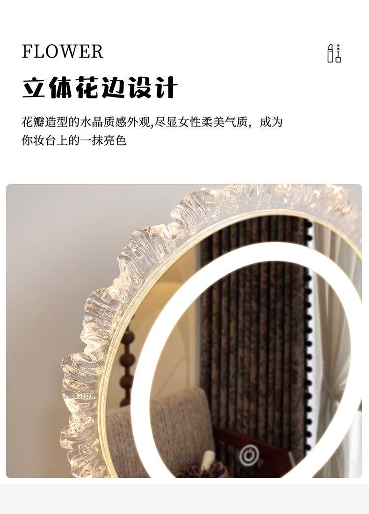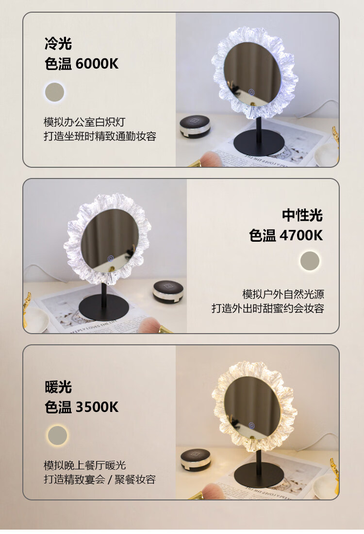 DYQT Desktop Simple Acrylic Makeup Mirror Rechargeable LED Light Makeup Table Luminous Bedroom Smart Rechargeable Makeup Mirror Medium Acrylic Sunglasses Rotatable White (Plug-in Model)