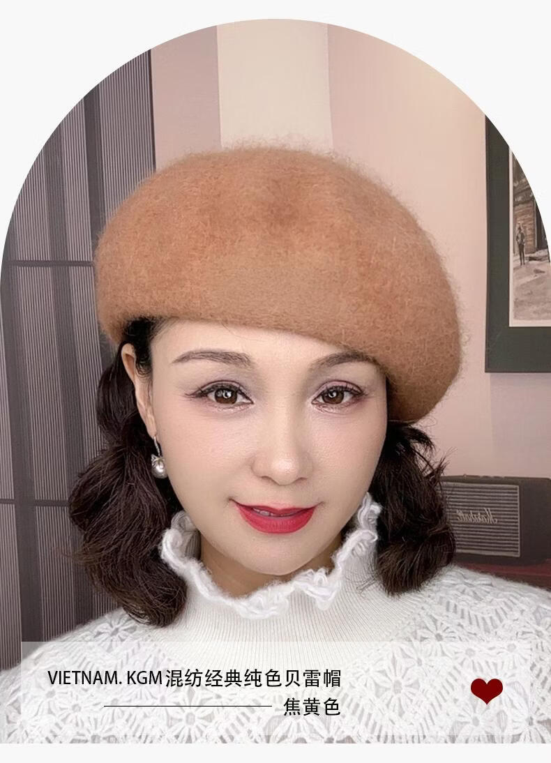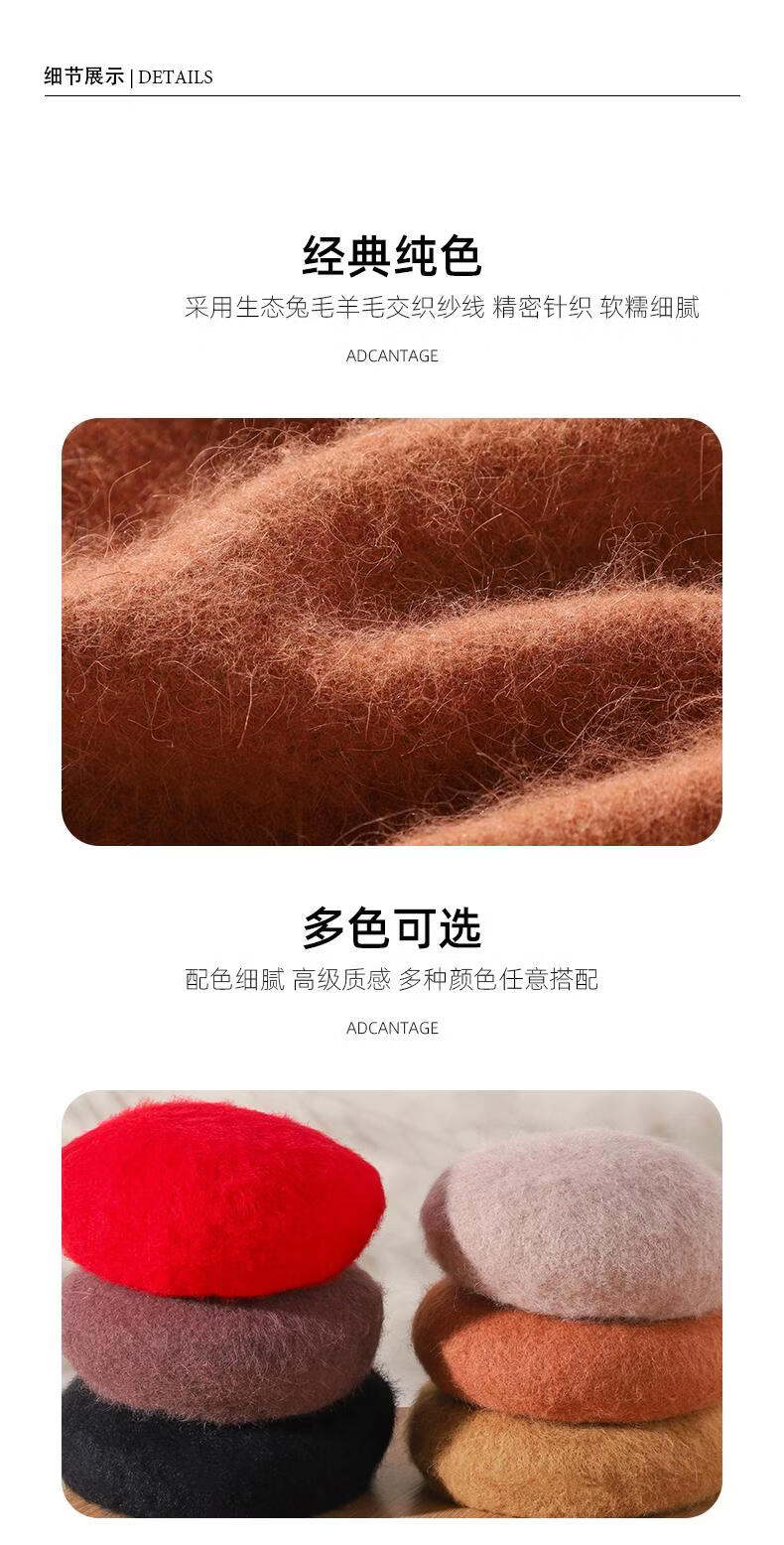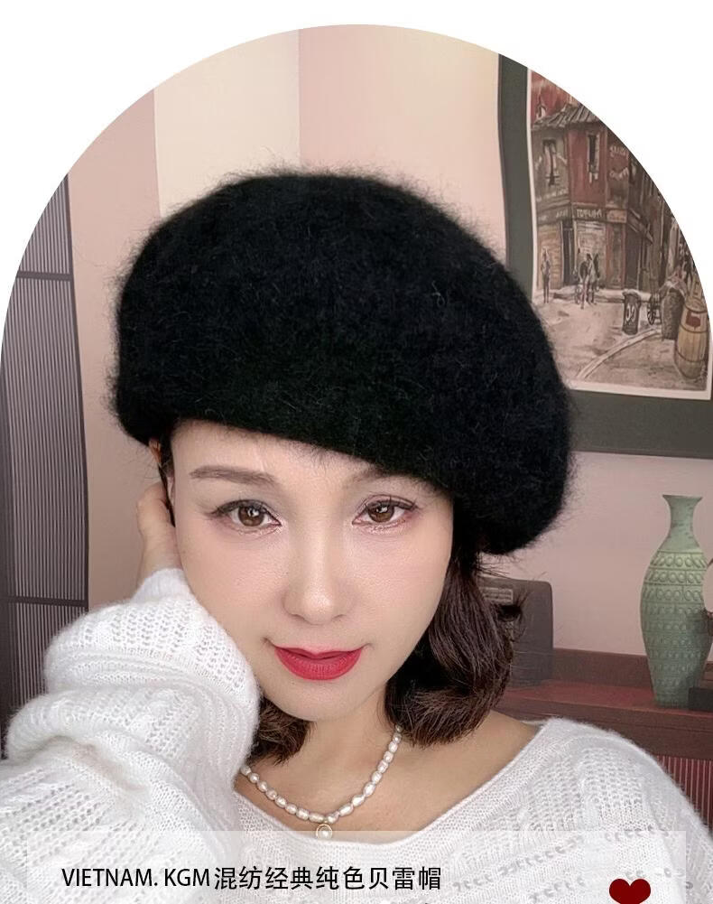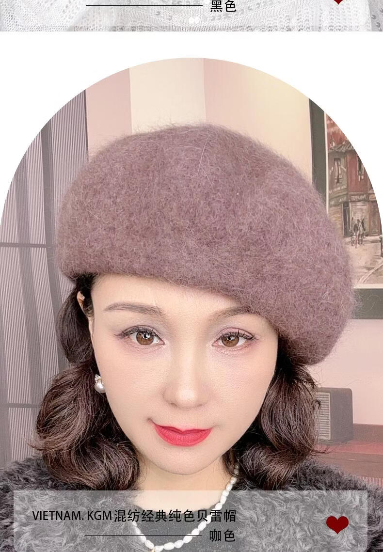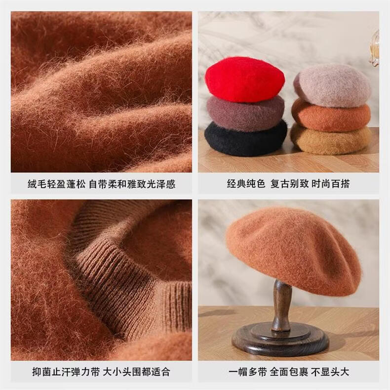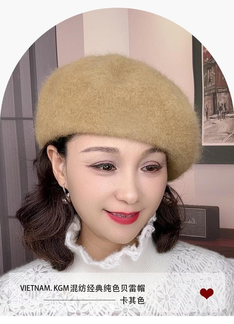 Lanshiyu rabbit hair and wool interwoven women's autumn and winter warm solid color versatile British pumpkin hat fashionable Korean style beret khaki