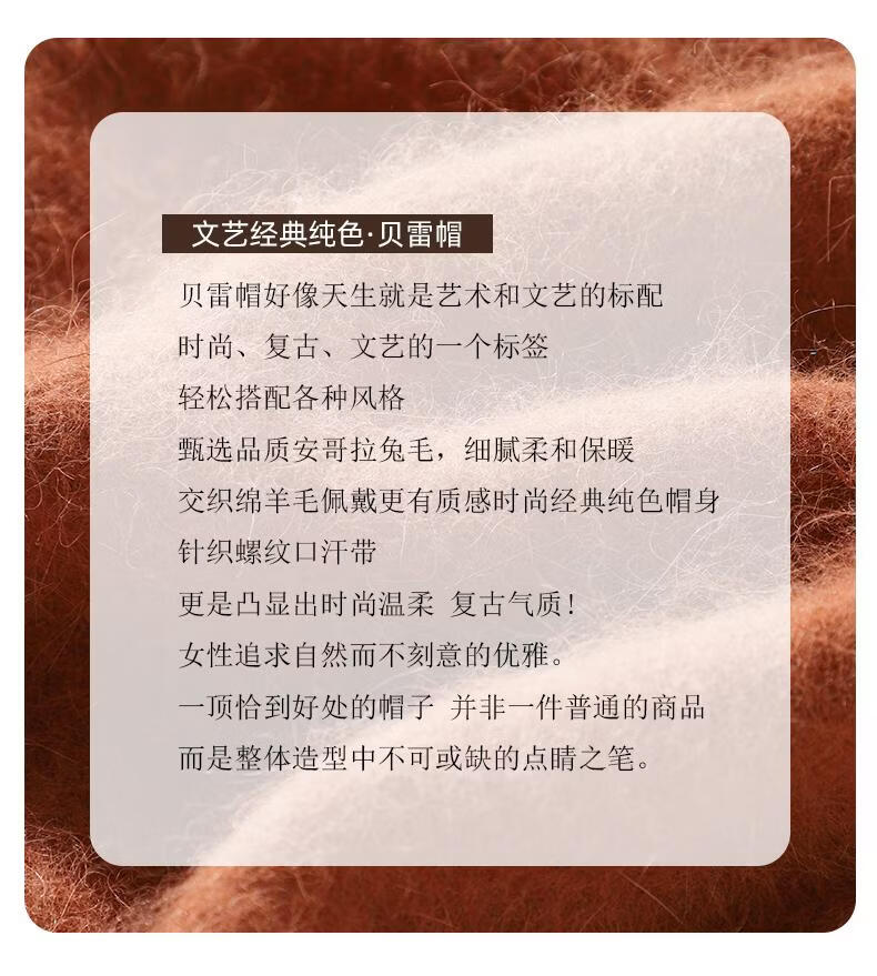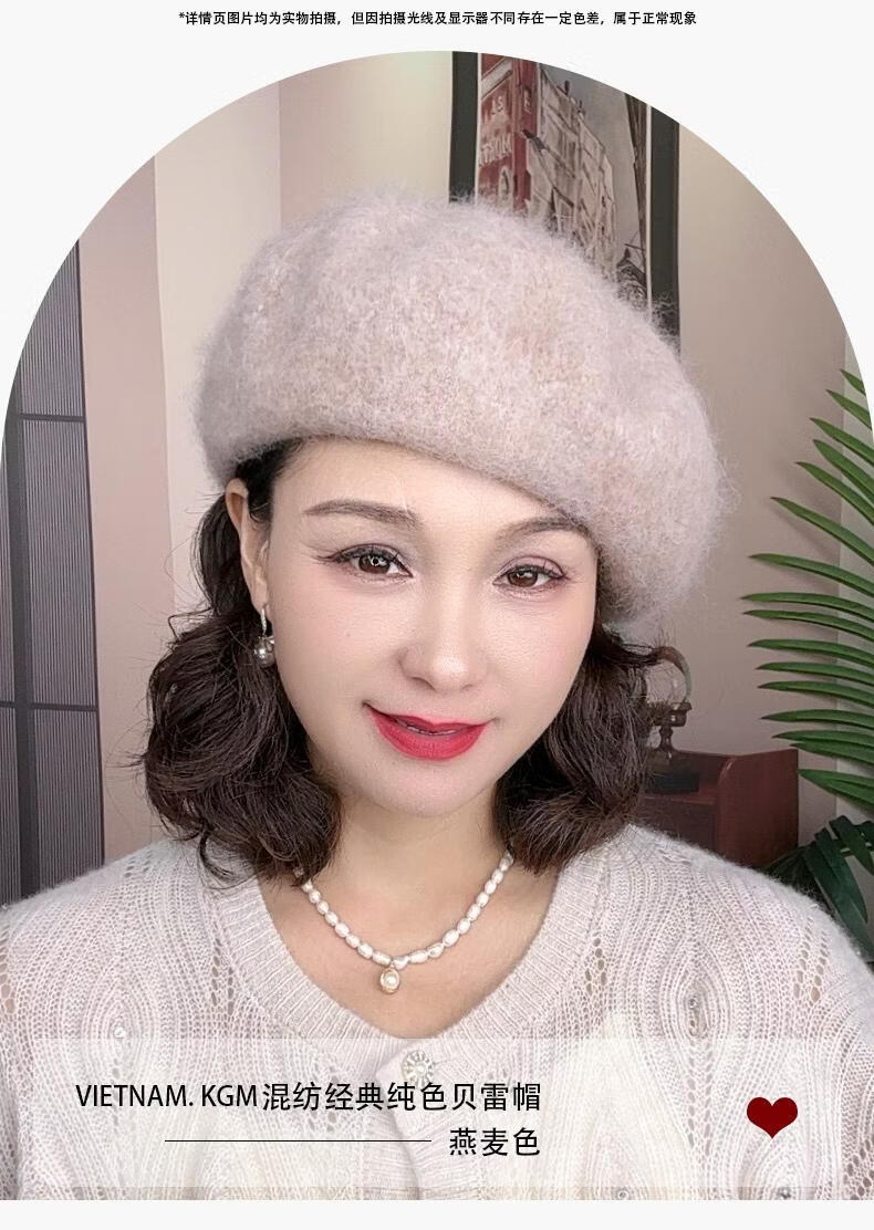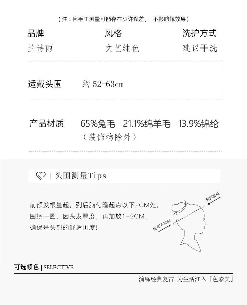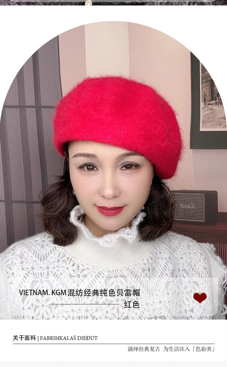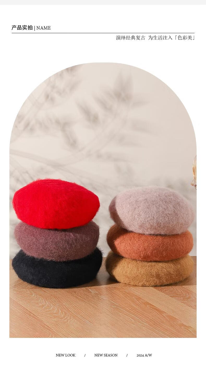 Lanshiyu rabbit hair and wool interwoven women's autumn and winter warm solid color versatile British pumpkin hat fashionable Korean style beret khaki