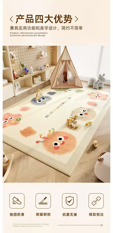Yusenyi Bedroom Children's Room Carpet Thickened Reading Area Floor Mat Full Mat Living Room Cartoon Bedside Crawling Large Area Carpet Sticky Marshmallows 200 pieces 200x300cm (three-proof suede, suitable for all seasons)