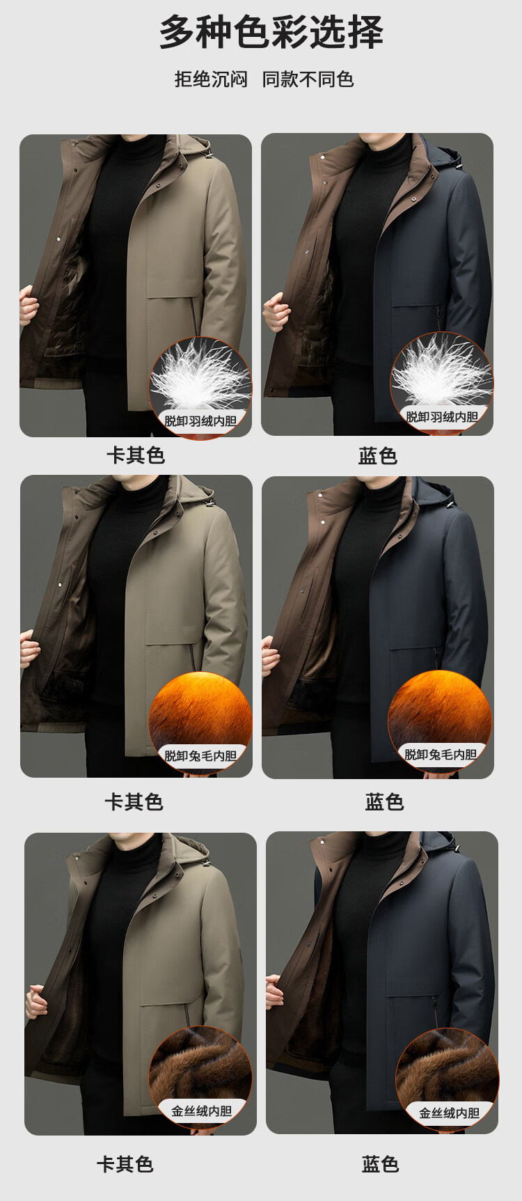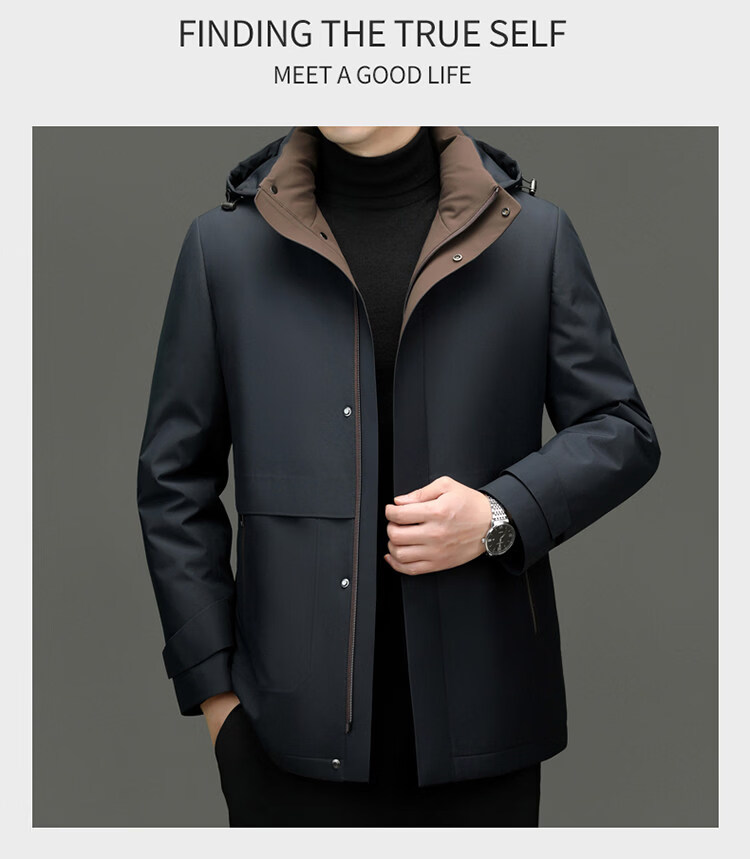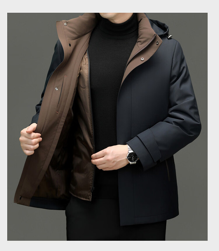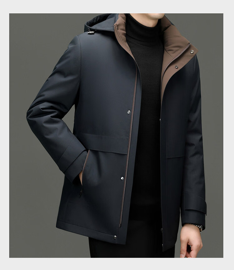 Hengyuanxiang Removable Liner Down Jacket Men's Jacket for Middle-aged and Elderly Dads 2025 Winter Thickened High-end Winter Jacket Blue Rabbit Fur Model Removable Rabbit Fur Liner XL 180 Recommended 140-155 Jin Jin equals 0.5 kg